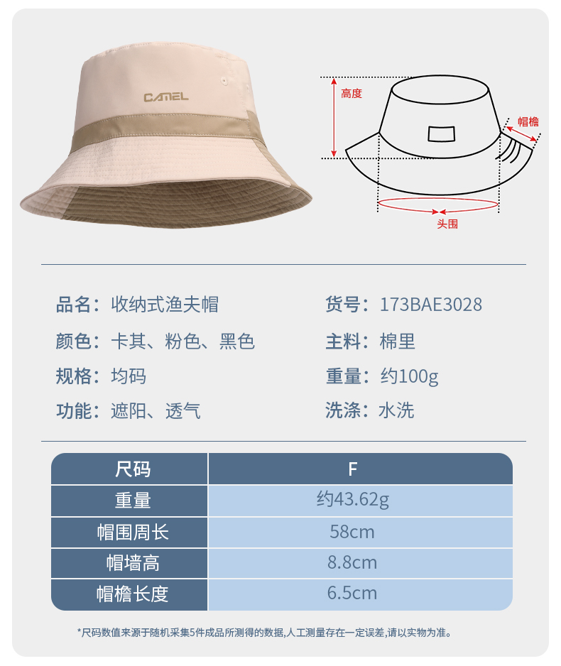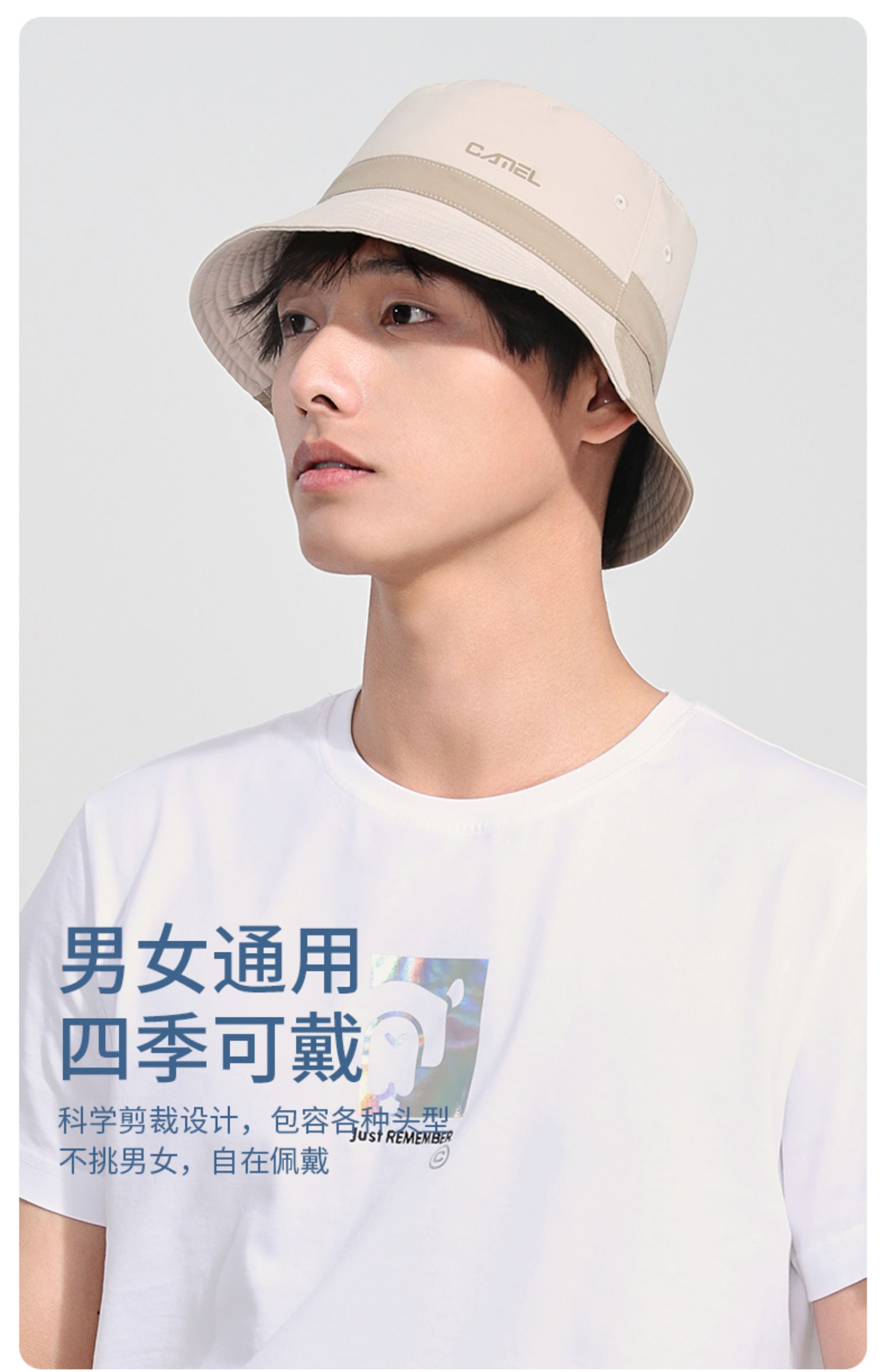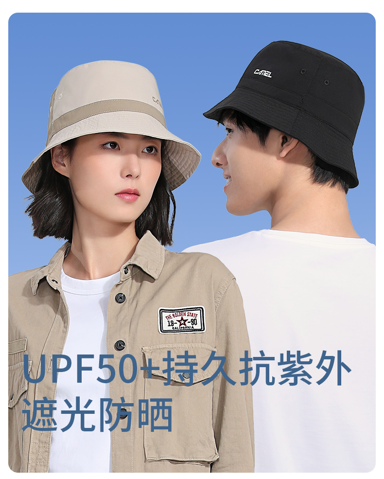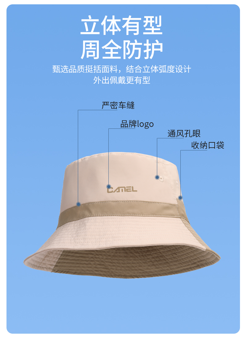 骆驼云感防晒帽女可收纳大帽檐遮阳帽子夏户外运动防紫外线渔夫帽 173BAE3028