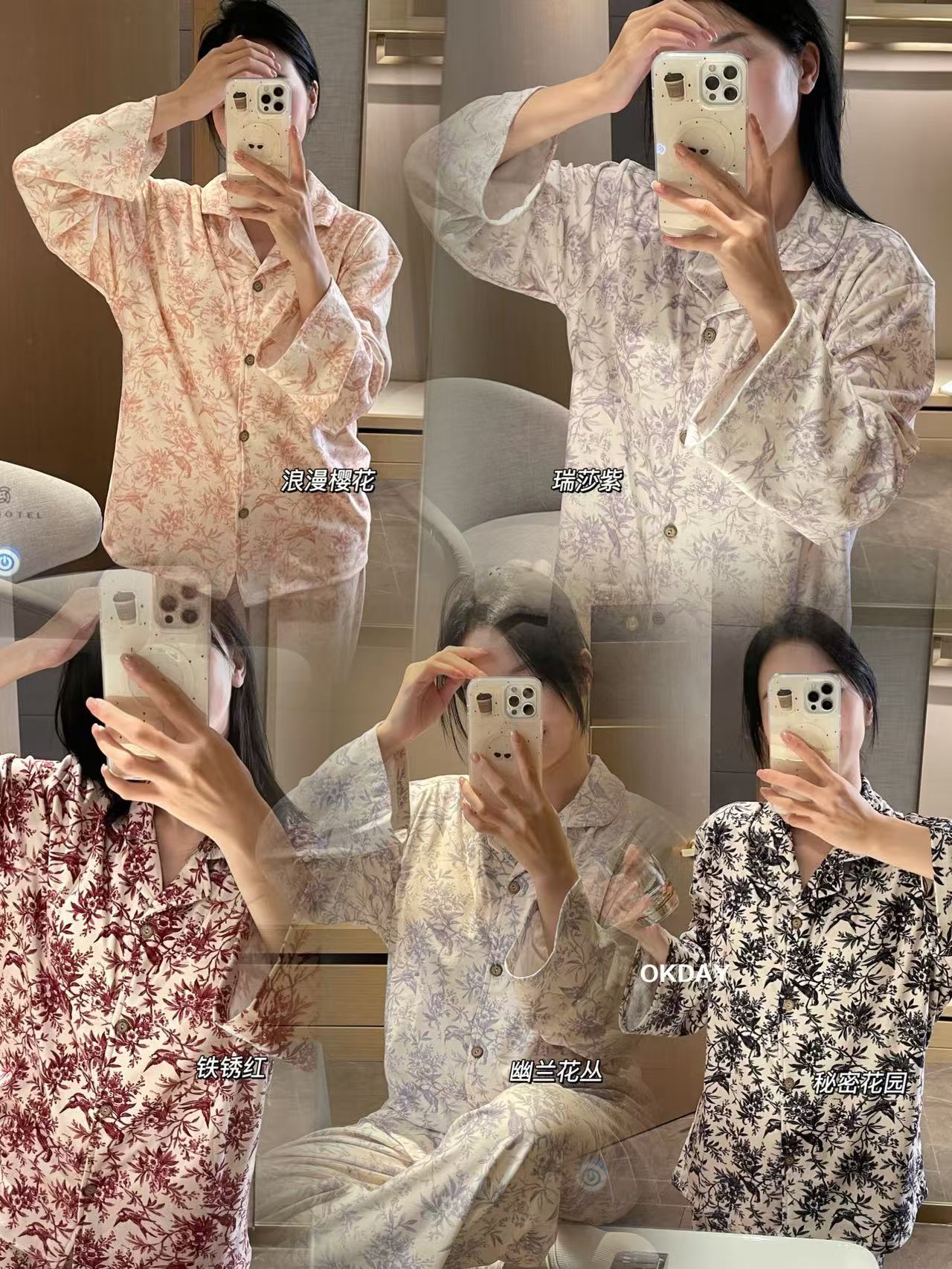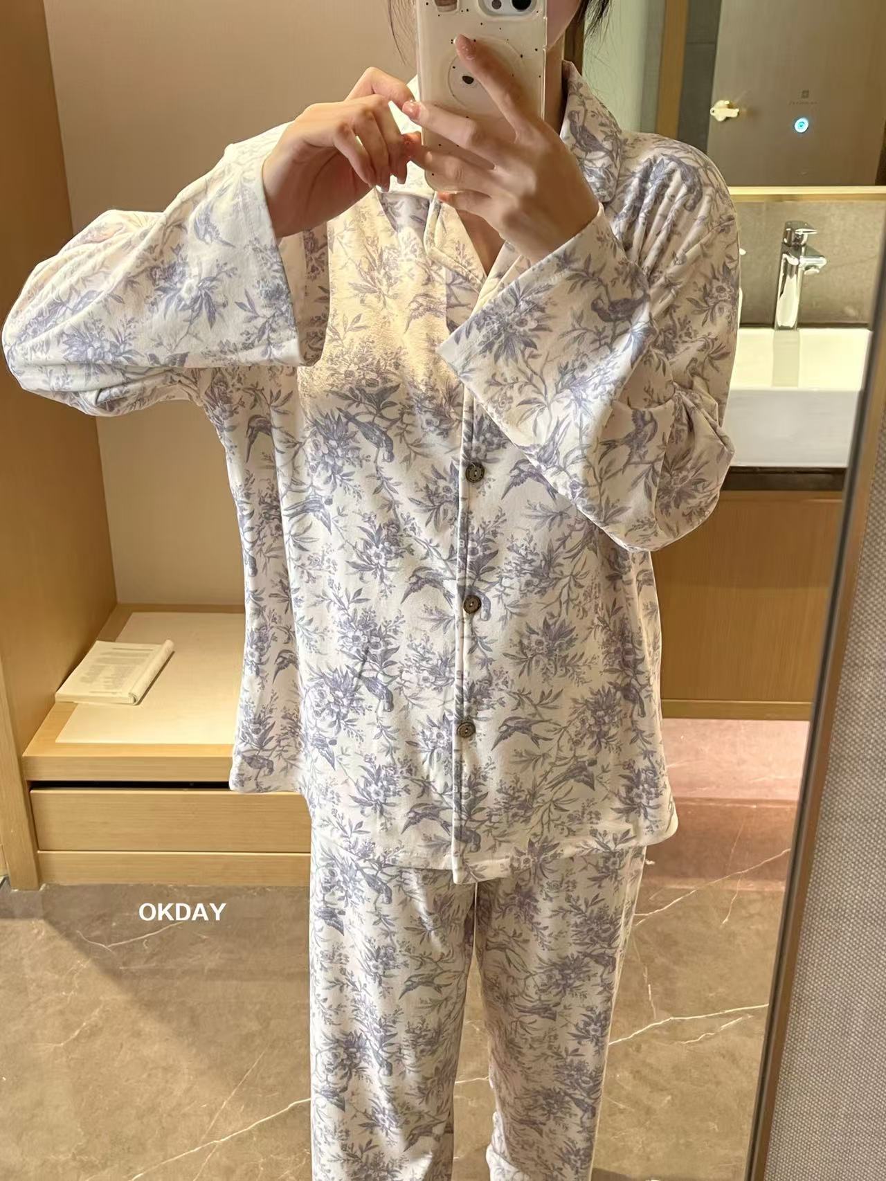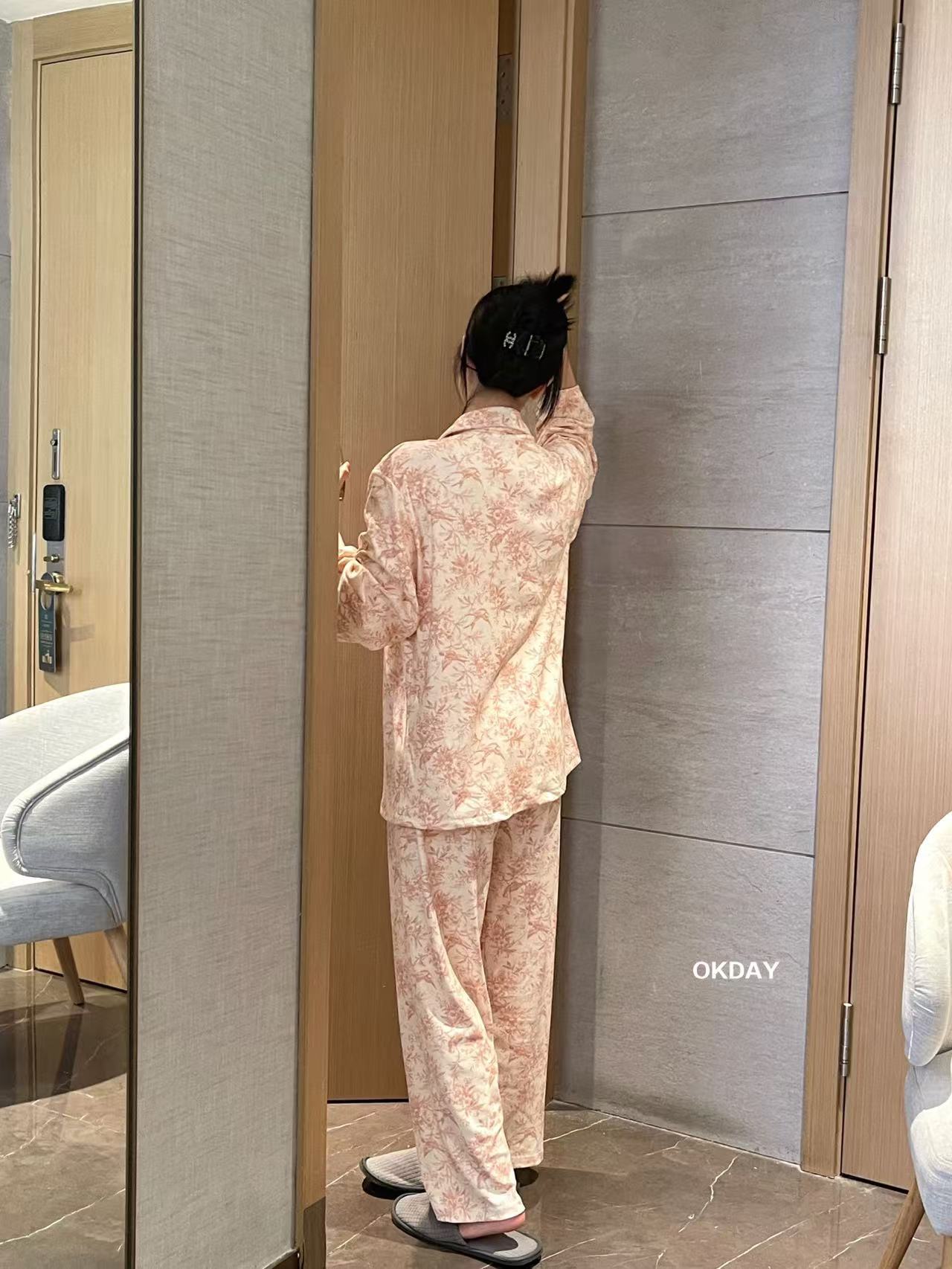 【OKDAY 碎花图腾家居服】德绒面料 软软糯糯很舒服 颜值品质都很在线 细腻柔软面料不显胖 贵气感满满