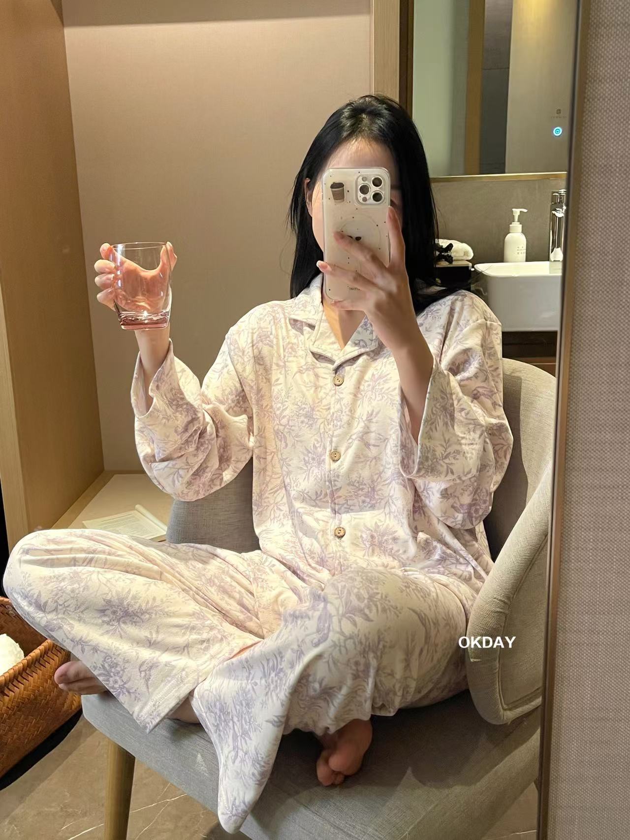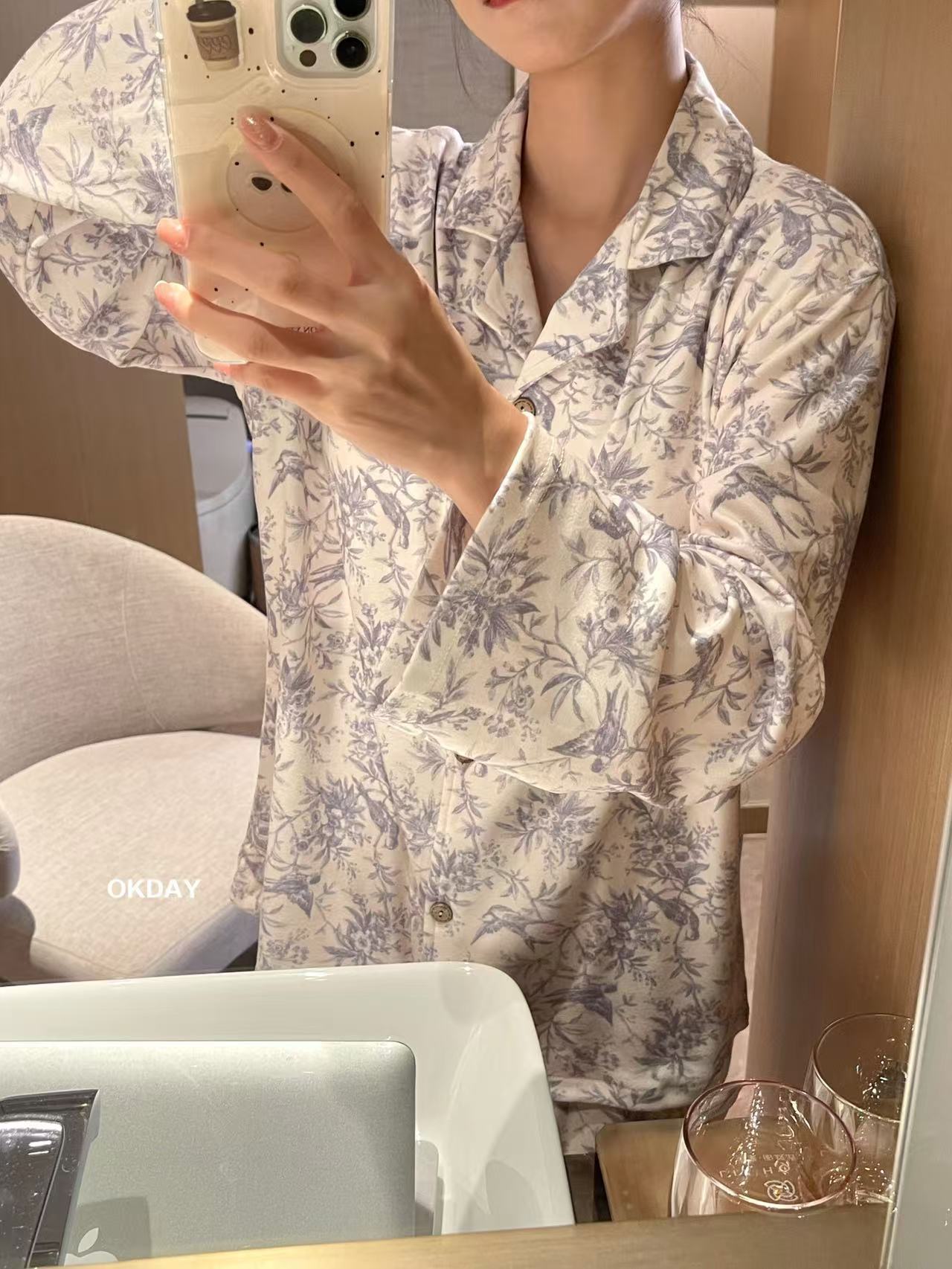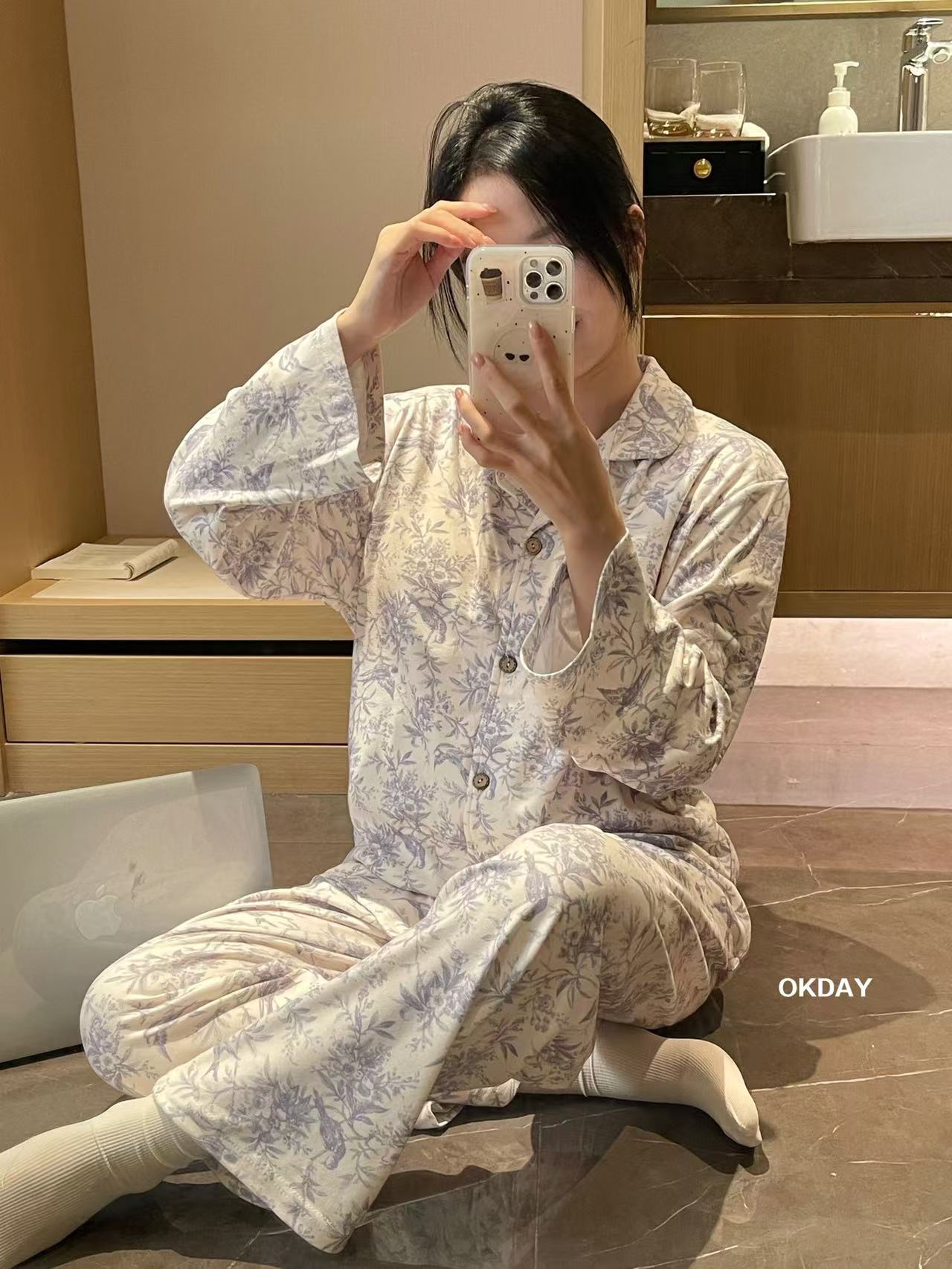 【OKDAY 碎花图腾家居服】德绒面料 软软糯糯很舒服 颜值品质都很在线 细腻柔软面料不显胖 贵气感满满