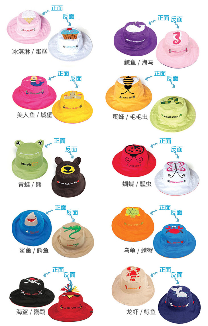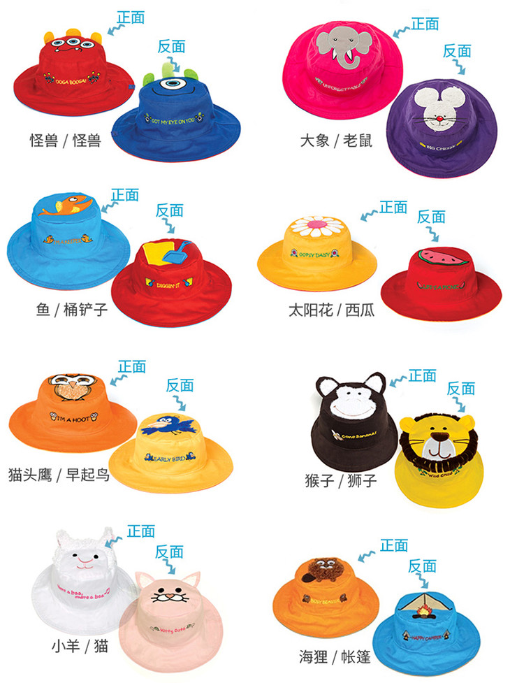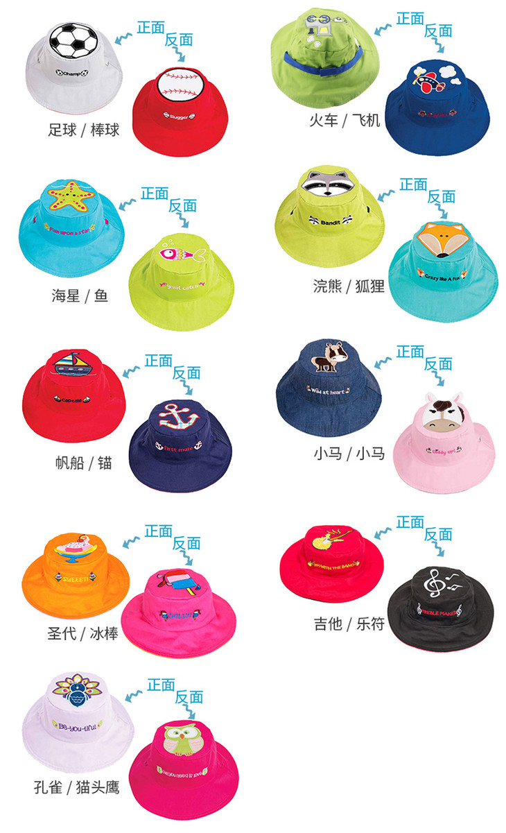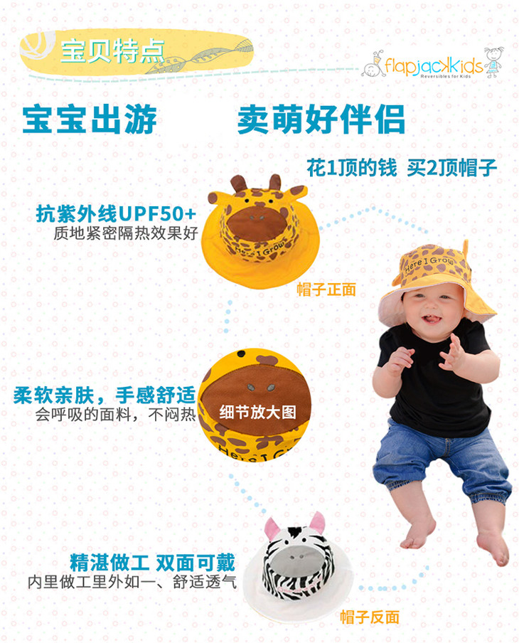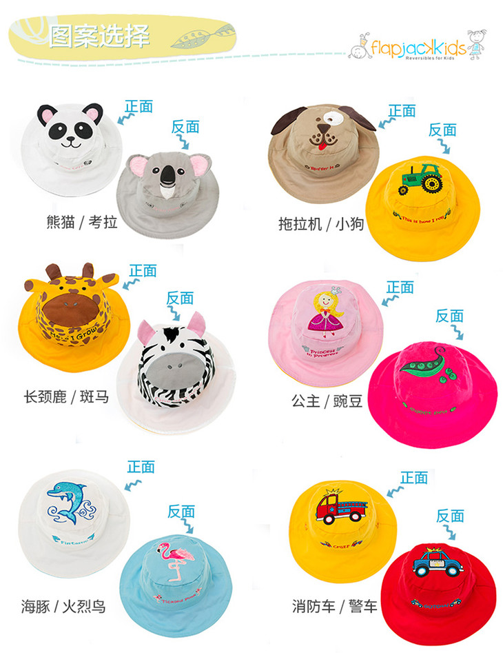 【亏本清仓】FlapJackkids 儿童卡通双面防紫外线帽防晒帽UPF50+[福利品]
