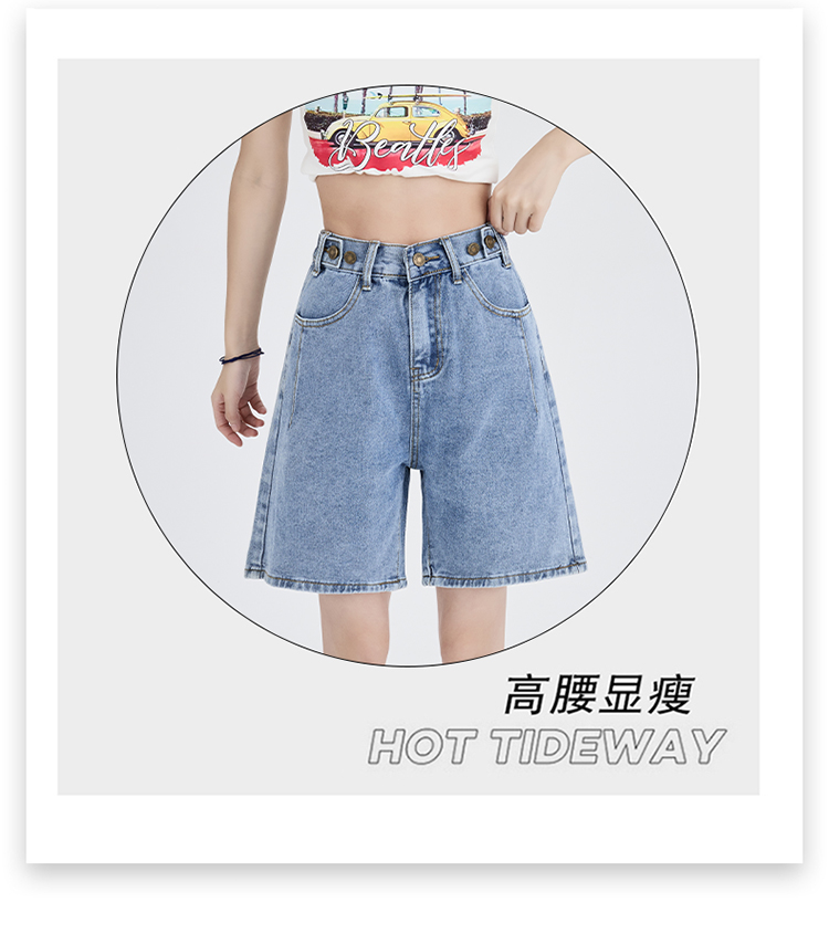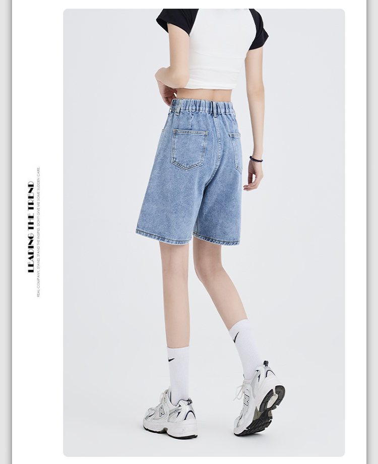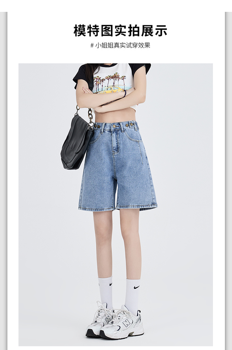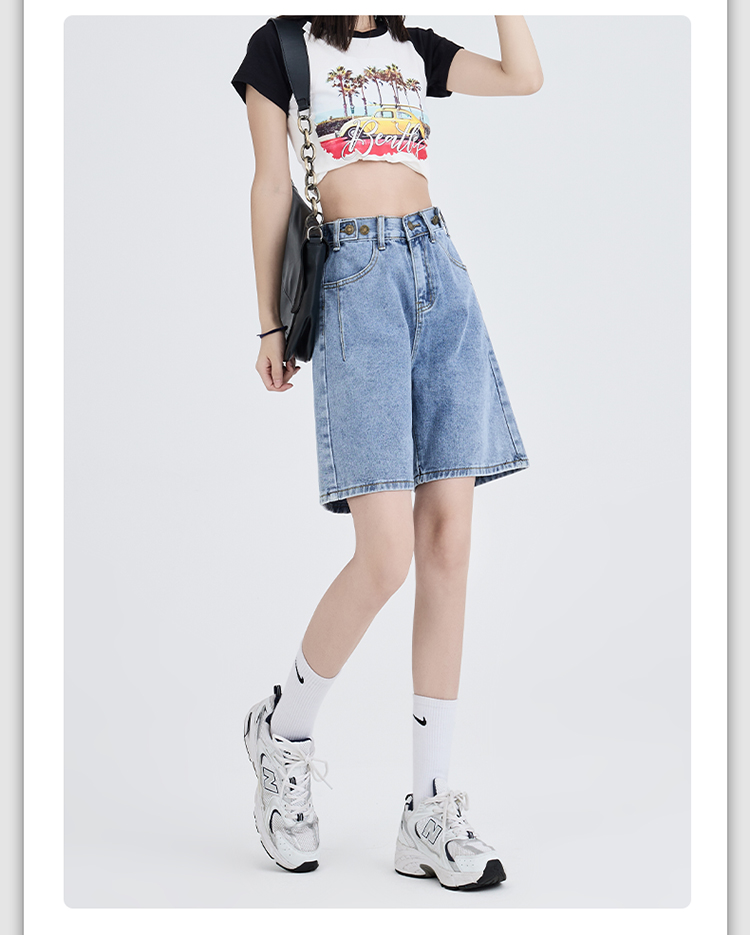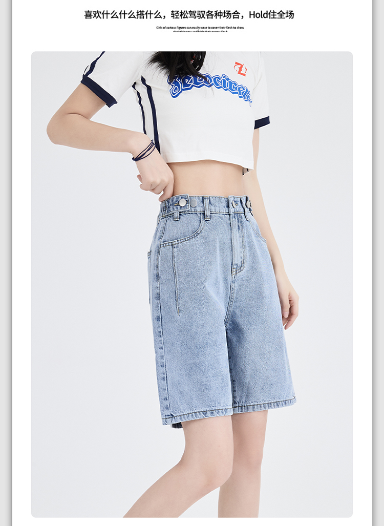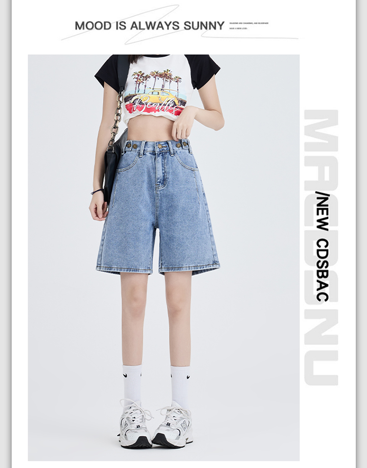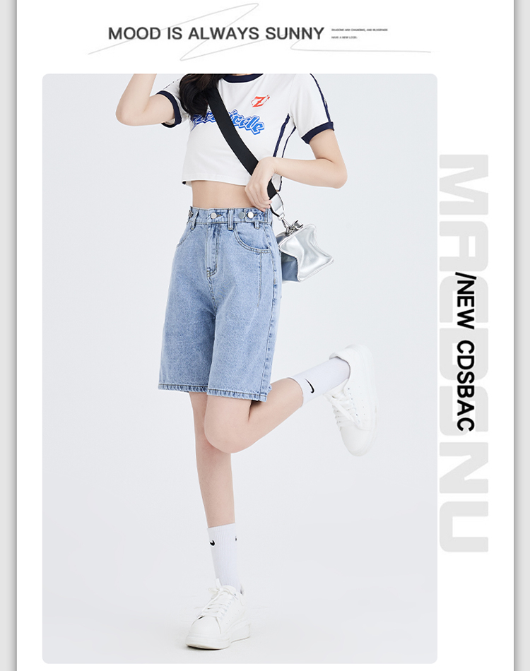 罗蒙女士夏季阔腿牛仔五分裤高腰A字直筒中裤百搭显瘦休闲舒适女裤子