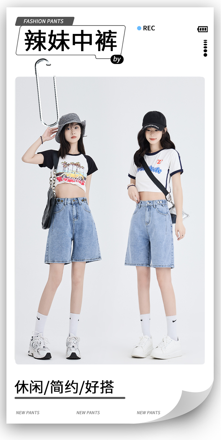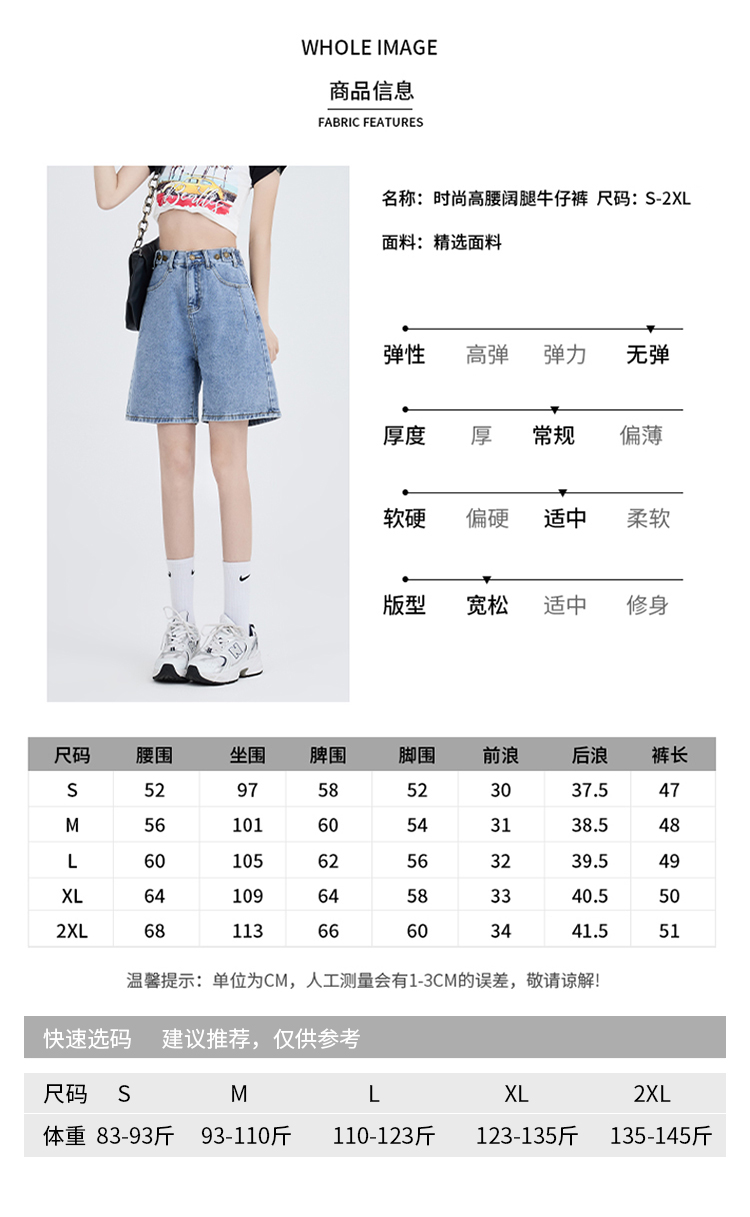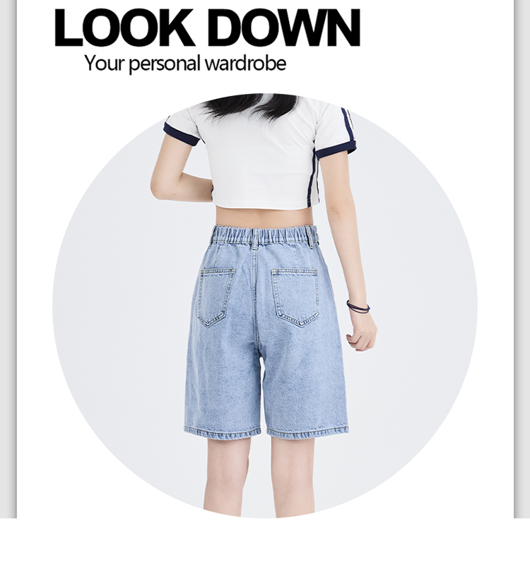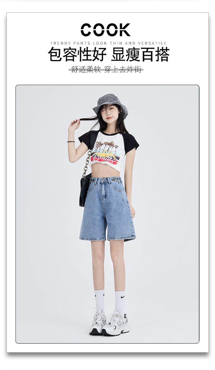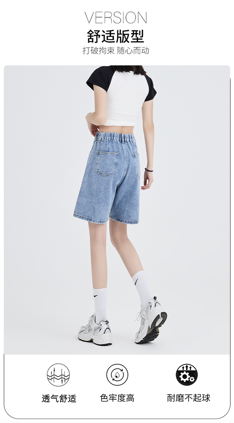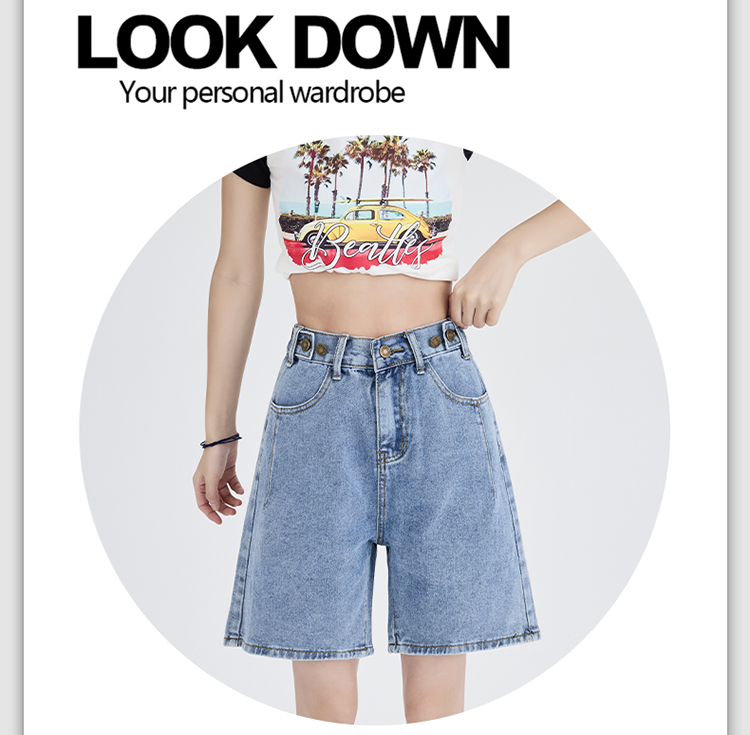罗蒙女士夏季阔腿牛仔五分裤高腰A字直筒中裤百搭显瘦休闲舒适女裤子