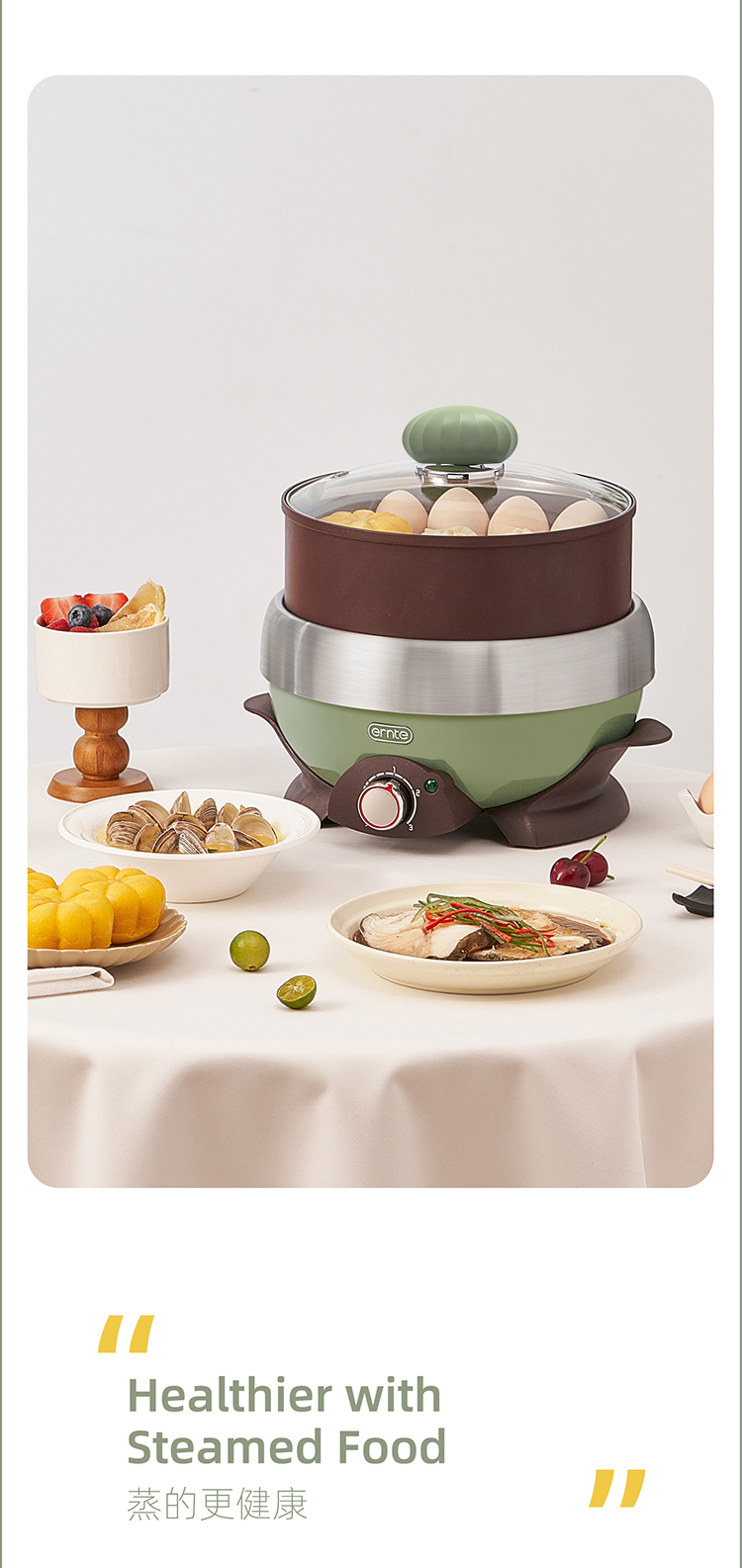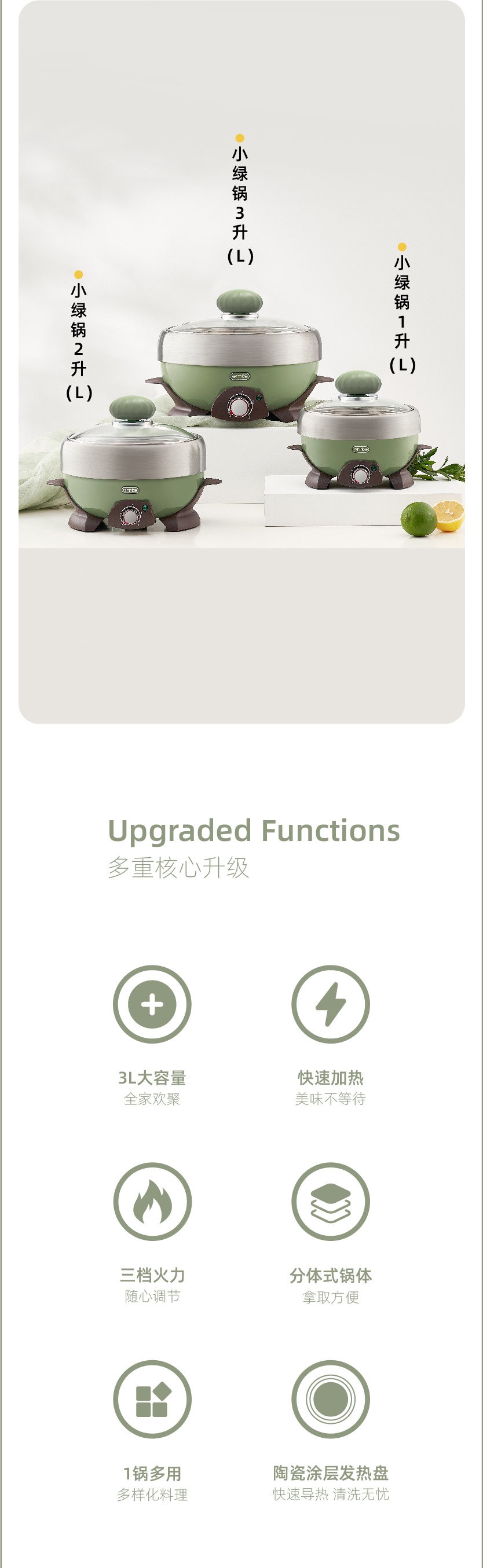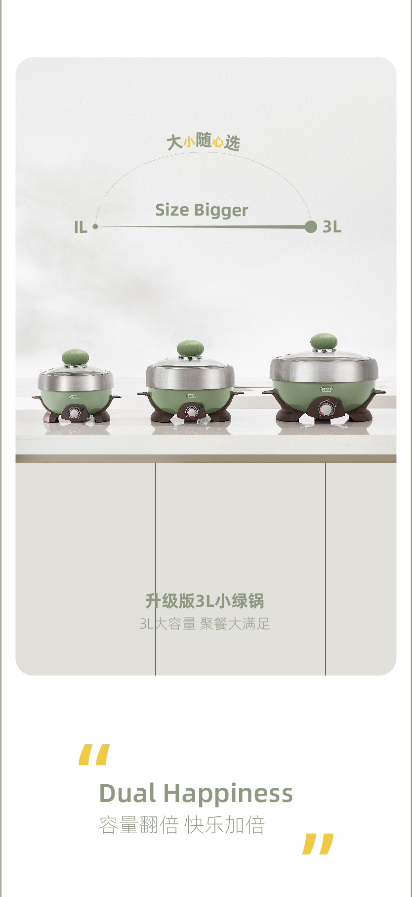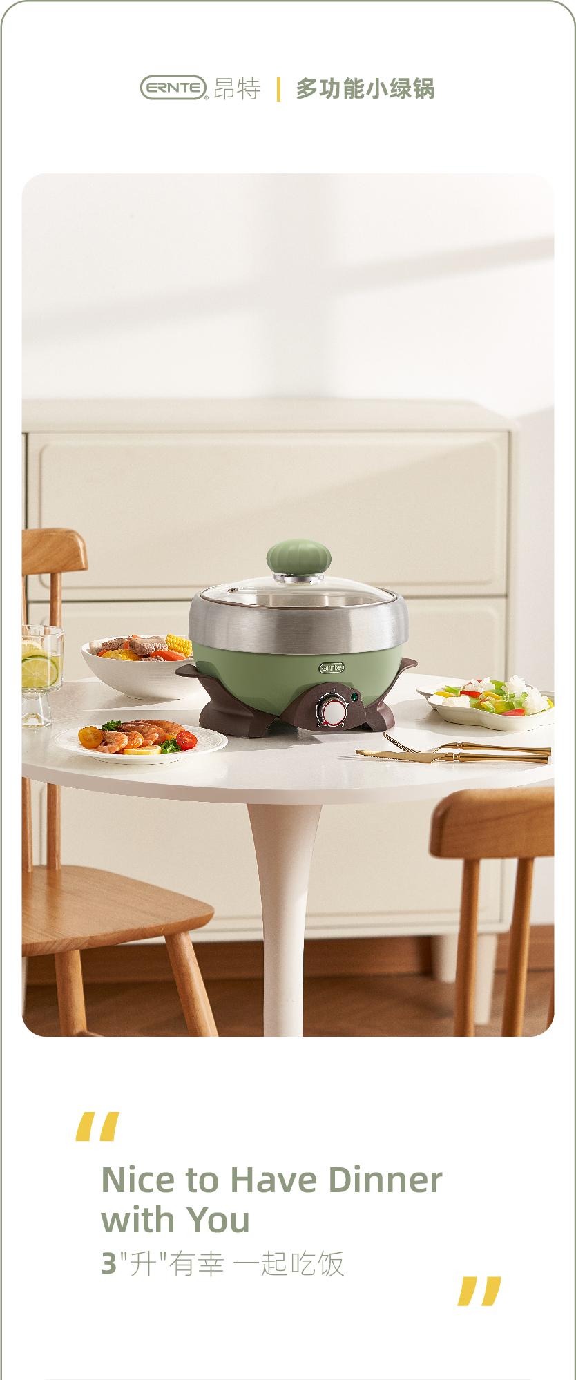 ERNTE昂特小绿锅多功能电火锅3升小型家庭电煮锅