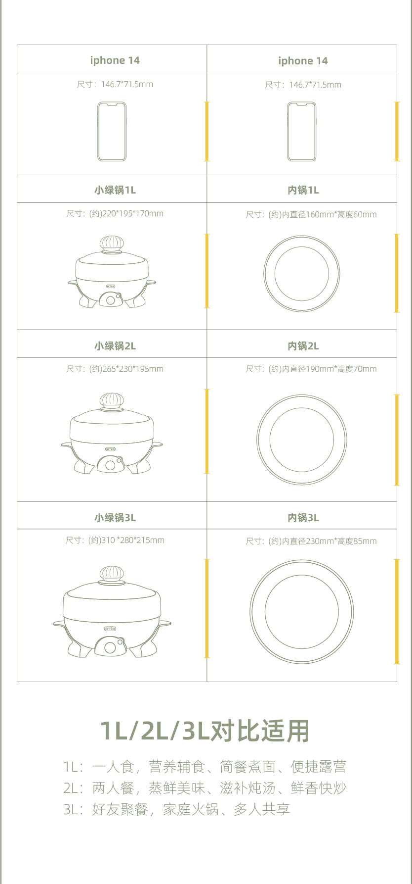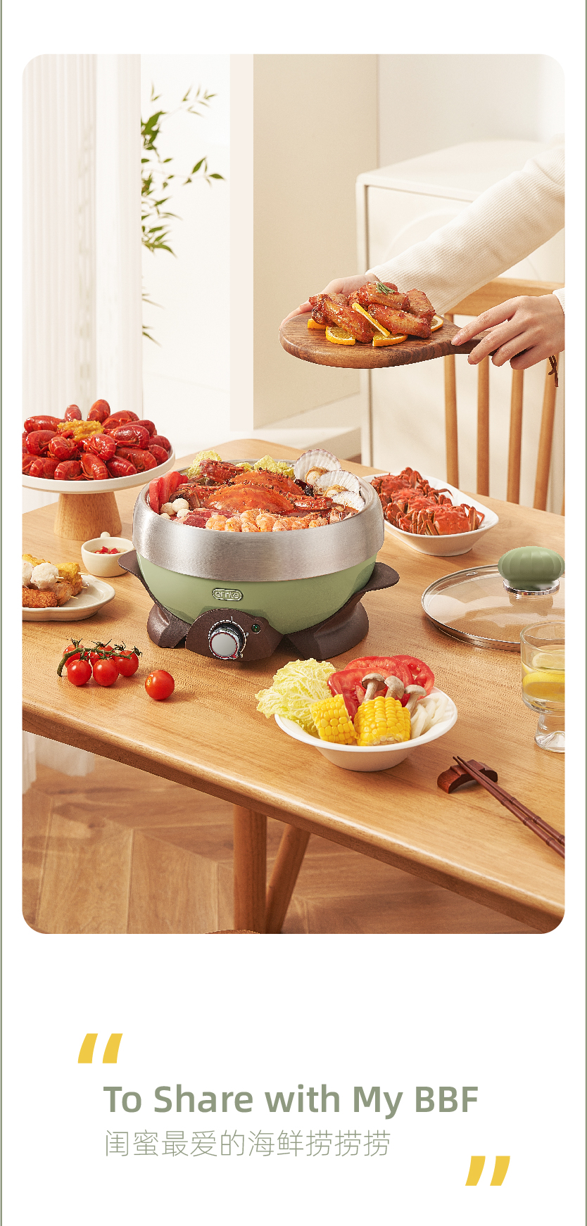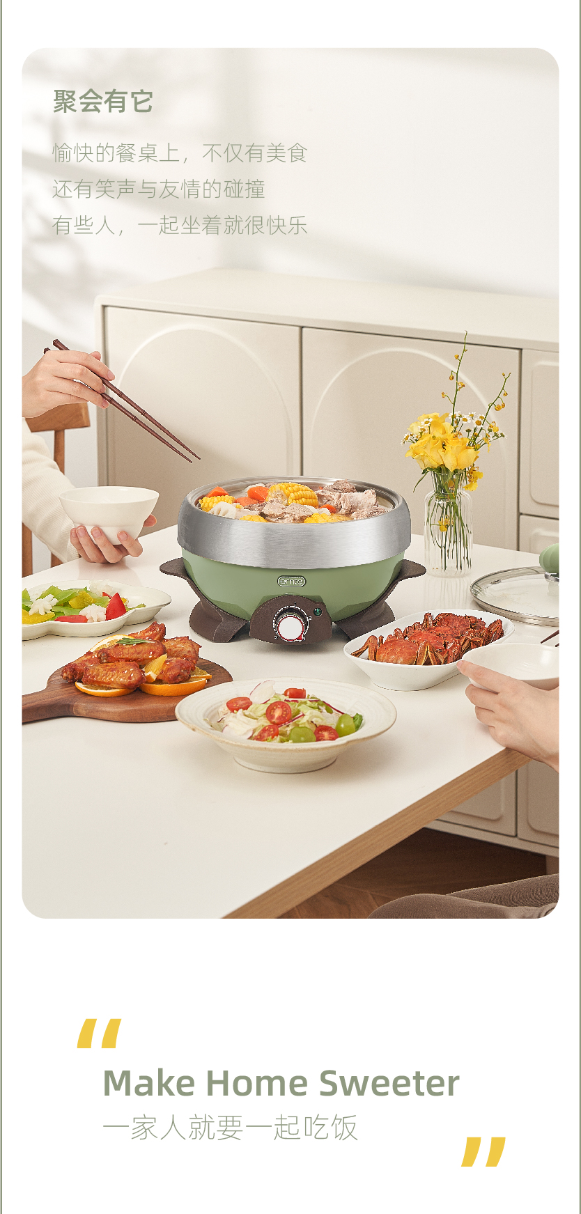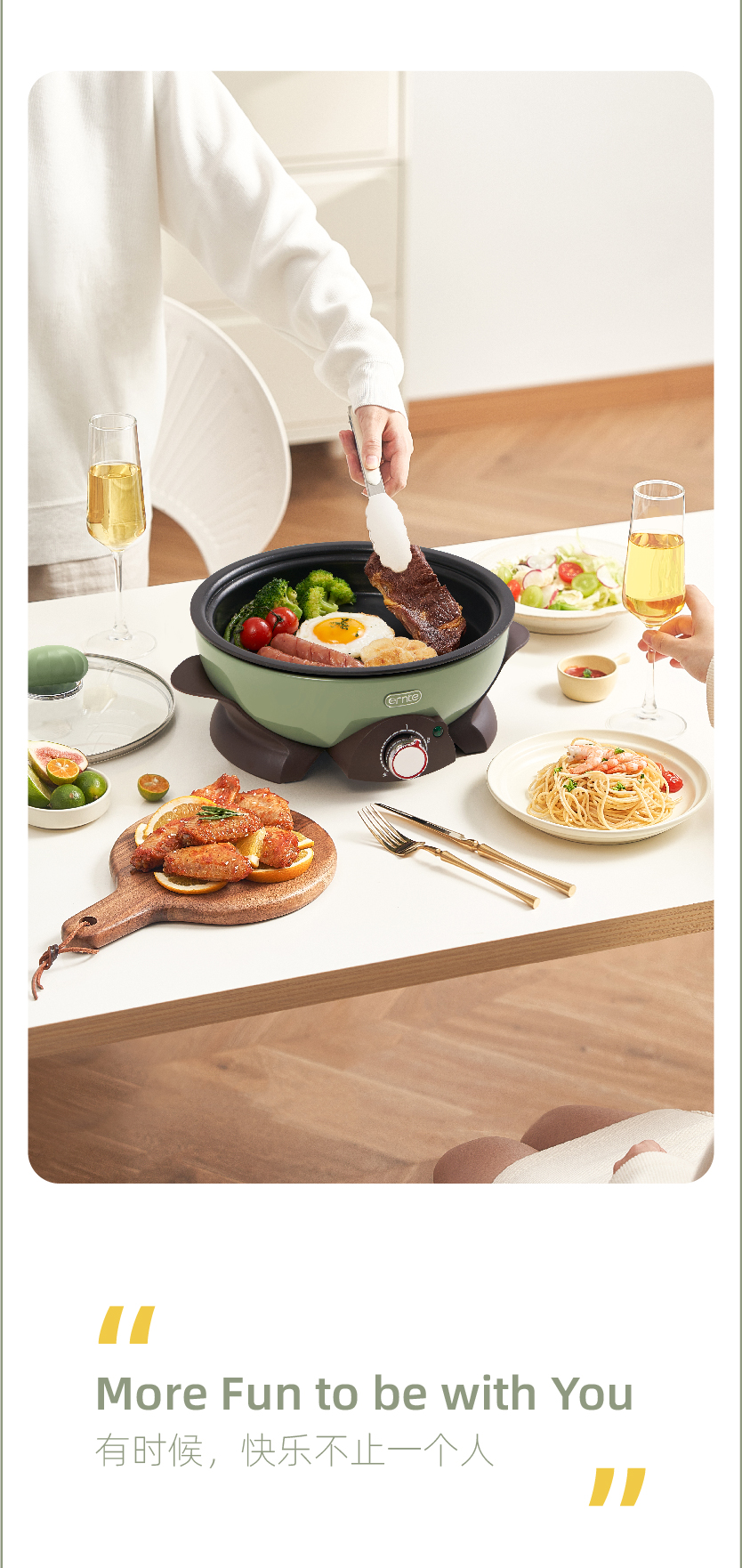 ERNTE昂特小绿锅多功能电火锅3升小型家庭电煮锅