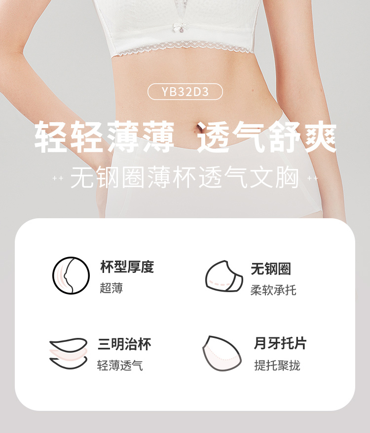 都市丽人WISECOOL内衣BC超薄3/4杯蕾丝文胸三排无钢圈YB32D3