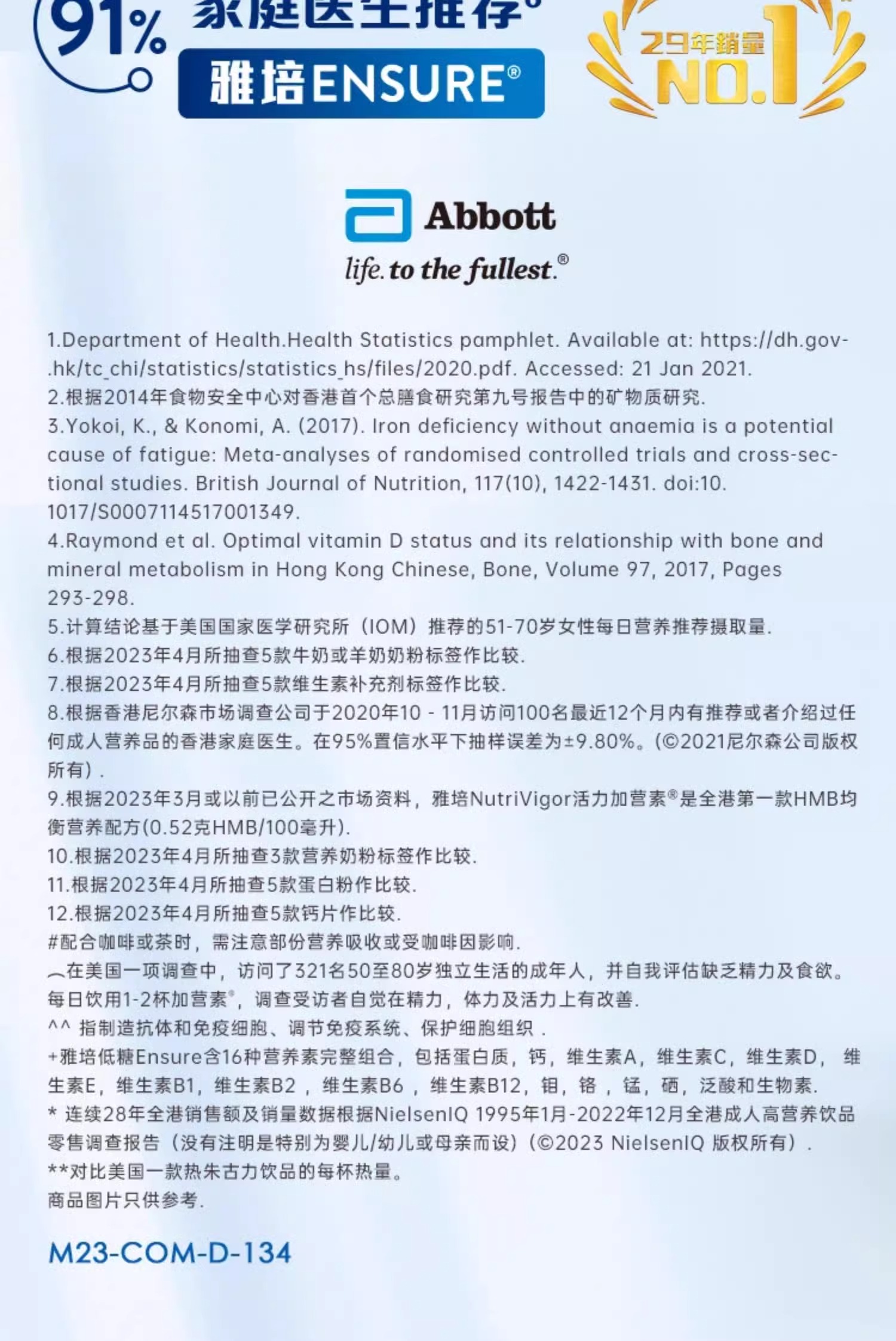 港版雅培 Abbott金装加营素成人奶粉(呍呢嗱味)900G