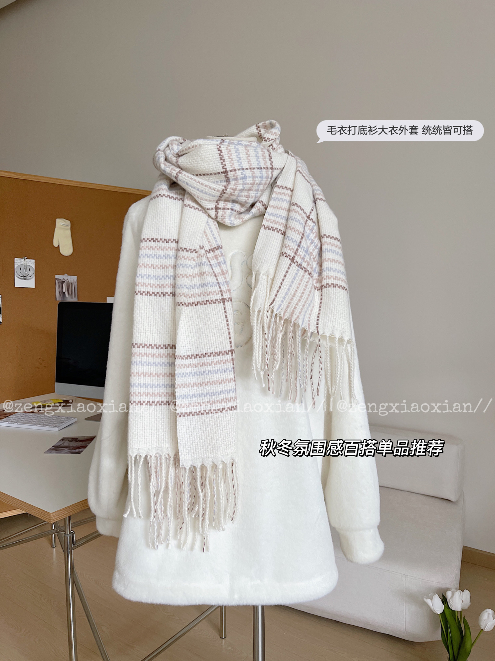 <曾小咸推荐>韩系温柔奶油格围巾 日常89/件 前1500单活动价39.99!【预售款,预计3-15天发货】