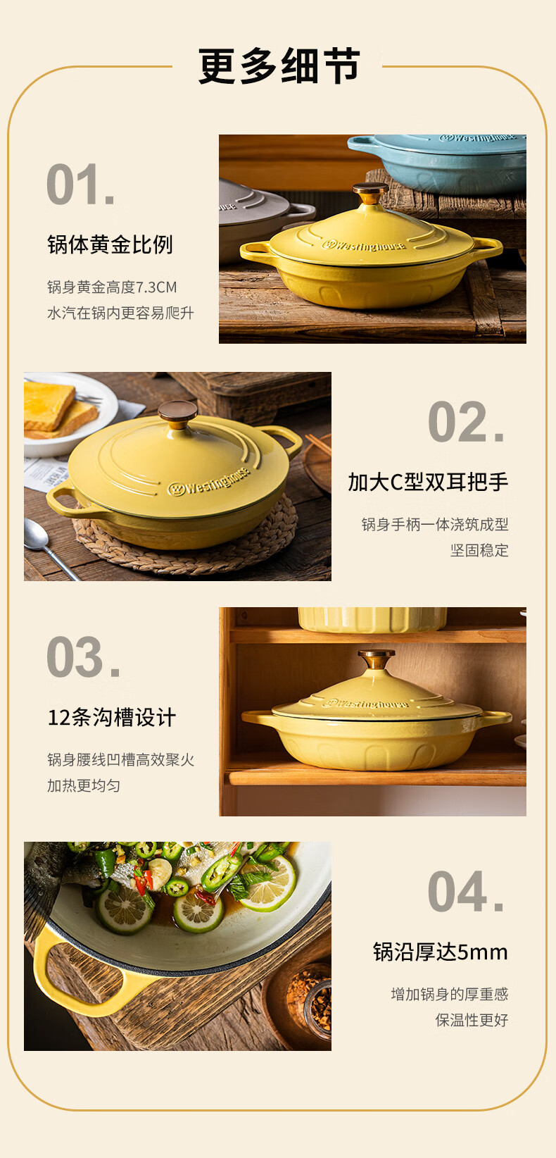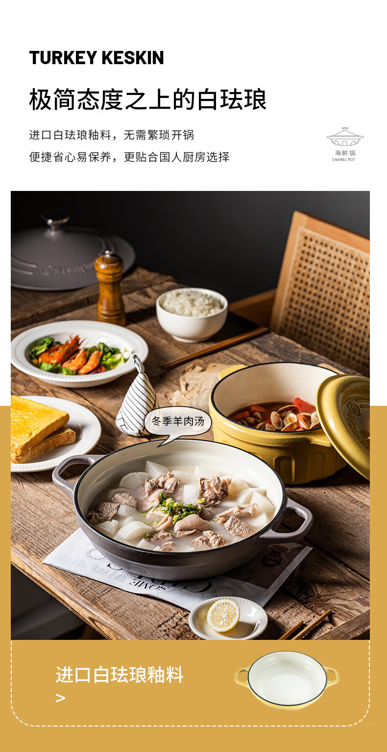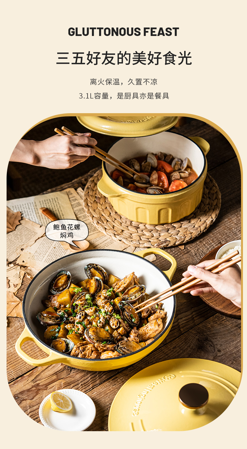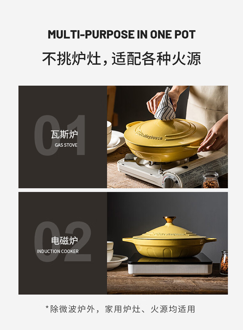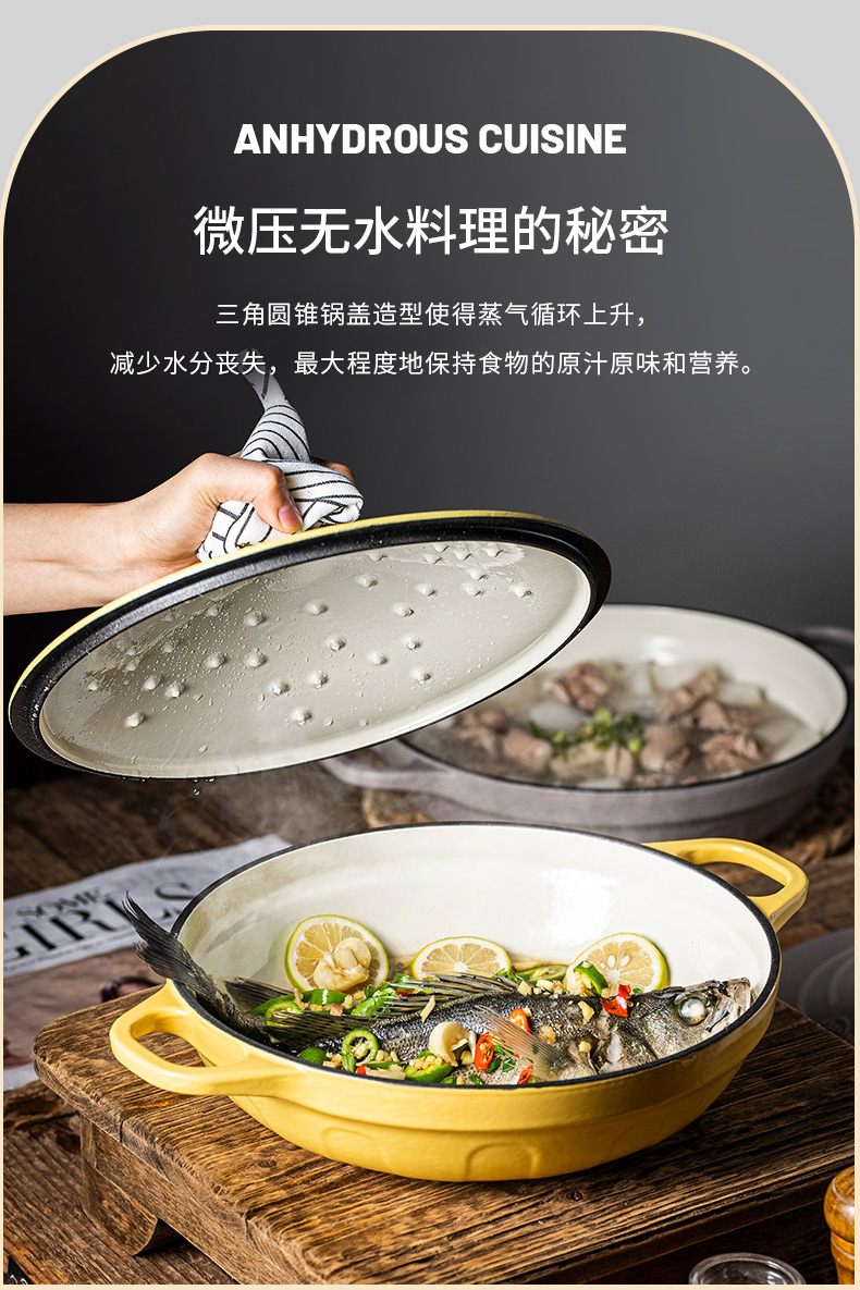 【美国西屋珐琅海鲜锅】西屋(Westinghouse) 珐琅铸铁锅炒锅家用焖焗锅海鲜锅多功能锅无水焖炖汤锅一锅多用 麦芒黄 28cm