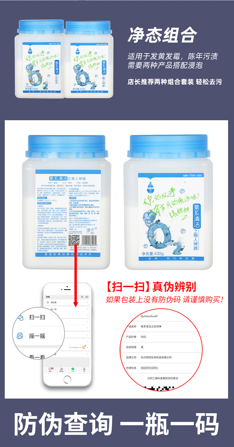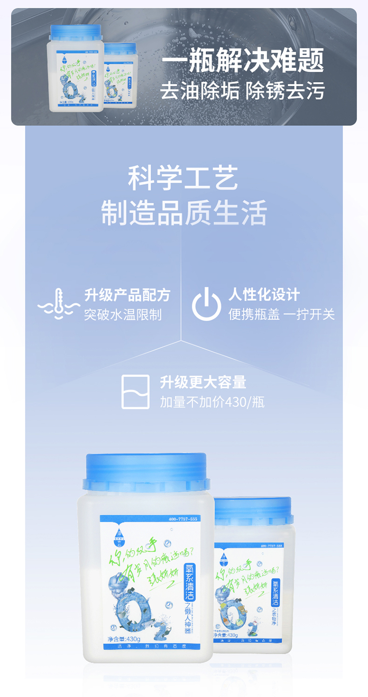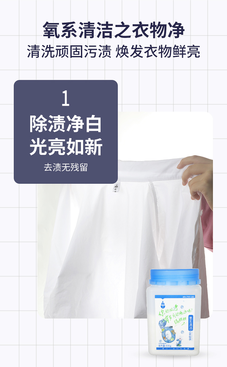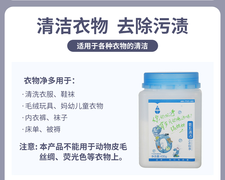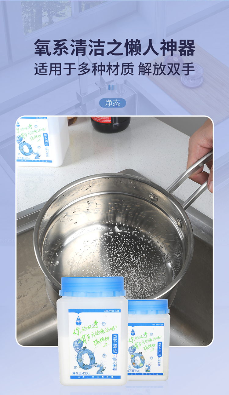 【快速去污瞬间溶解】净态品牌氧系清洁懒人神器/衣物净,430g/瓶