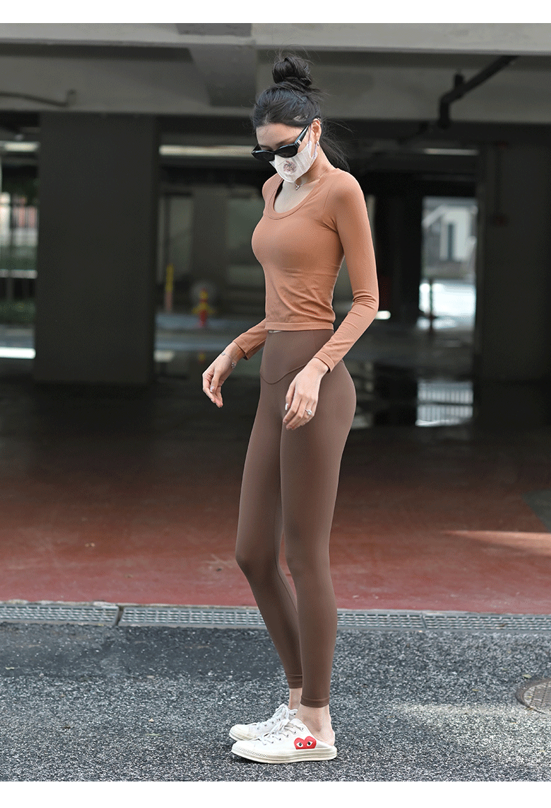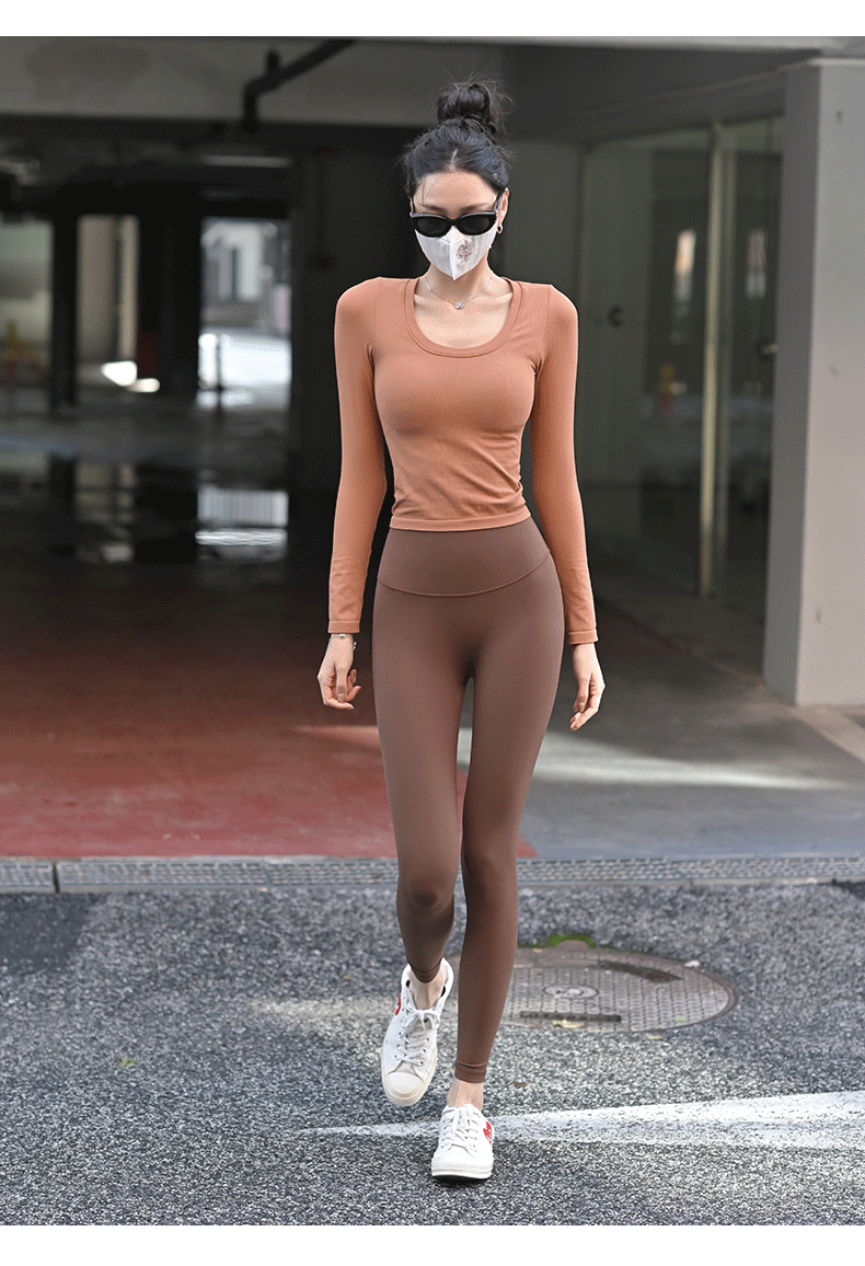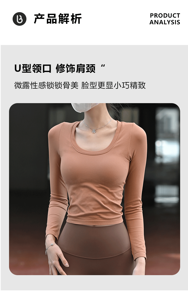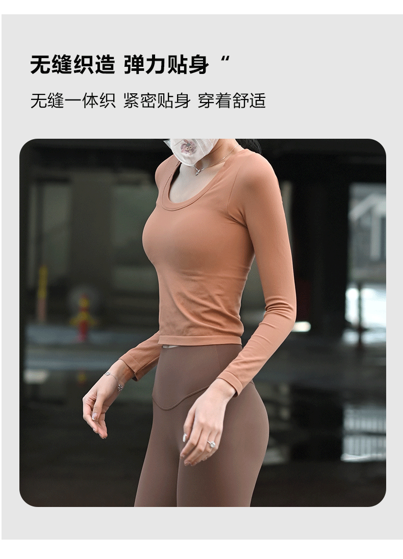 【胸垫款长袖】Beemen无缝一体织固定杯瑜伽服女上衣外穿秋冬运动长袖