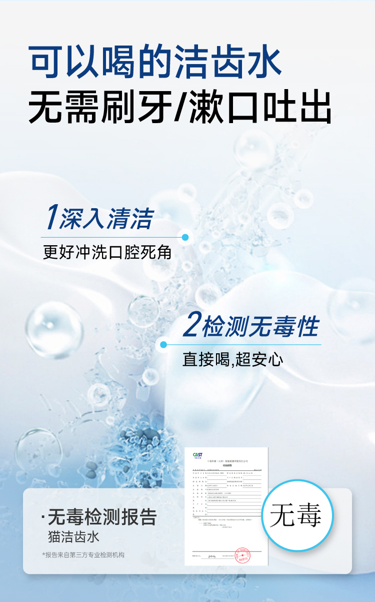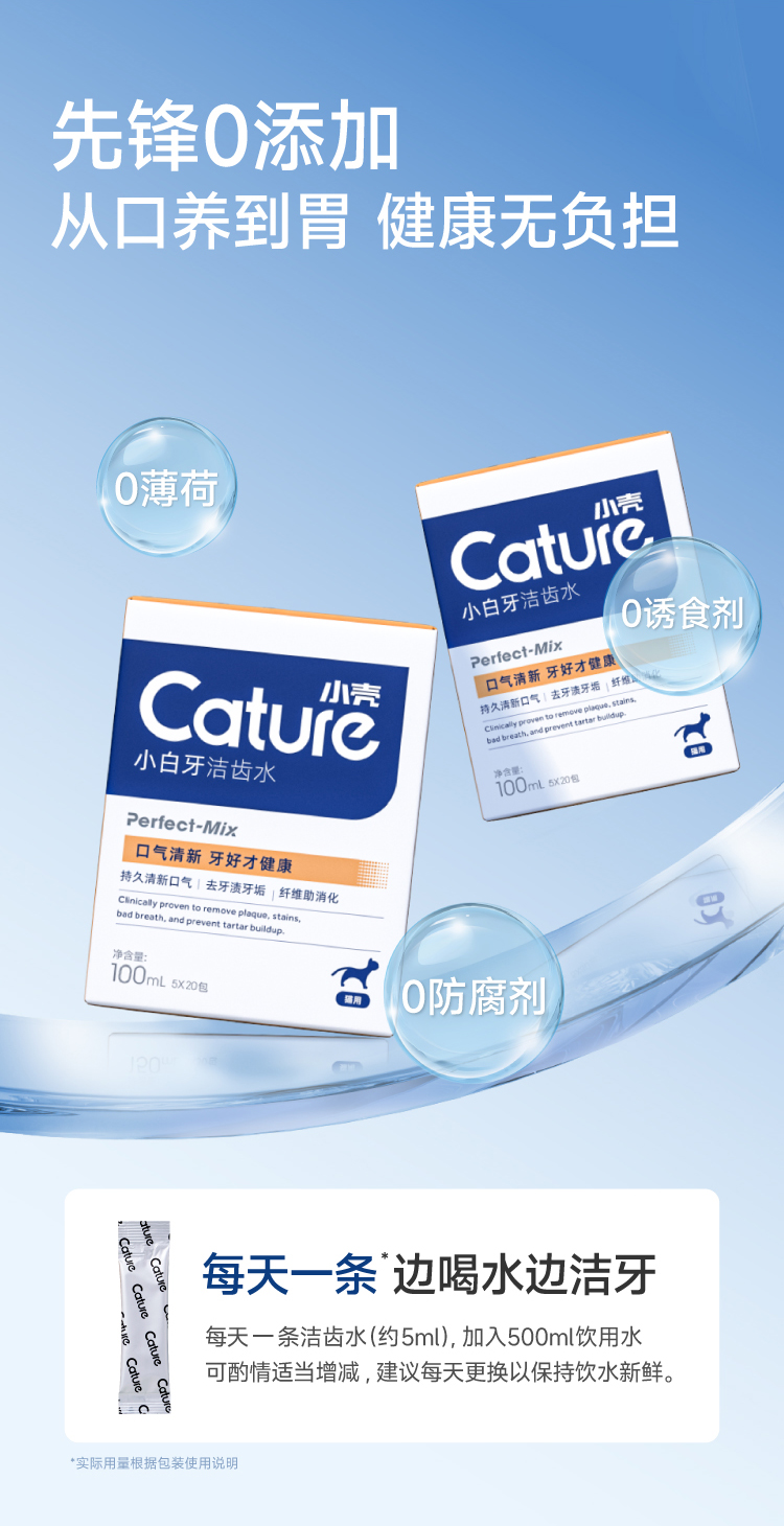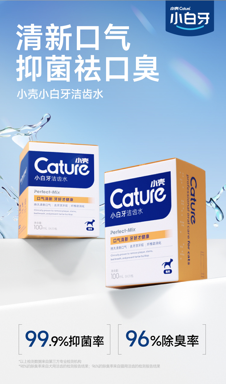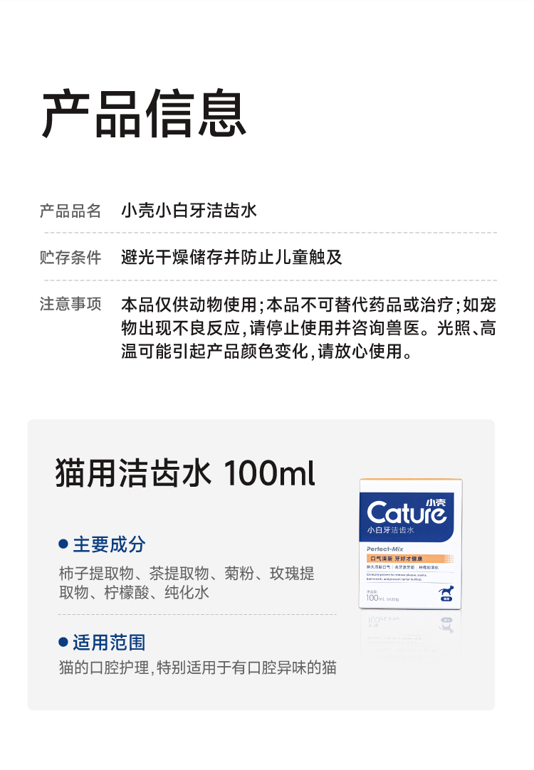小白牙猫用洁齿水 猫咪口腔护理,适用于口臭猫猫100ml/盒(内含20条小包)