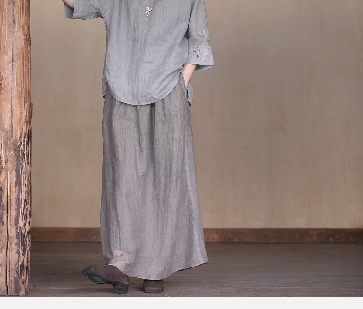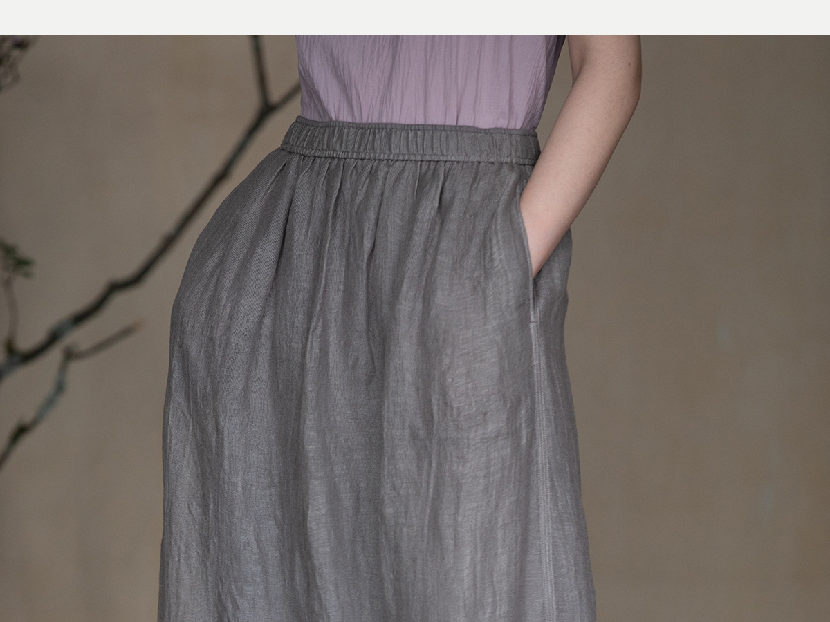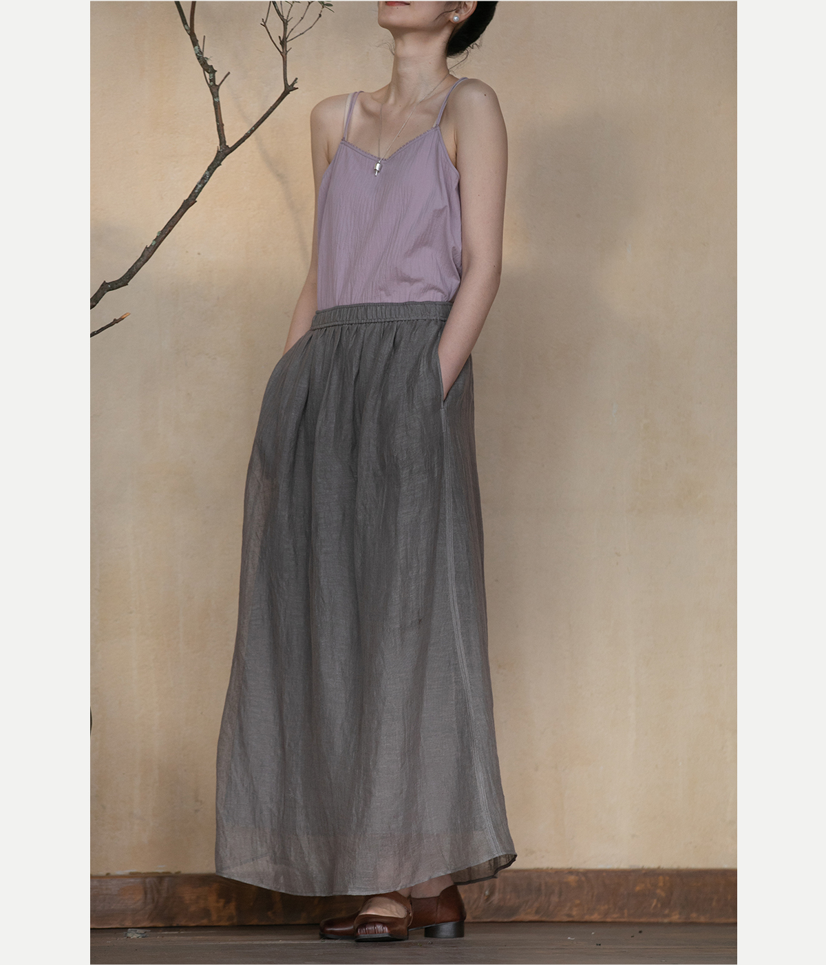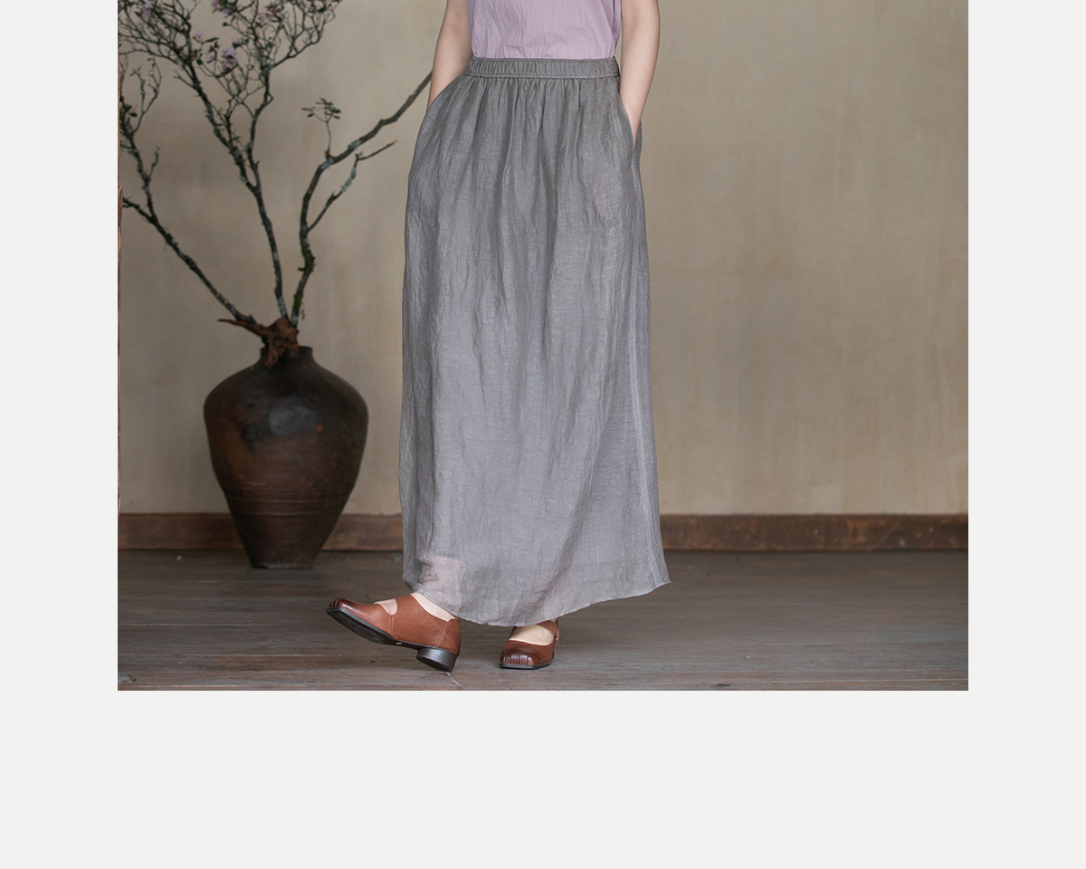 牧衣游原创 棉麻炒色半身裙新品轻薄飘逸百搭休闲宽松半裙 夜来霜