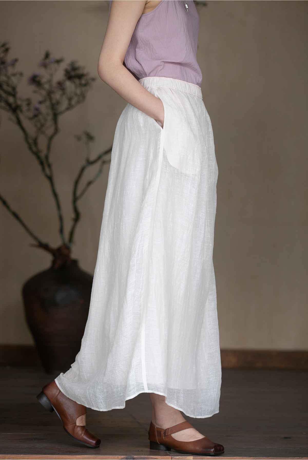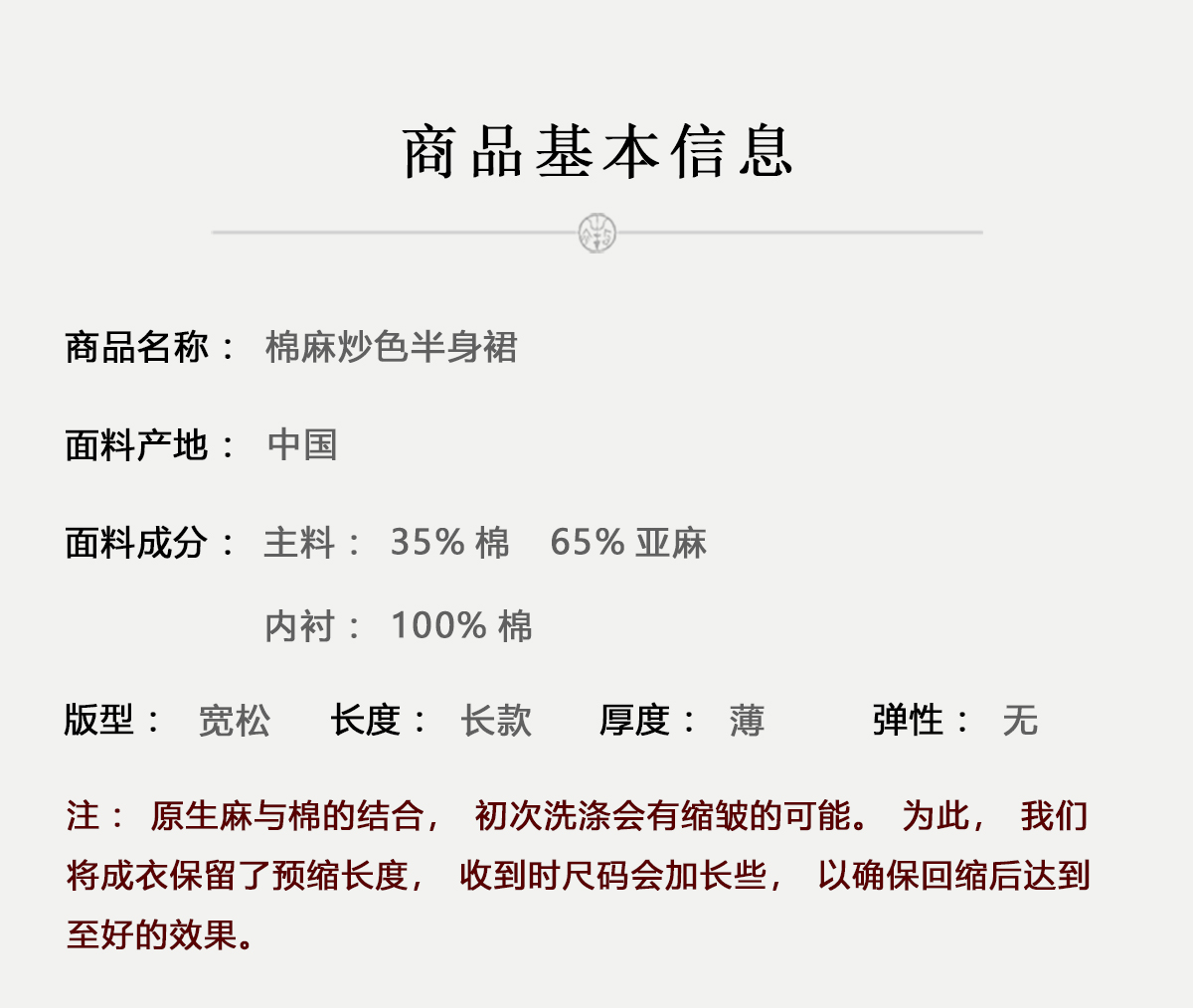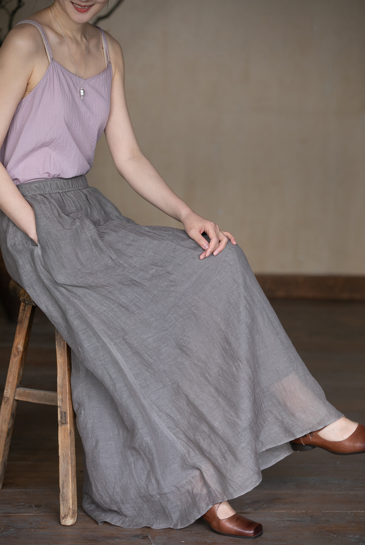 牧衣游原创 棉麻炒色半身裙新品轻薄飘逸百搭休闲宽松半裙 夜来霜