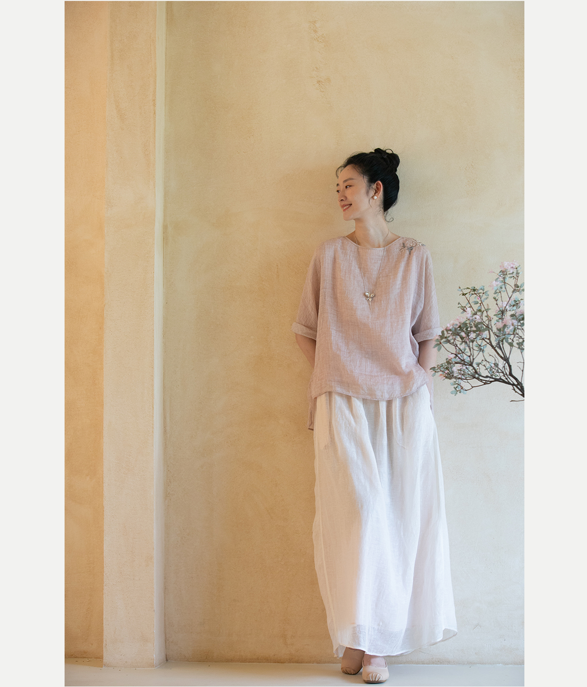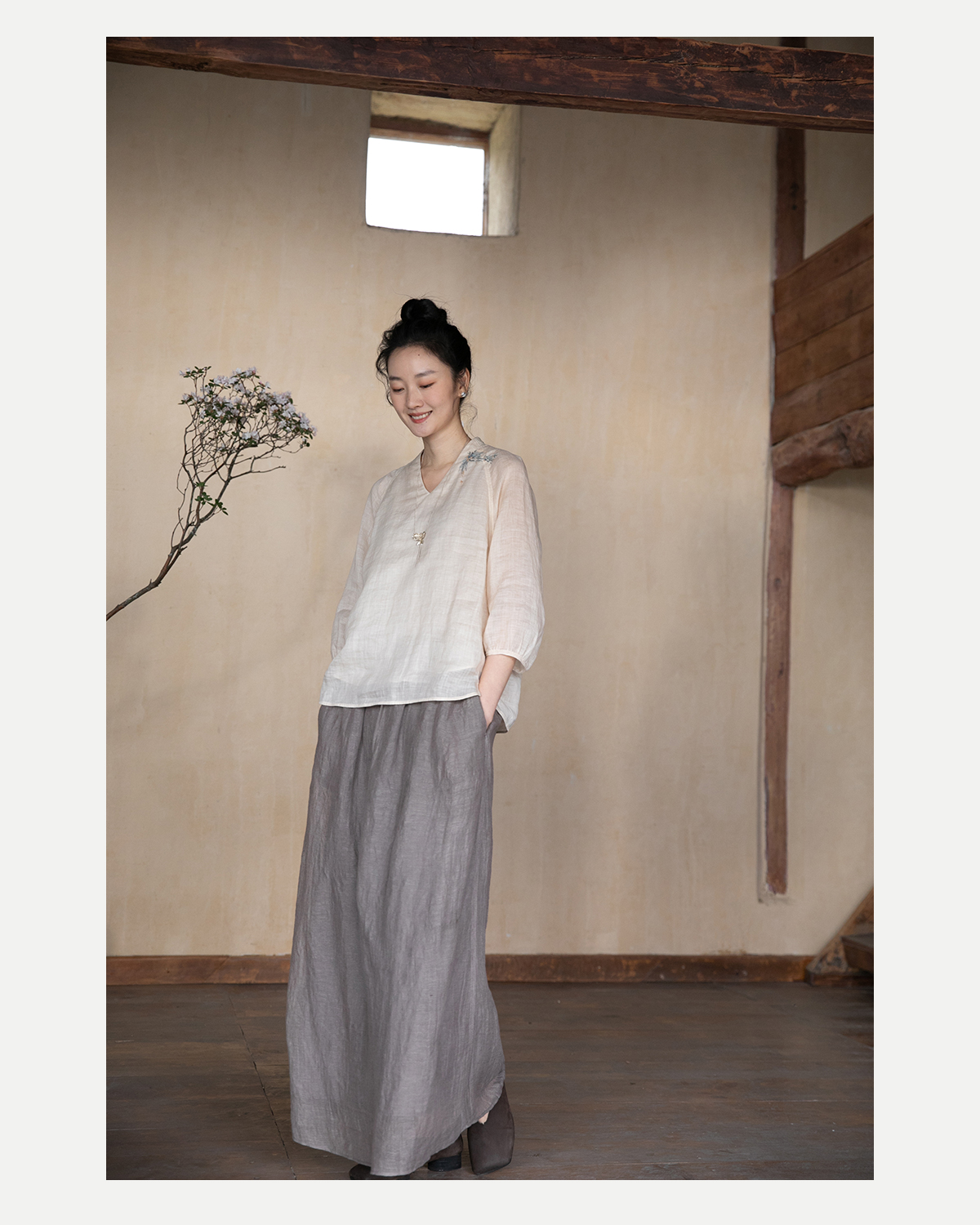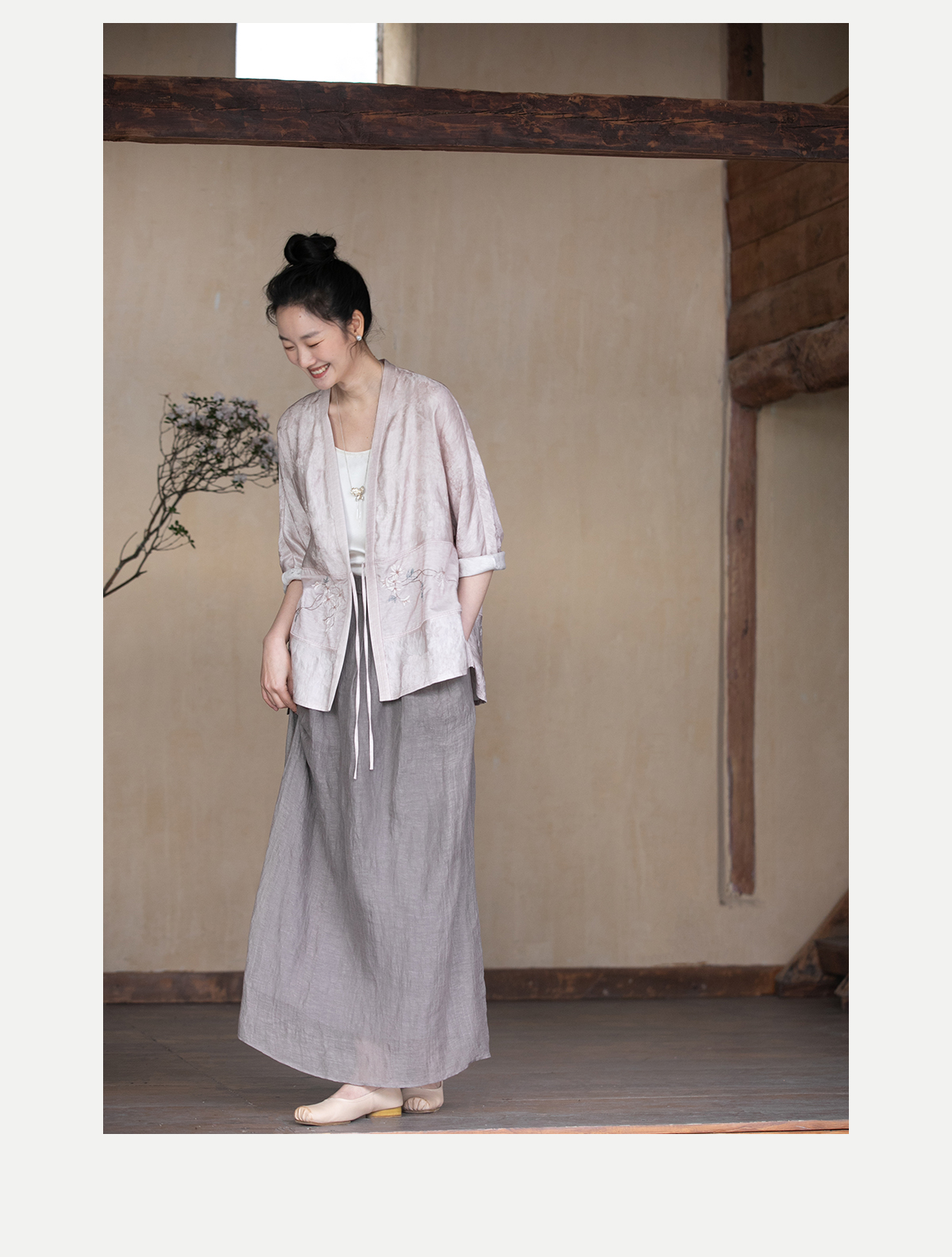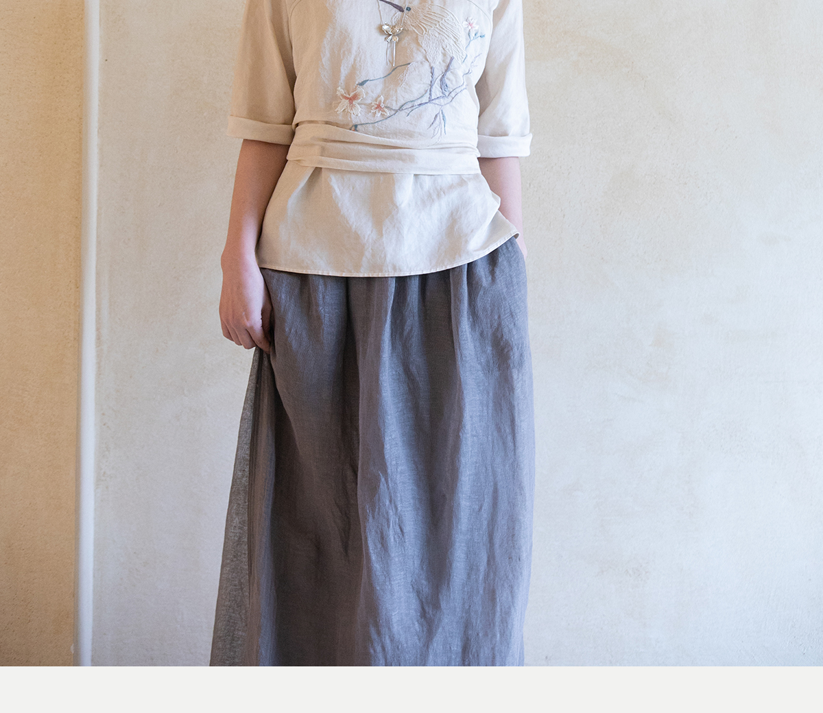牧衣游原创 棉麻炒色半身裙新品轻薄飘逸百搭休闲宽松半裙 夜来霜