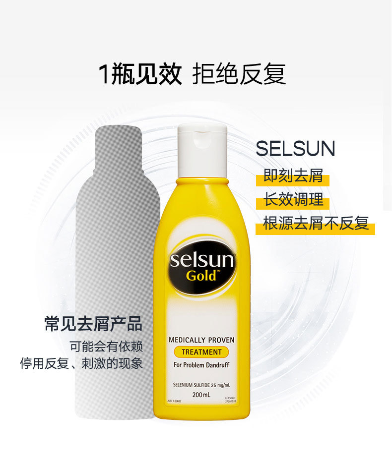 买一送一 澳洲 Selsun Gold天然去屑洗发水洗发露去头皮屑止痒200ml