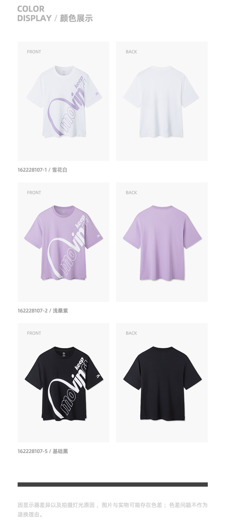 安踏短袖女2022夏季新款T恤休闲运动上衣162228107-1/2/5