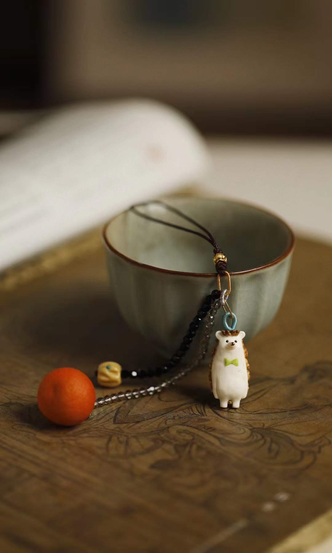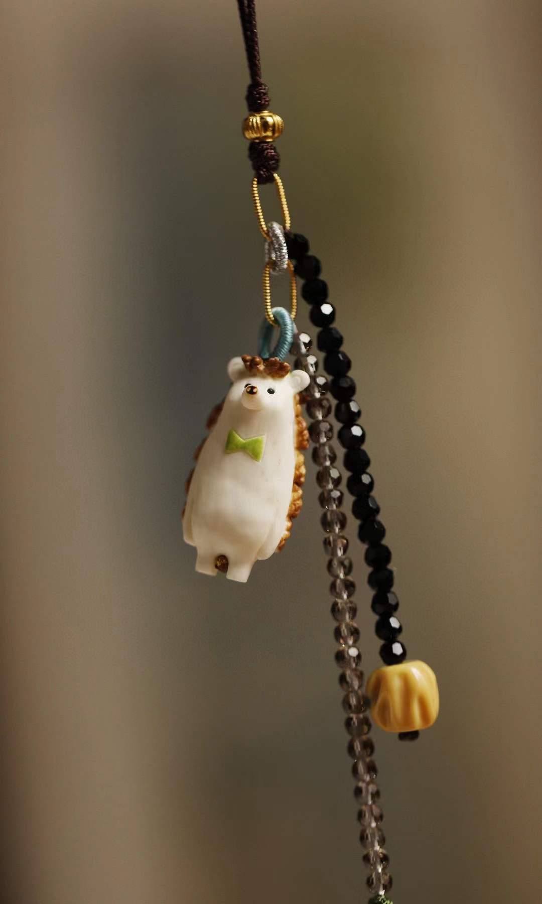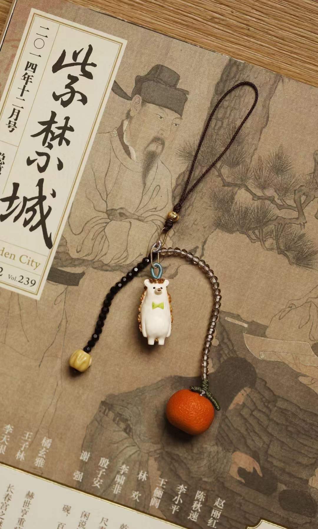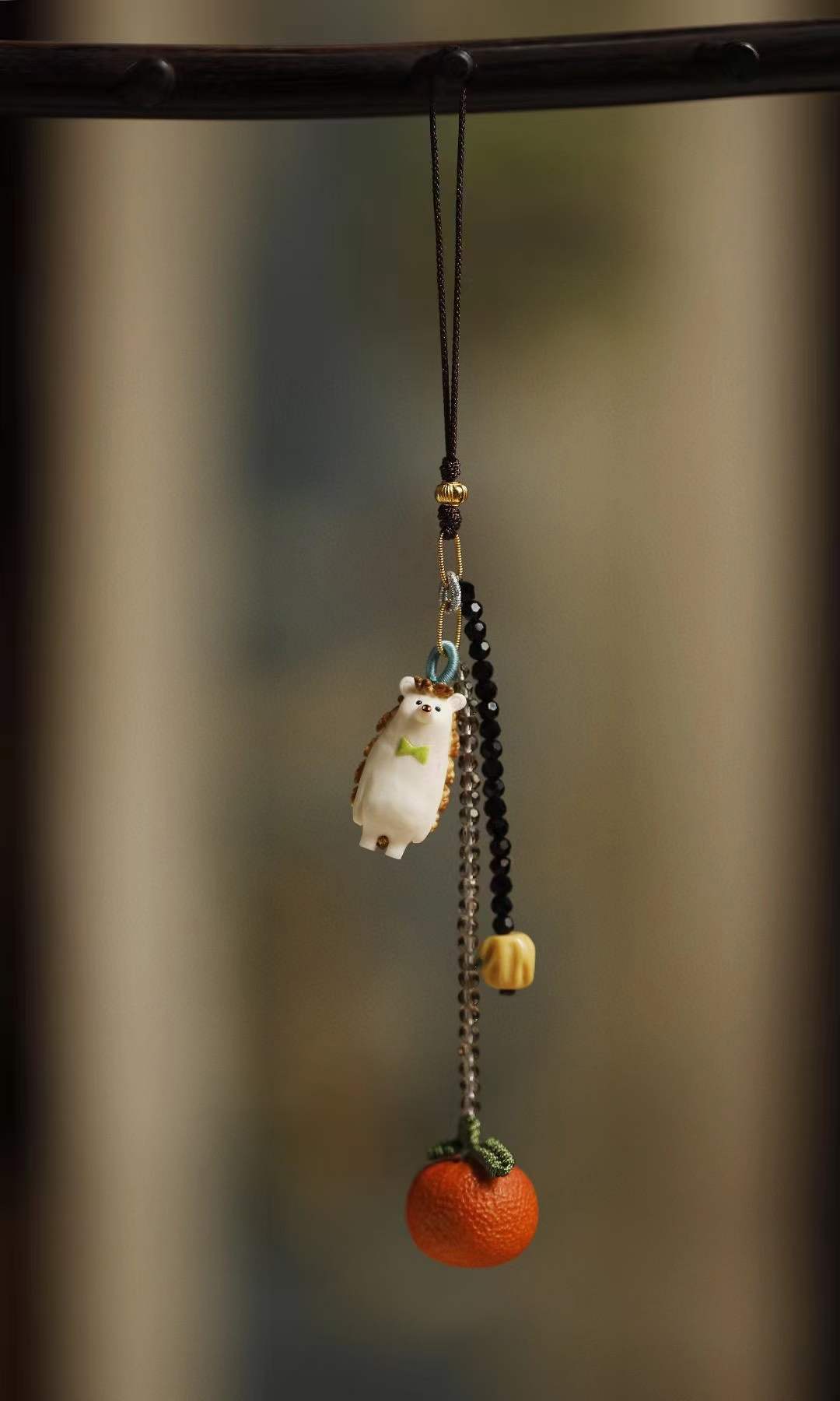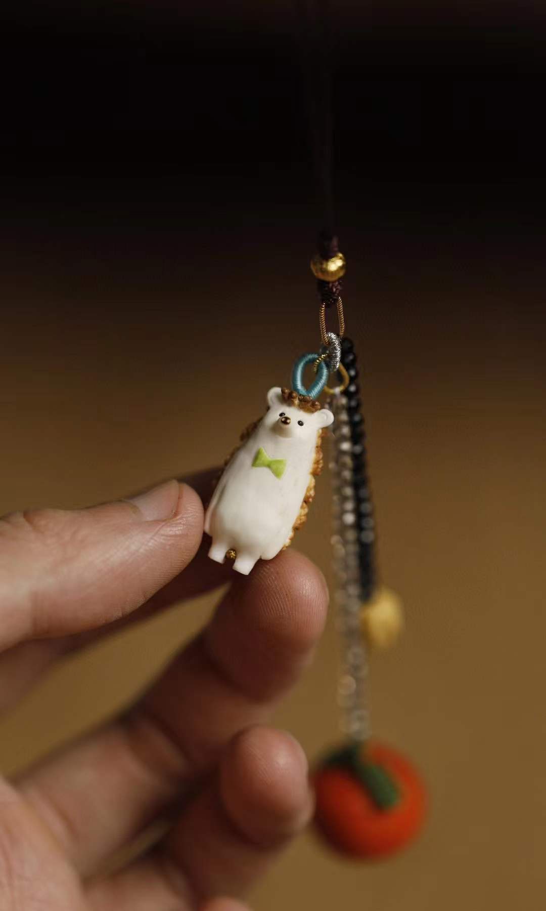 鹿角手工雕成刺猬、橘子,天然植物着色,多遍去留俏色,还原本真不掉色,适用包挂、钥匙扣。