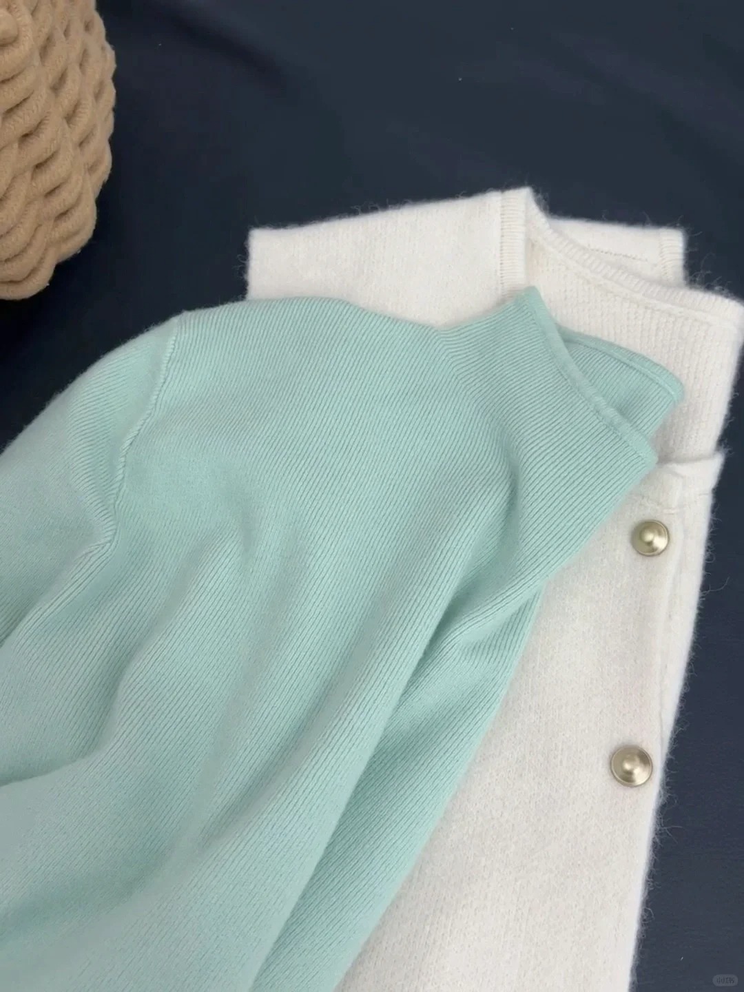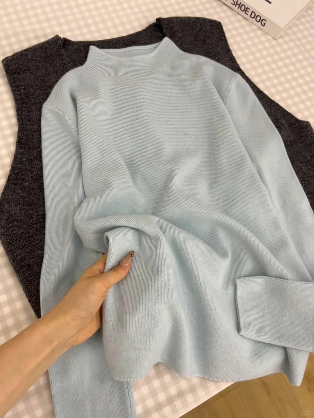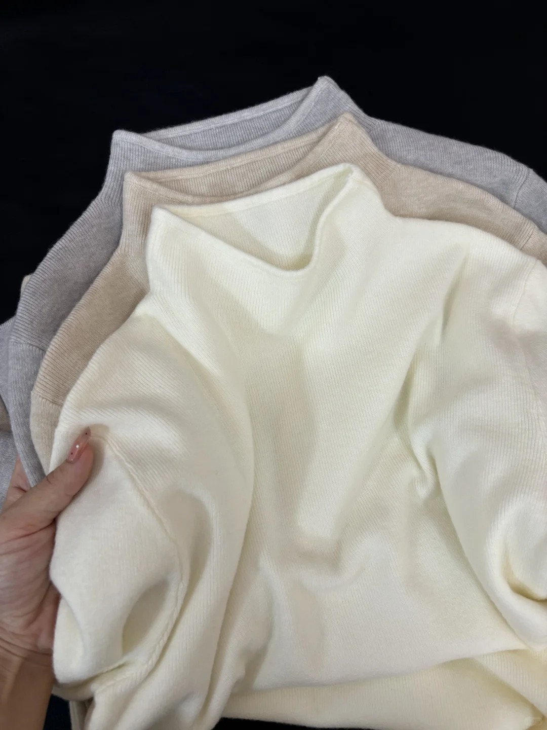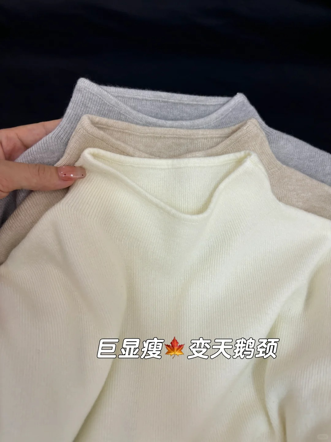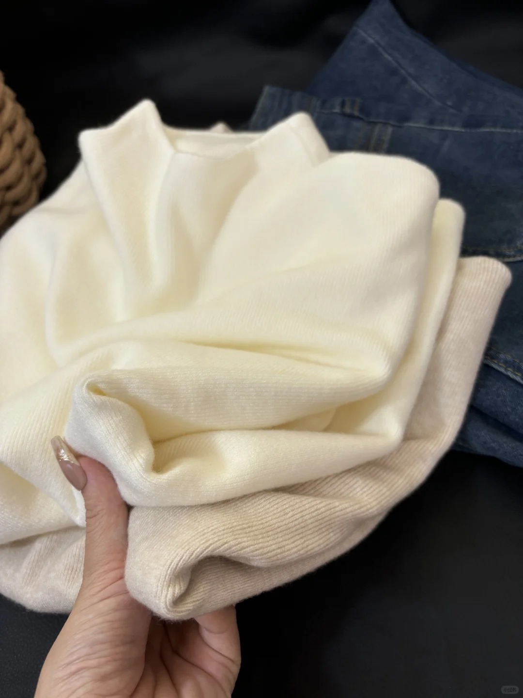 羊毛打底衫 秋冬天鹅绒T恤日系休闲简约显白显瘦温柔小立领长袖针织衫女春季通勤毛衣内搭