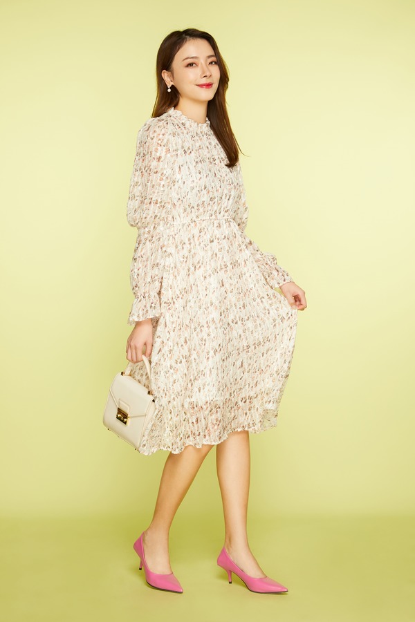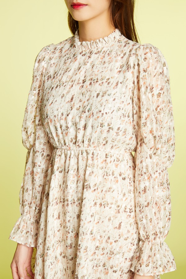 L.Fleuri 荷叶边立领印花连衣裙 11336