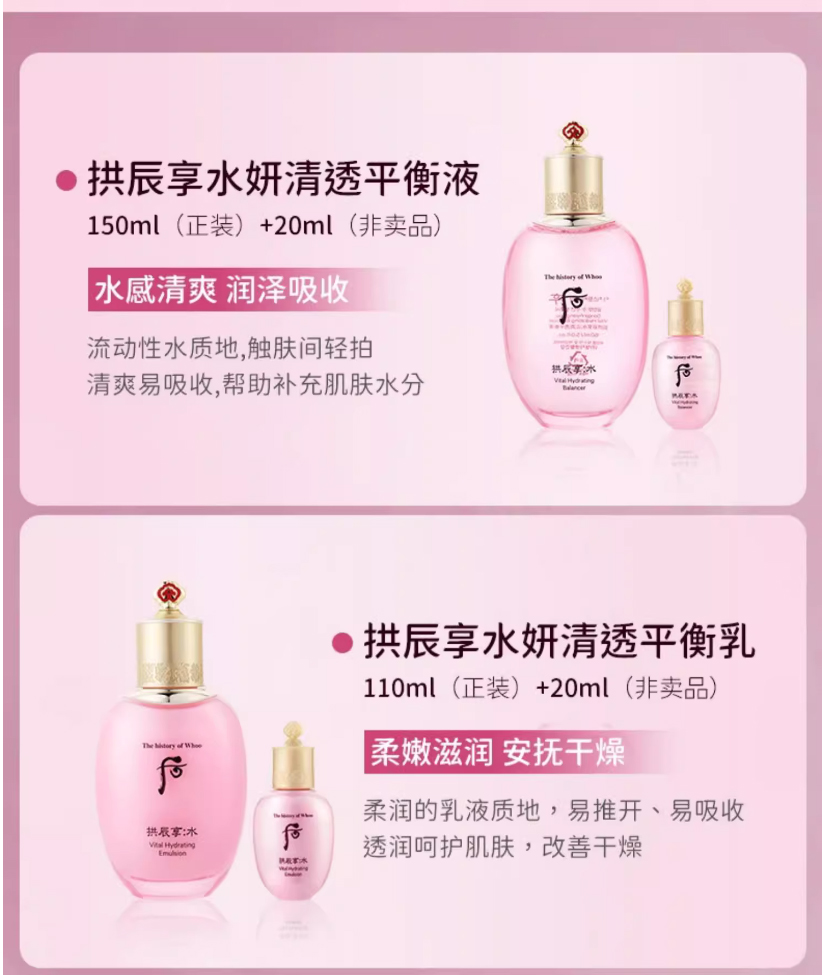 【品名】拱振享 水沄清透系列礼盒6件套(平衡液150ml+平衡乳110ml+ 清透面霜4ml +平衡液20ml+平衡乳20ml+洁肤露40ml)