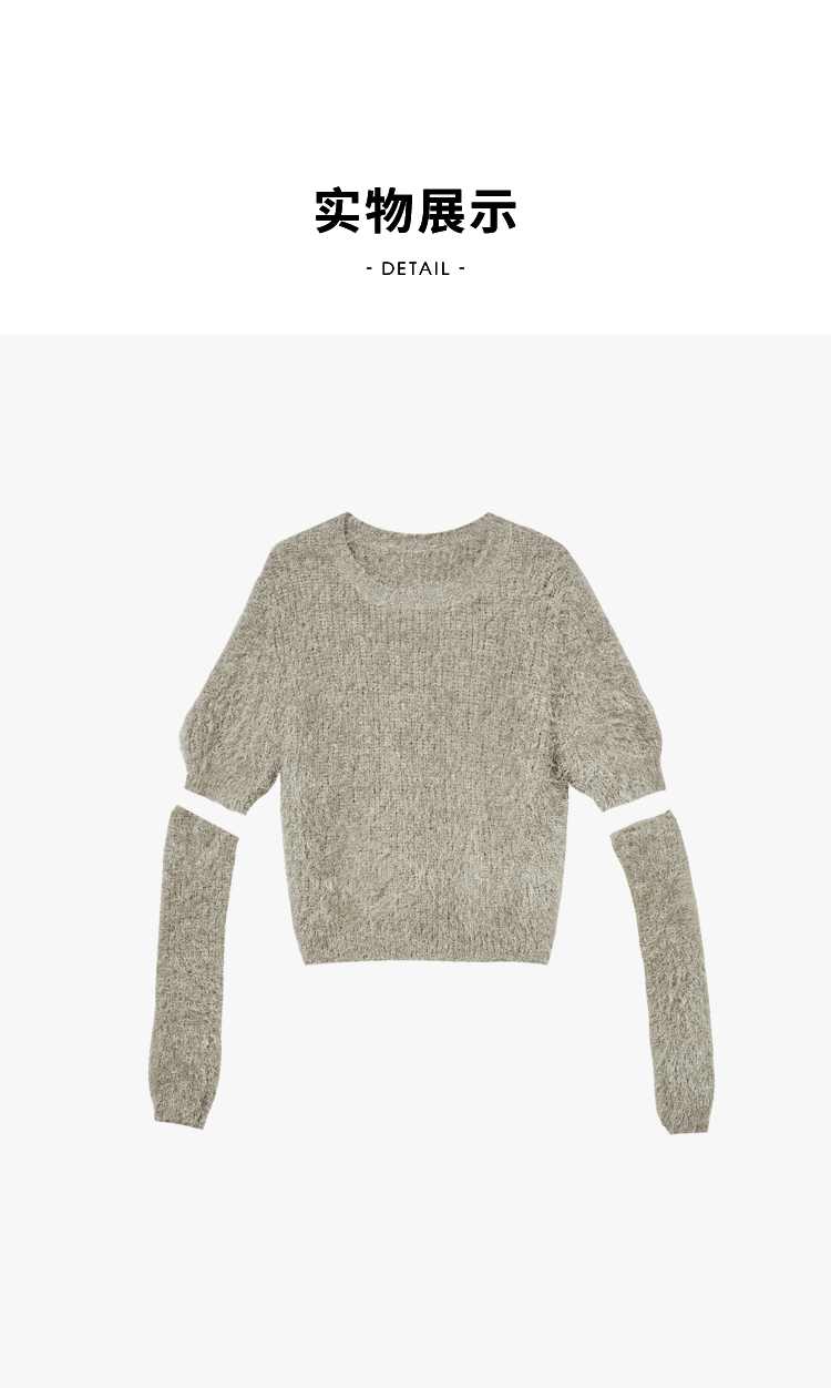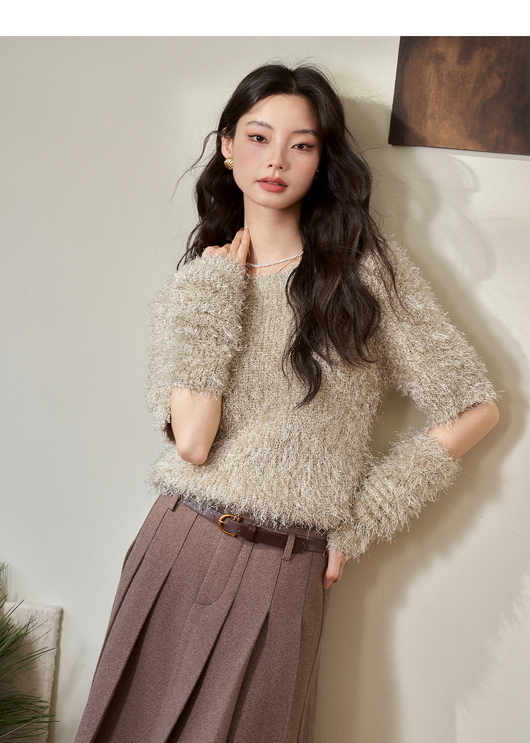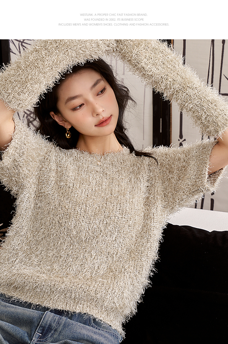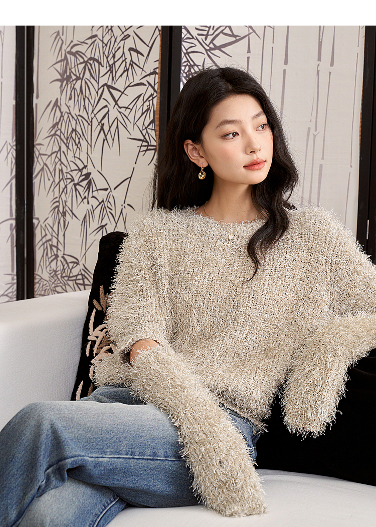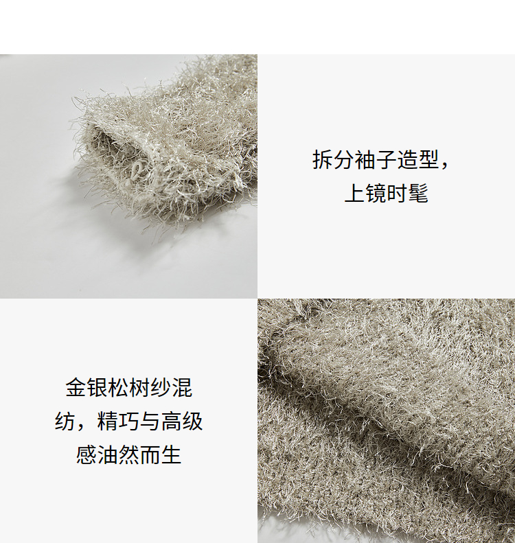 西遇小香风长袖毛衣2023秋冬新款洋气小众毛绒绒短款流苏拆分袖D2238854