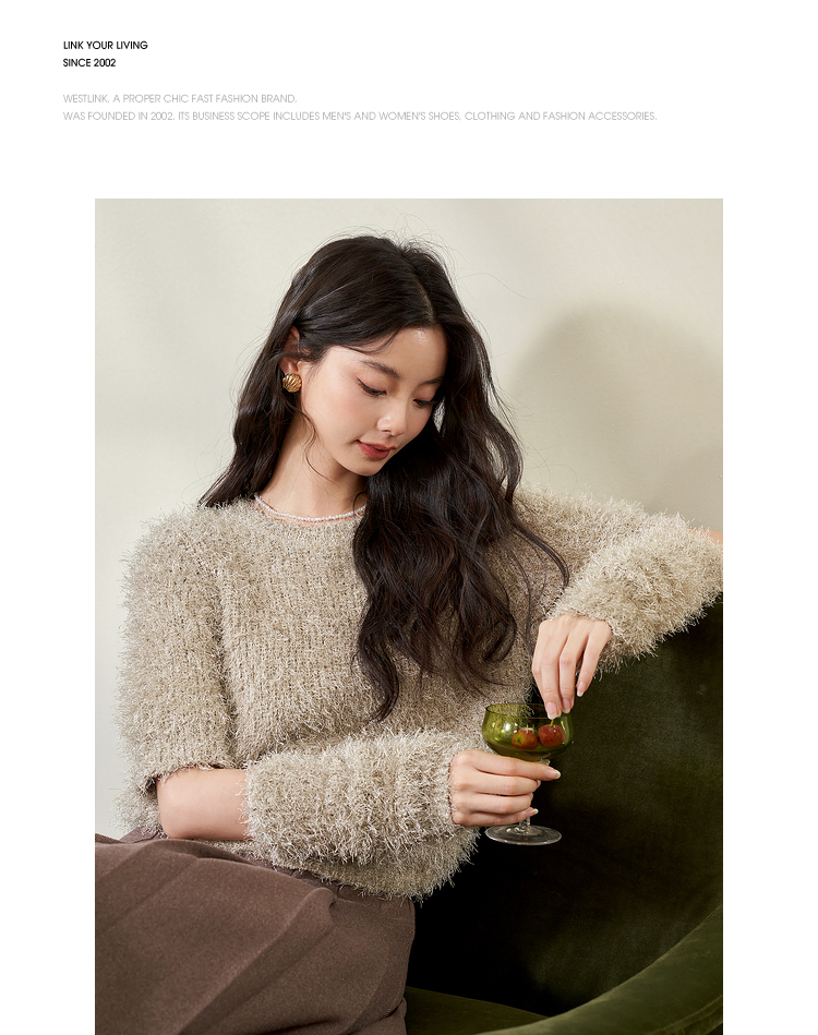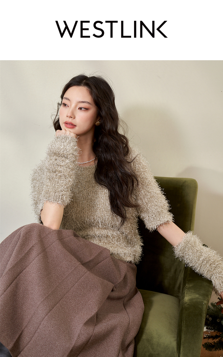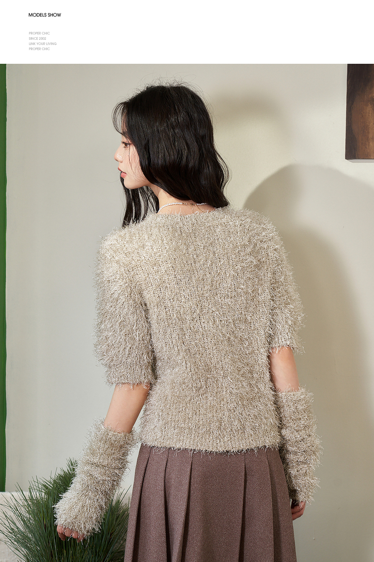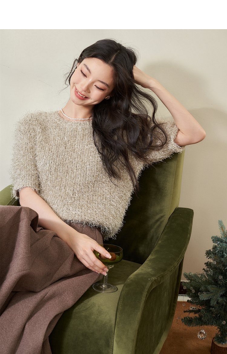 西遇小香风长袖毛衣2023秋冬新款洋气小众毛绒绒短款流苏拆分袖D2238854