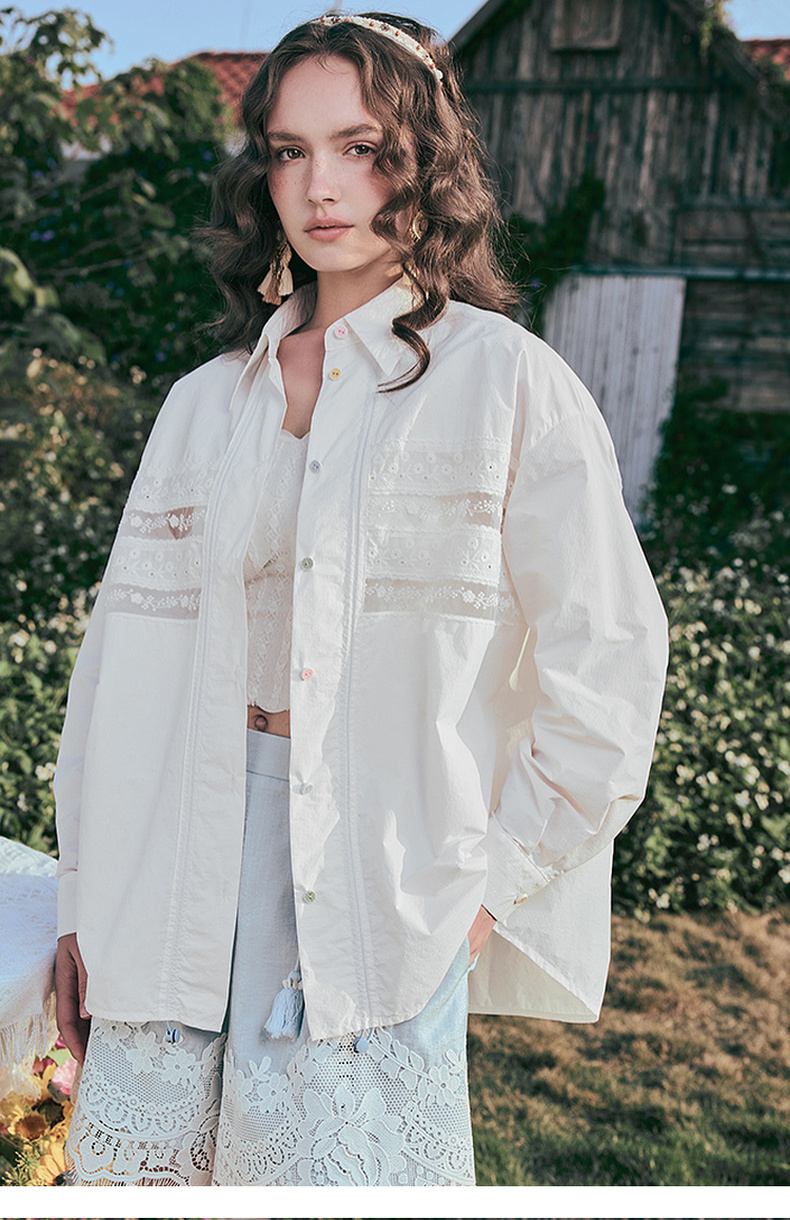 两三事 星海捕风 2025夏季新款时尚蕾丝拼接抽褶防晒开衫女宽松