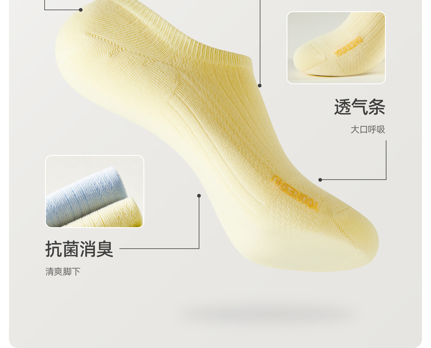 【新品上新】【网眼透气】有棵树薄款抗菌隐形防滑不掉跟女士船袜5双装-S2023