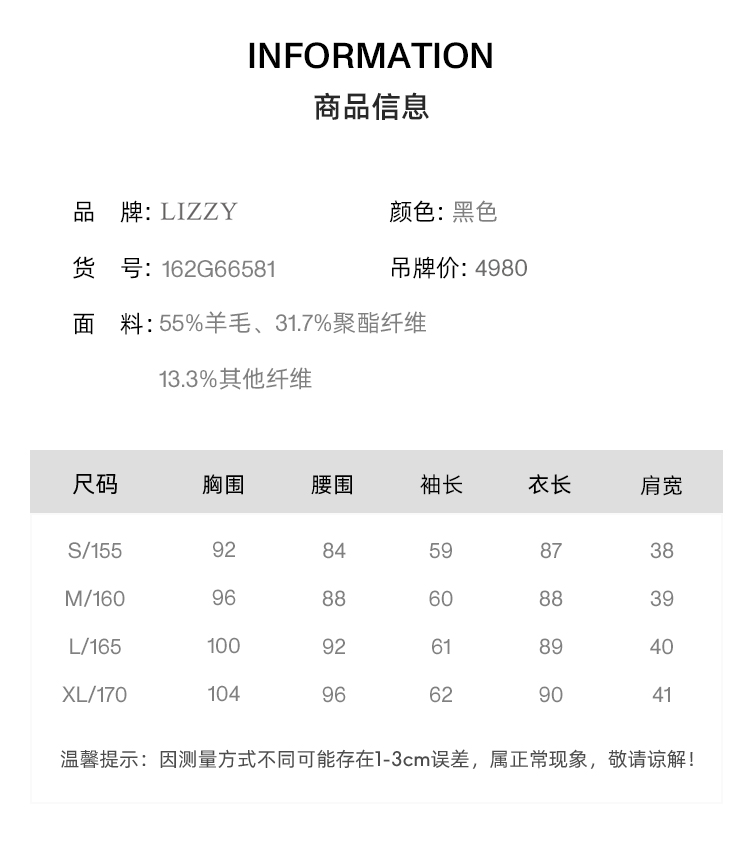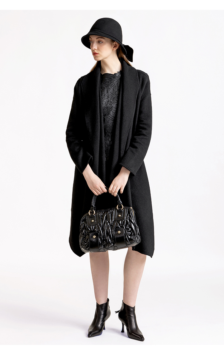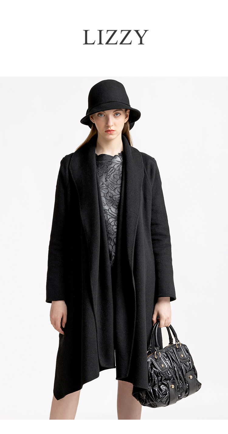 【双面呢】LIZZY2023冬款毛呢大衣轻奢女装外套配腰带6658
