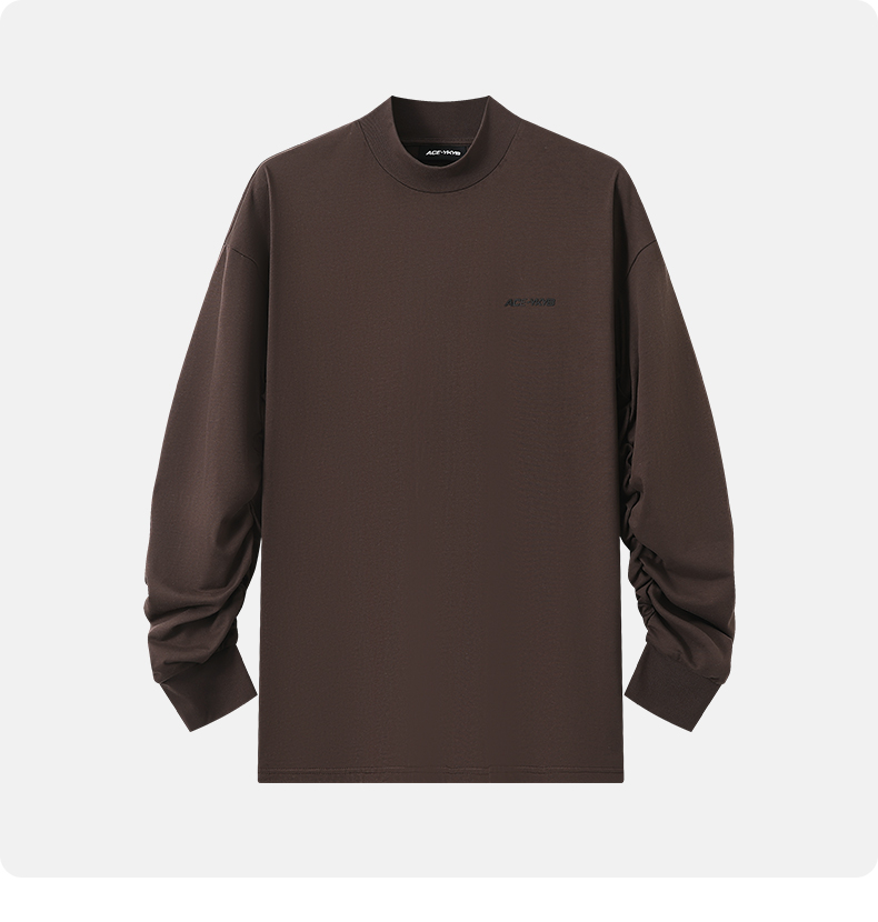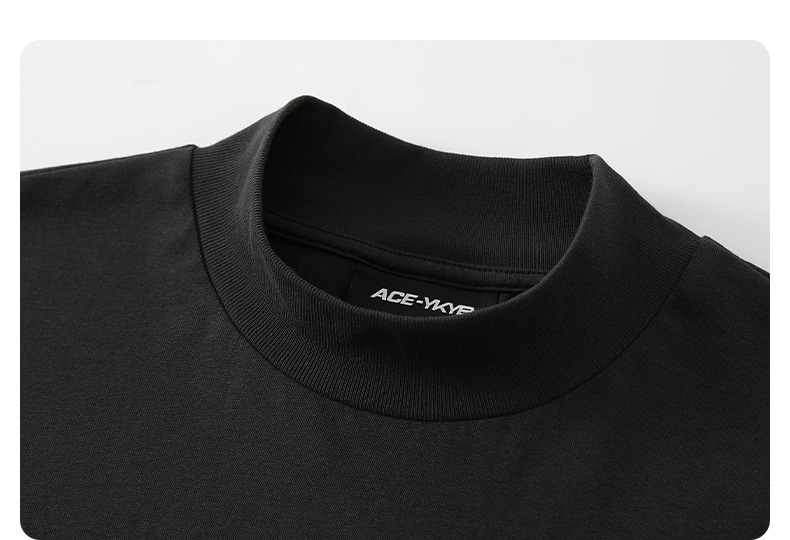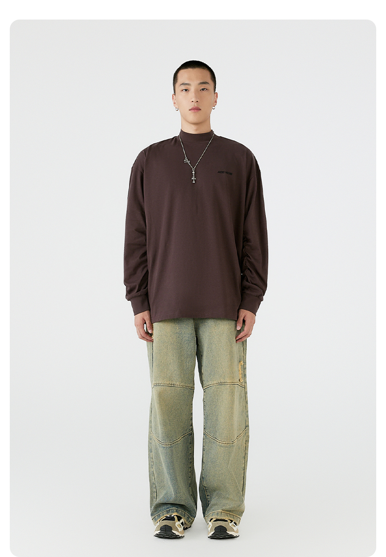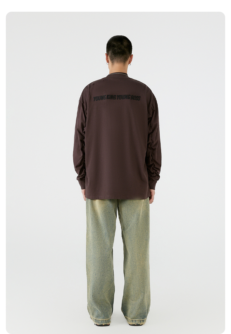 YKYB 废土文学小高领长袖T恤秋季新款美式潮酷抽皱磨毛男友风上衣