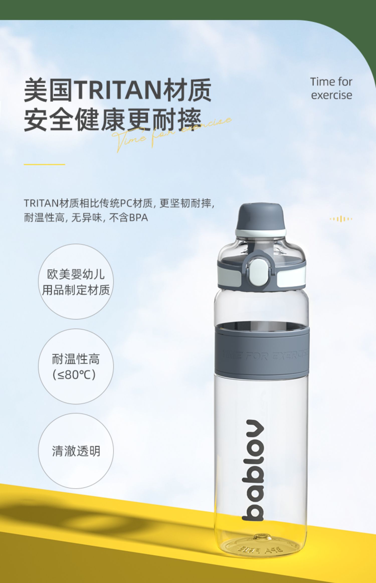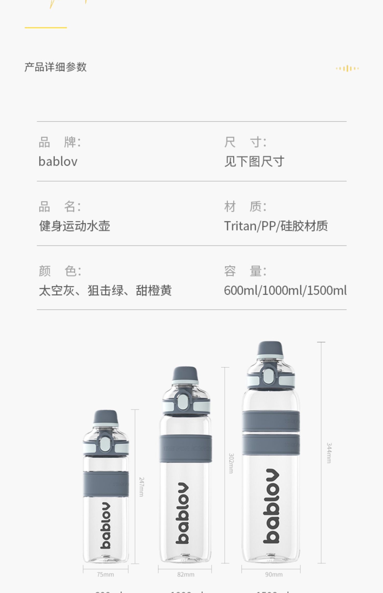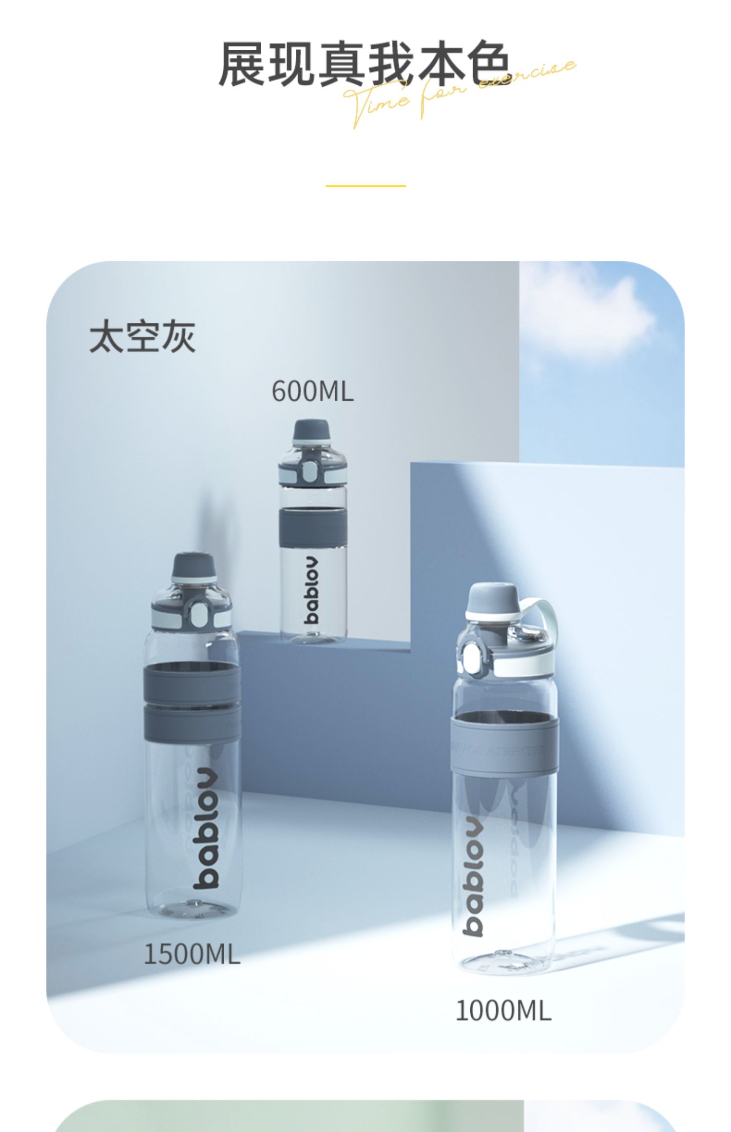 bablov运动水杯男女生大容量健身水壶防摔户外塑料杯子女便携超大号