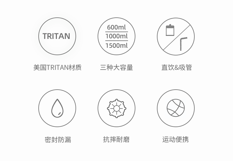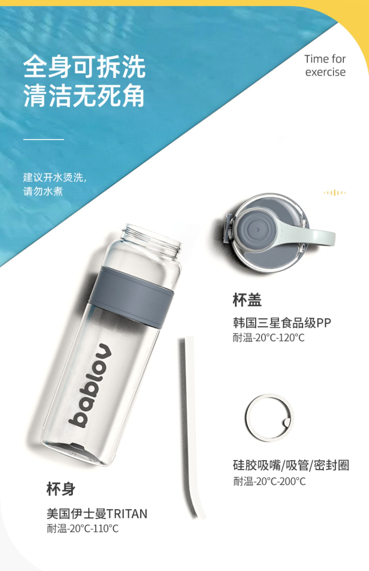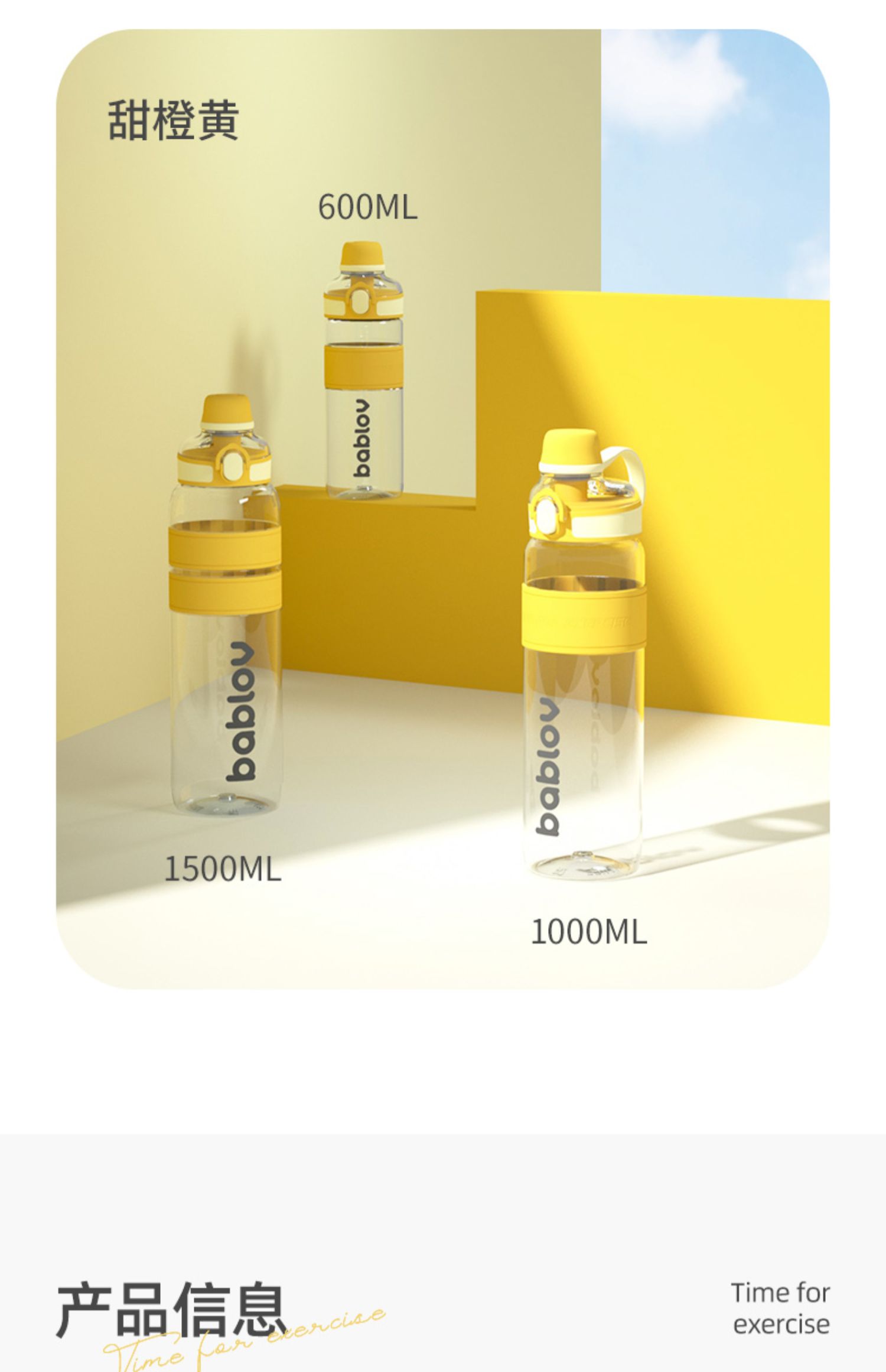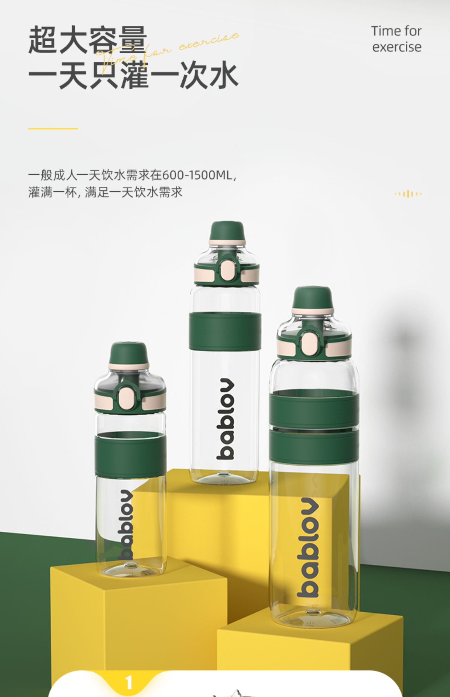 bablov运动水杯男女生大容量健身水壶防摔户外塑料杯子女便携超大号