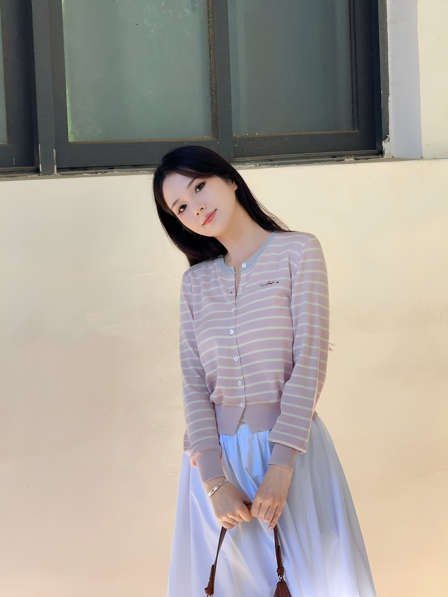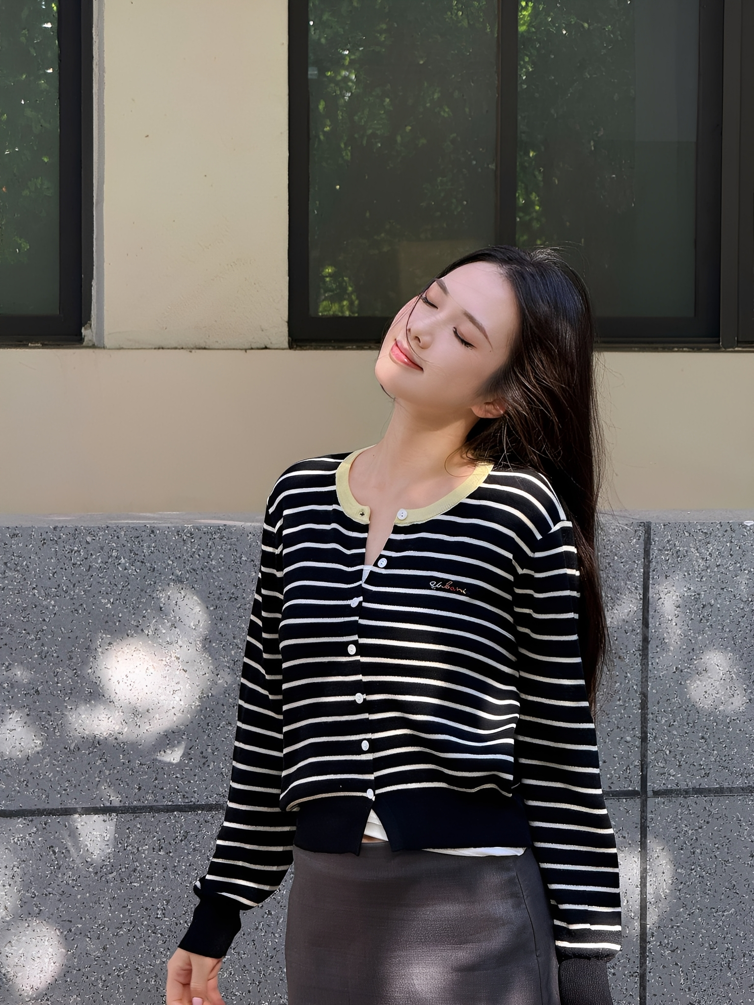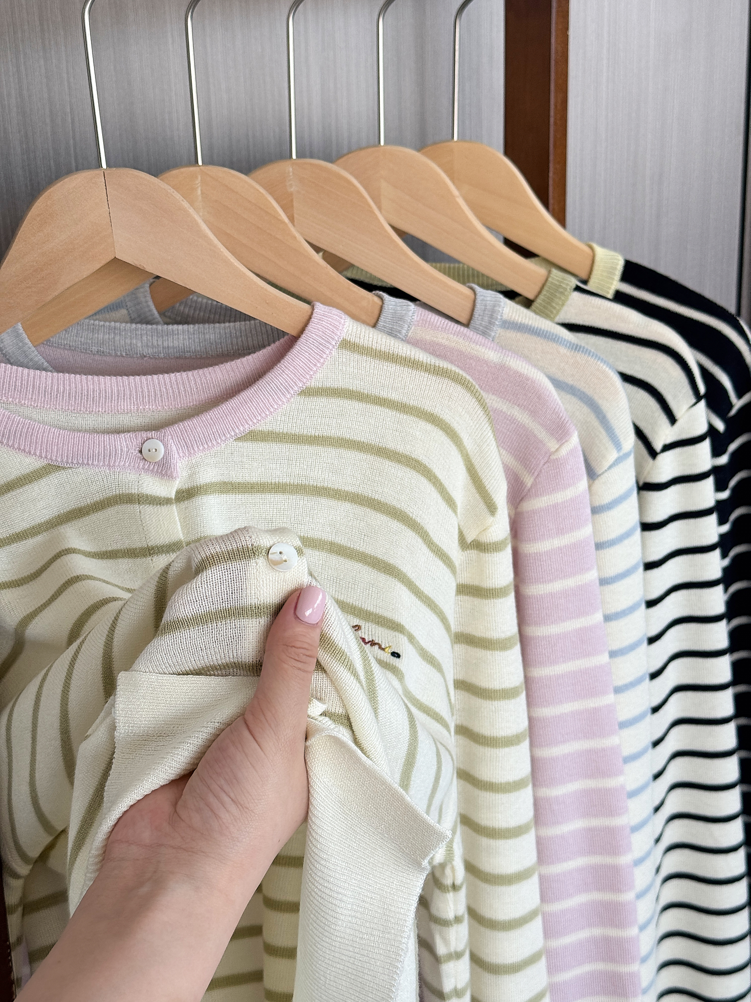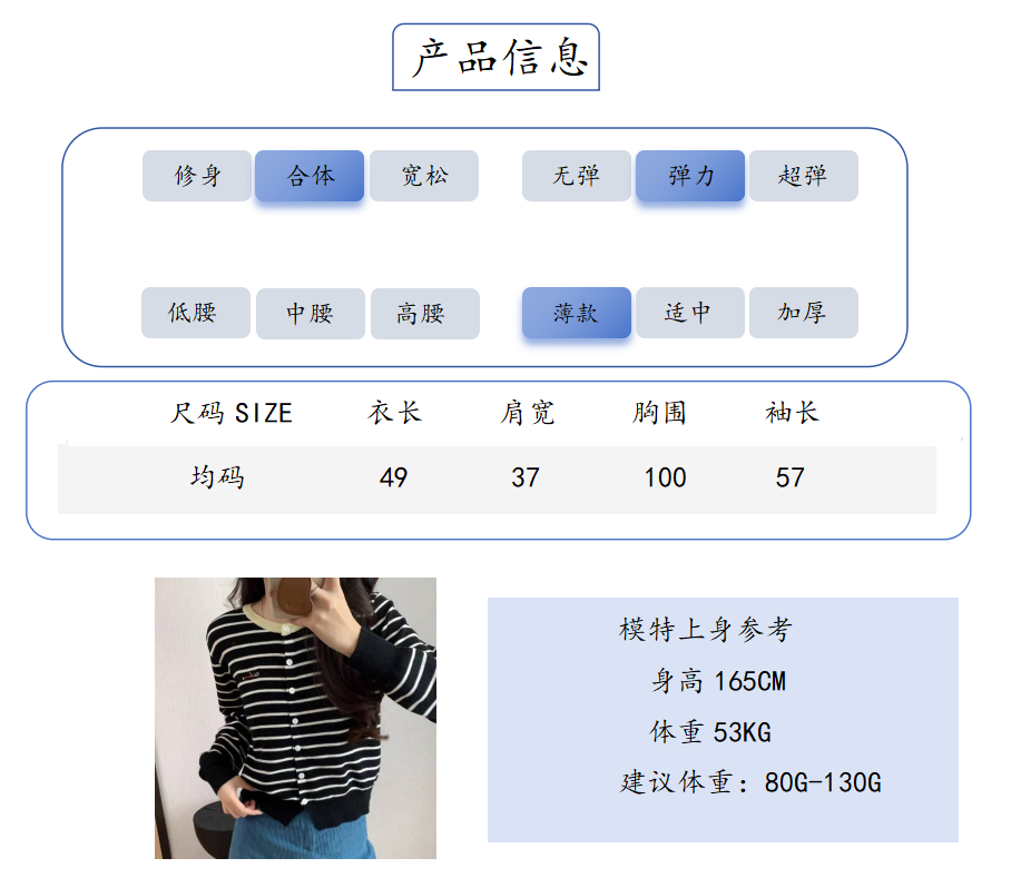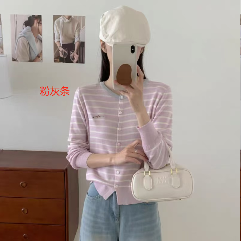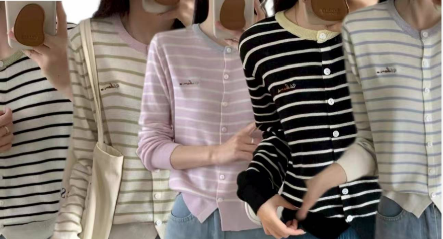 秋季新品【南油女装条纹拼色刺绣开衫】初秋穿搭 软薄轻柔 基础宽松款+条纹设计 简约高级 五色可选