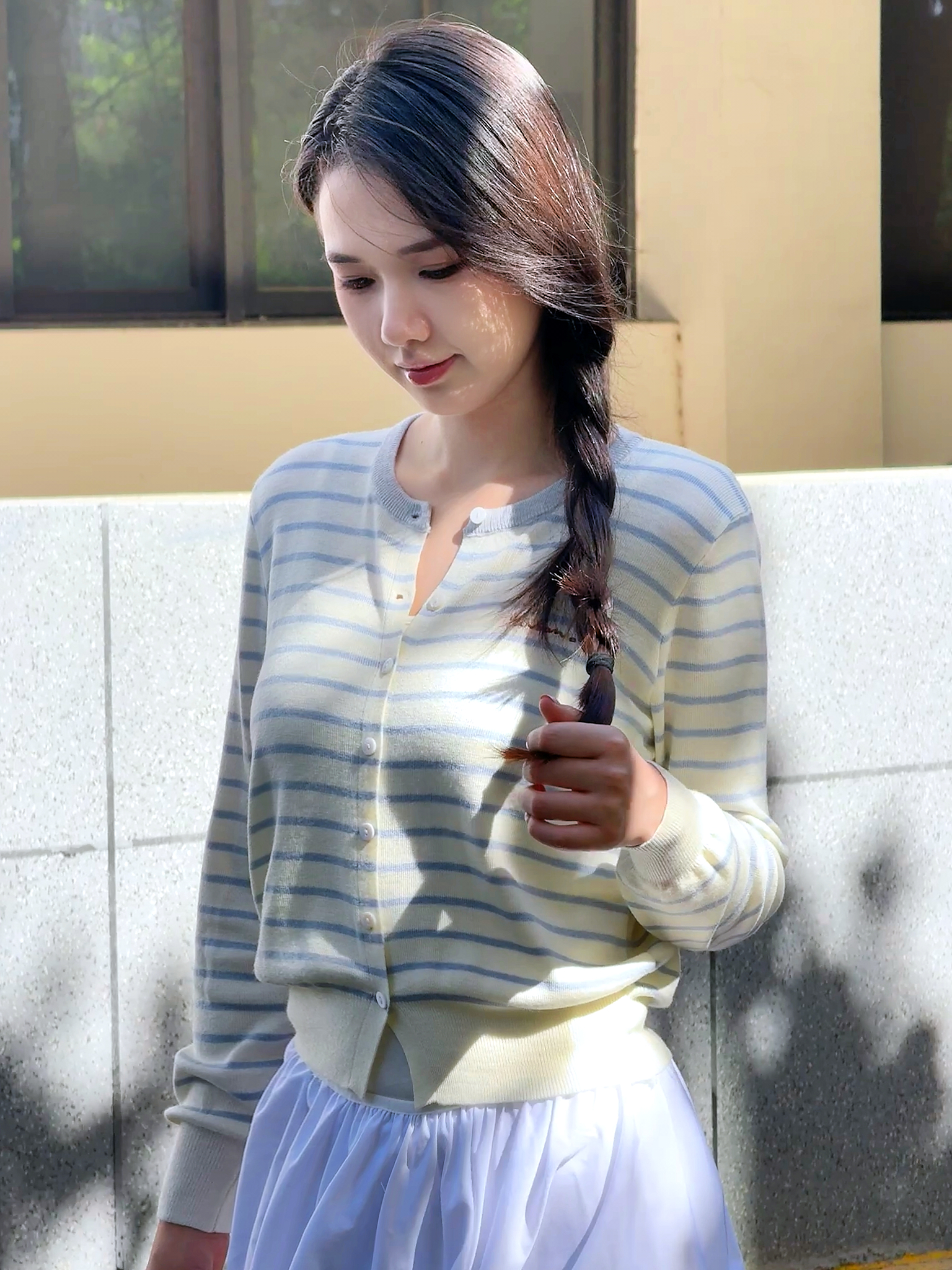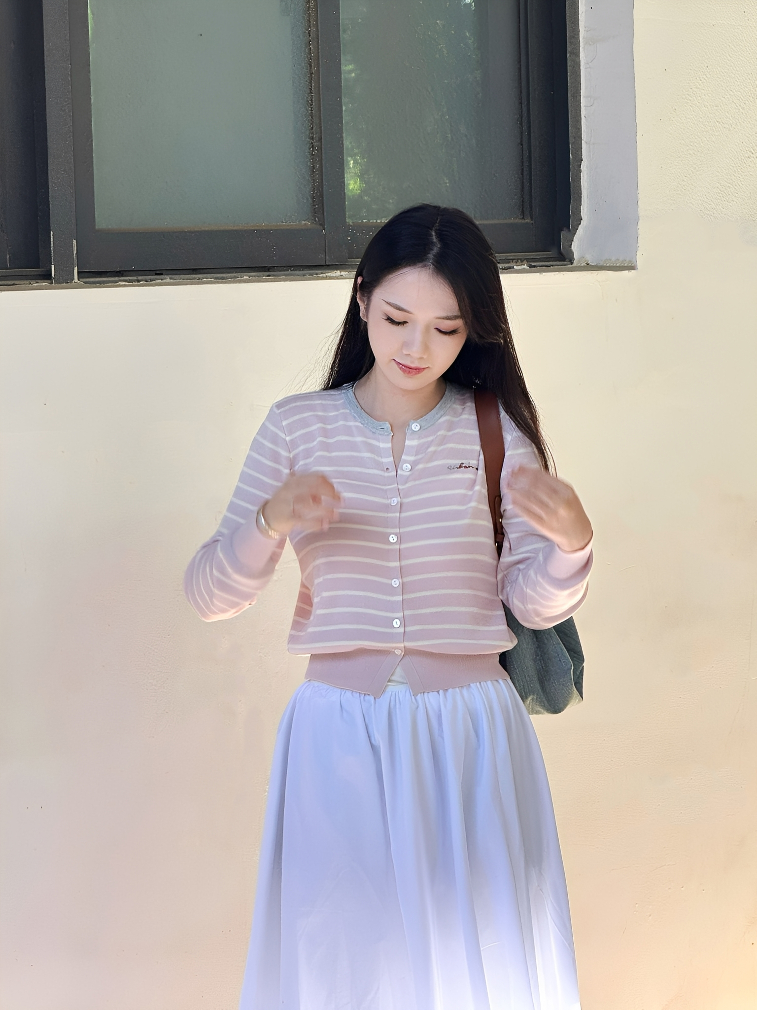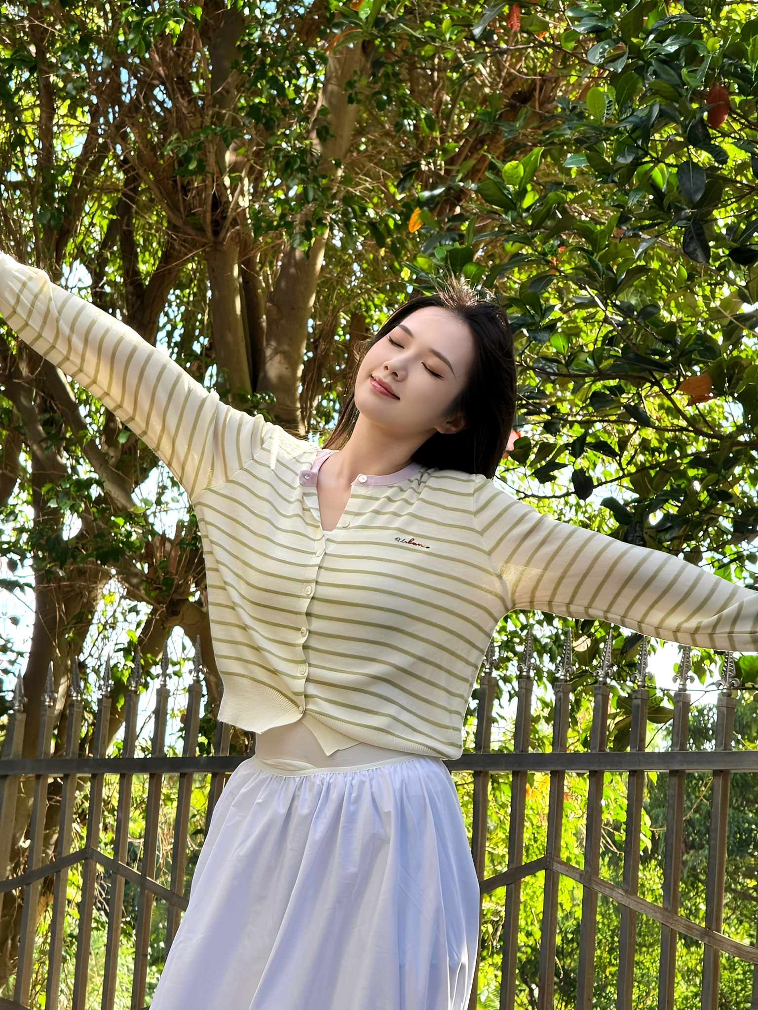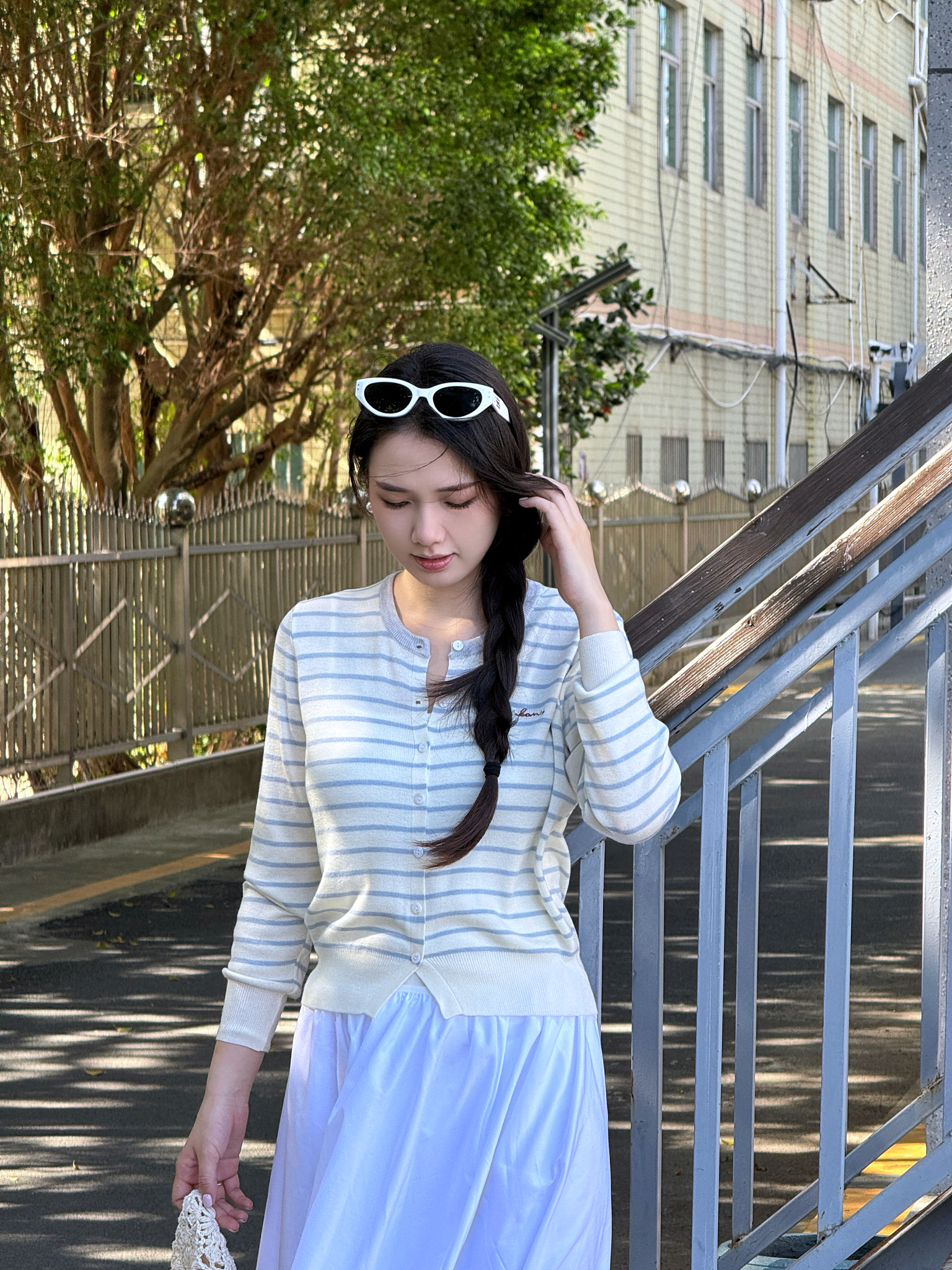 秋季新品【南油女装条纹拼色刺绣开衫】初秋穿搭 软薄轻柔 基础宽松款+条纹设计 简约高级 五色可选
