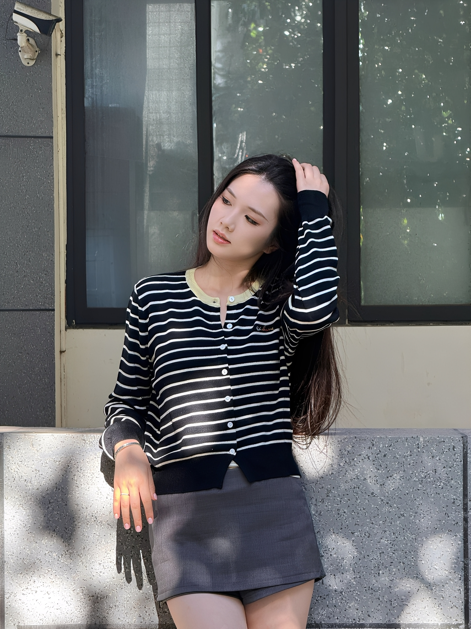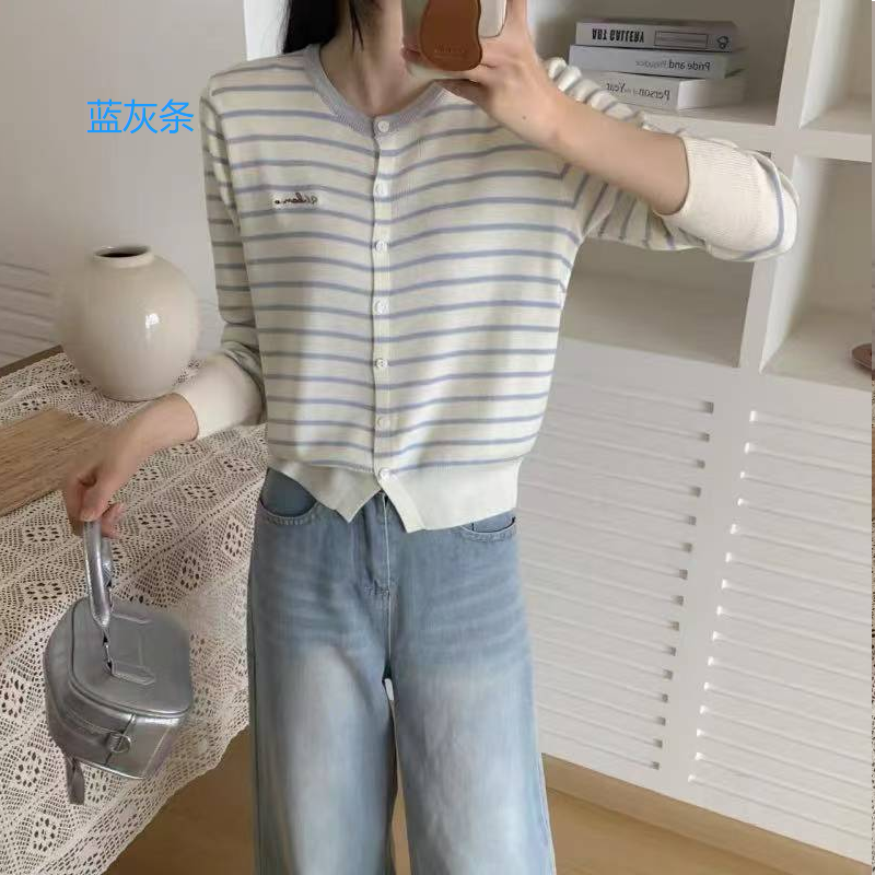 品名:南油女装条纹拼色刺绣开衫5025#