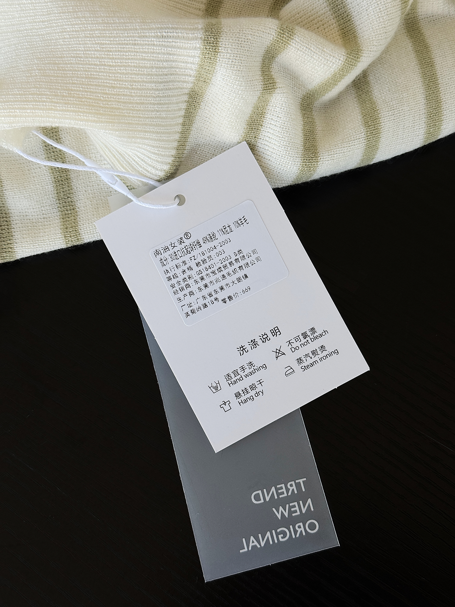 材质:10%羊毛、30%进口抗起球纤维、49%涤纶、11%尼龙
