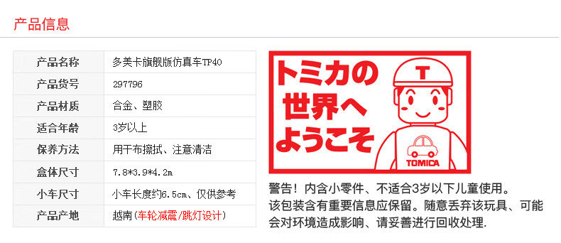 多美NO.297796旗舰仿真车TP40