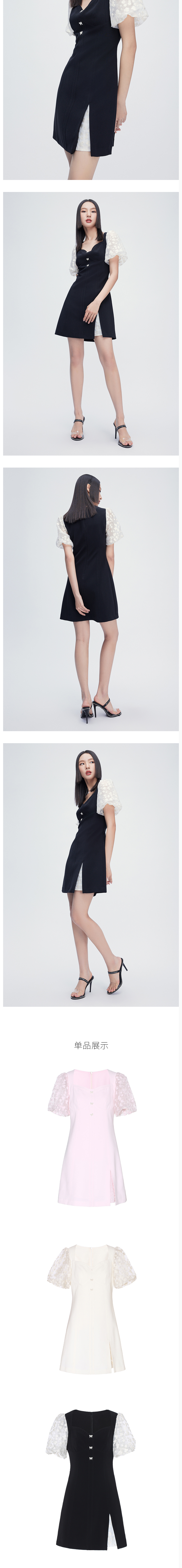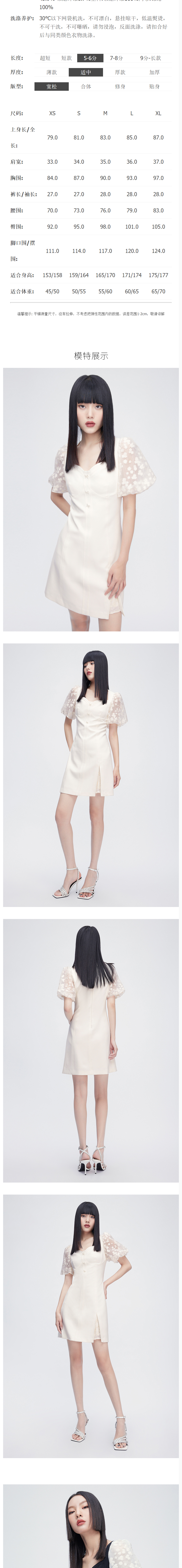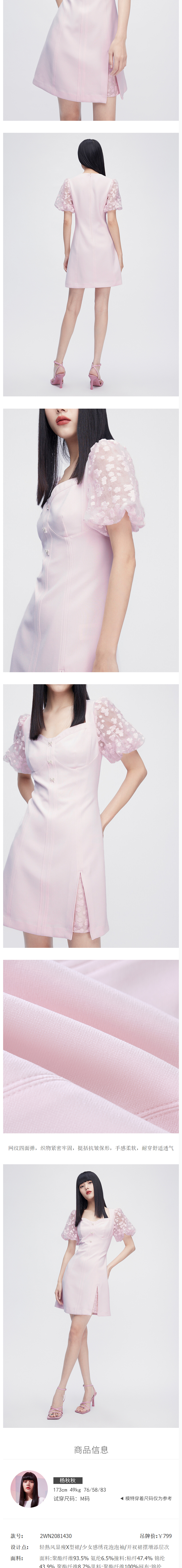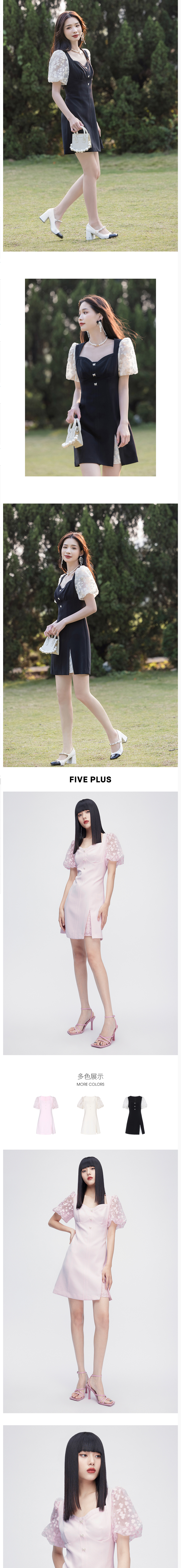 FIVE PLUS2022新款女夏装轻熟风泡泡袖连衣裙女绣花修身裙子2WN2081430