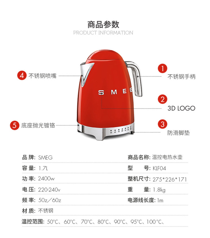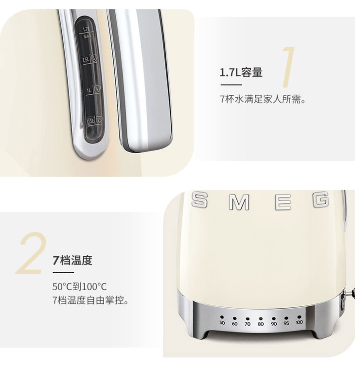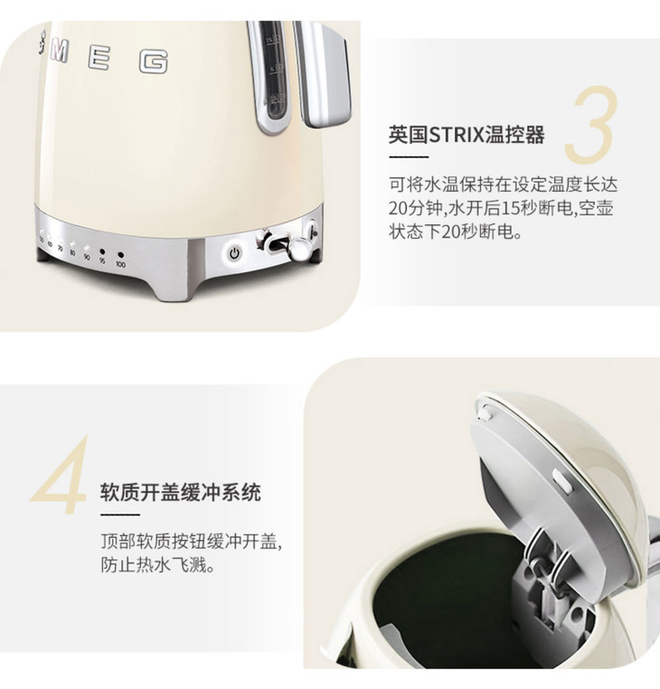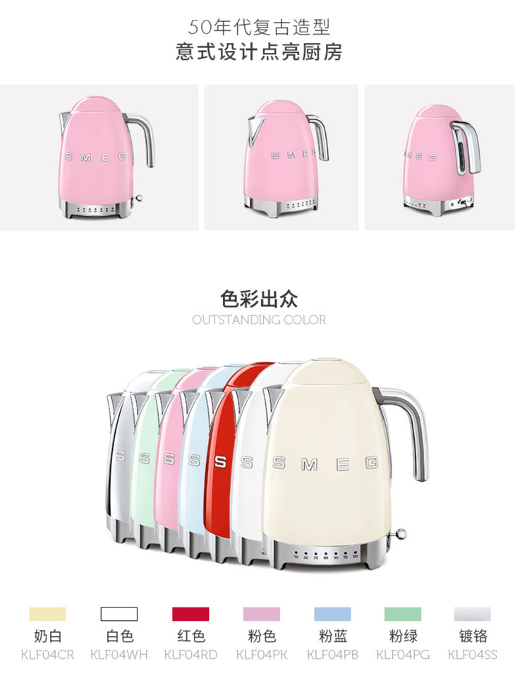 已下架【100代金券】SMEG斯麦格 新款KLF04温控电热水壶 自动断电家用烧水壶[福利品]