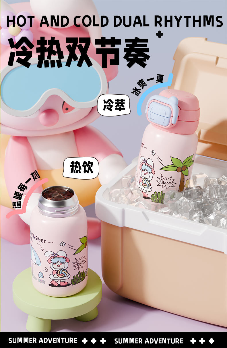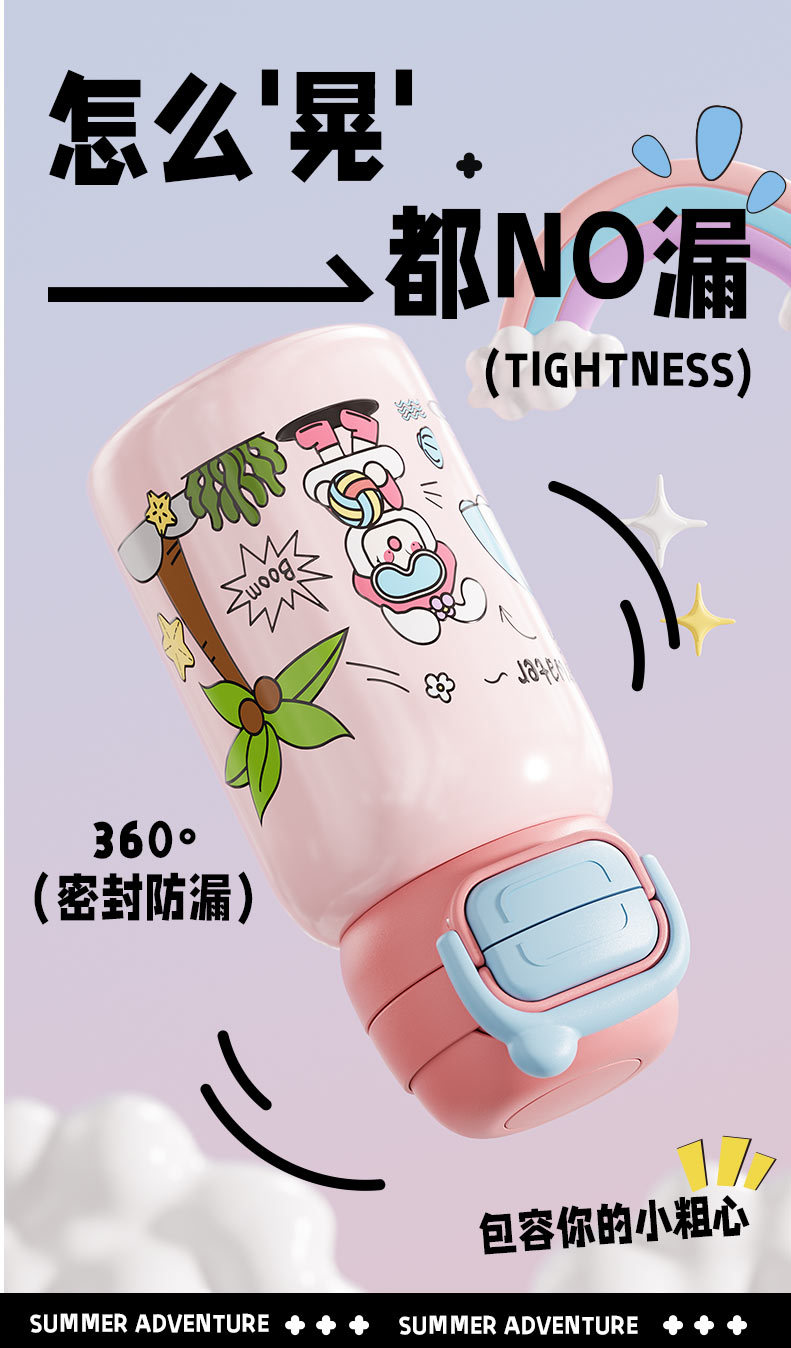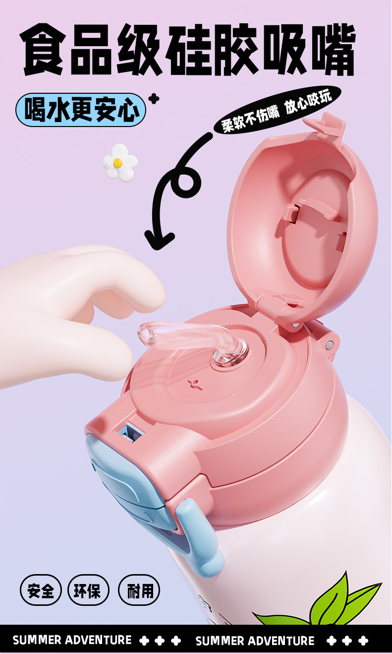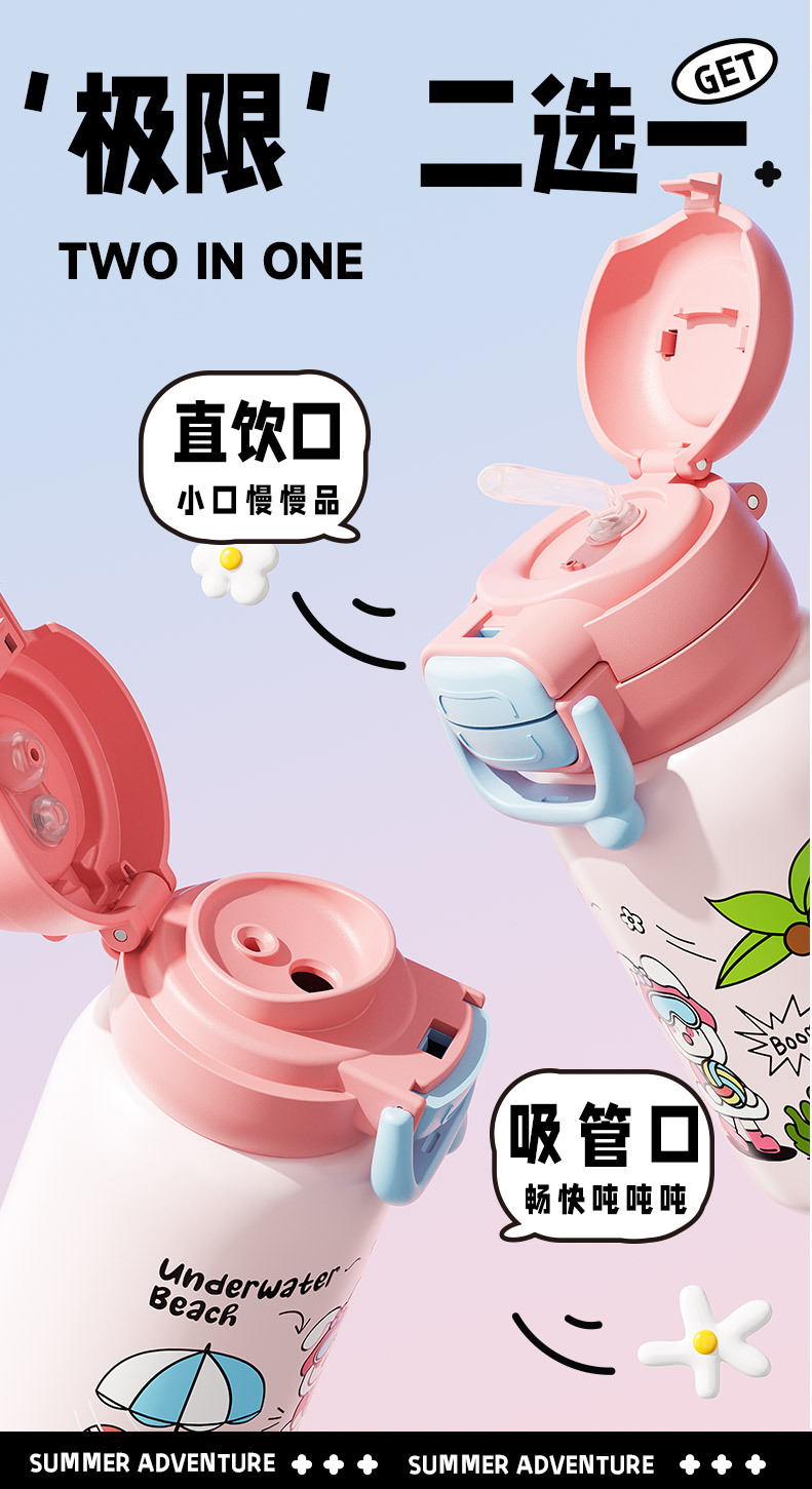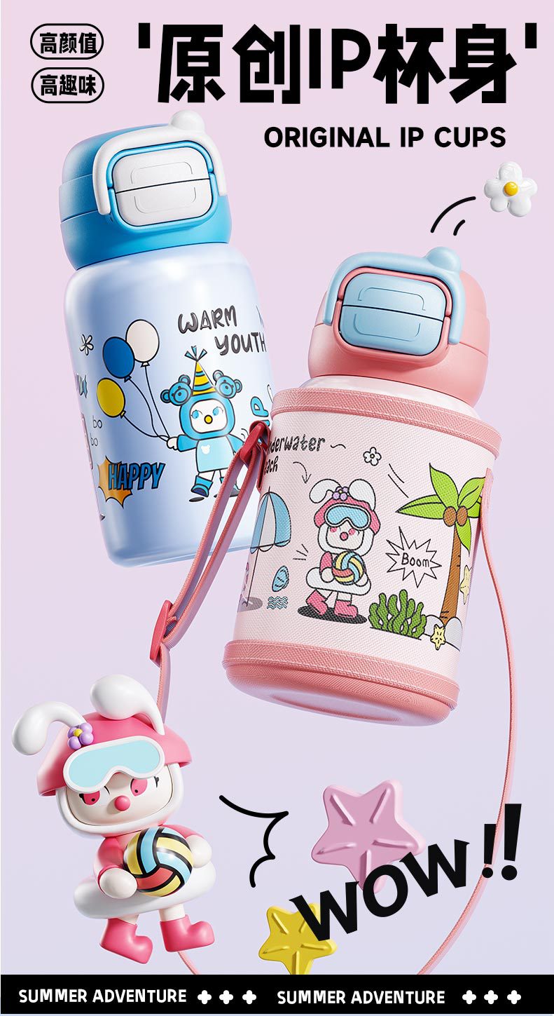 【儿童保温杯316】儿童水杯高颜值 便携大容量双饮杯 小学生吸管杯可拆卸杯套