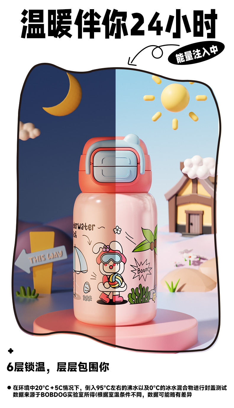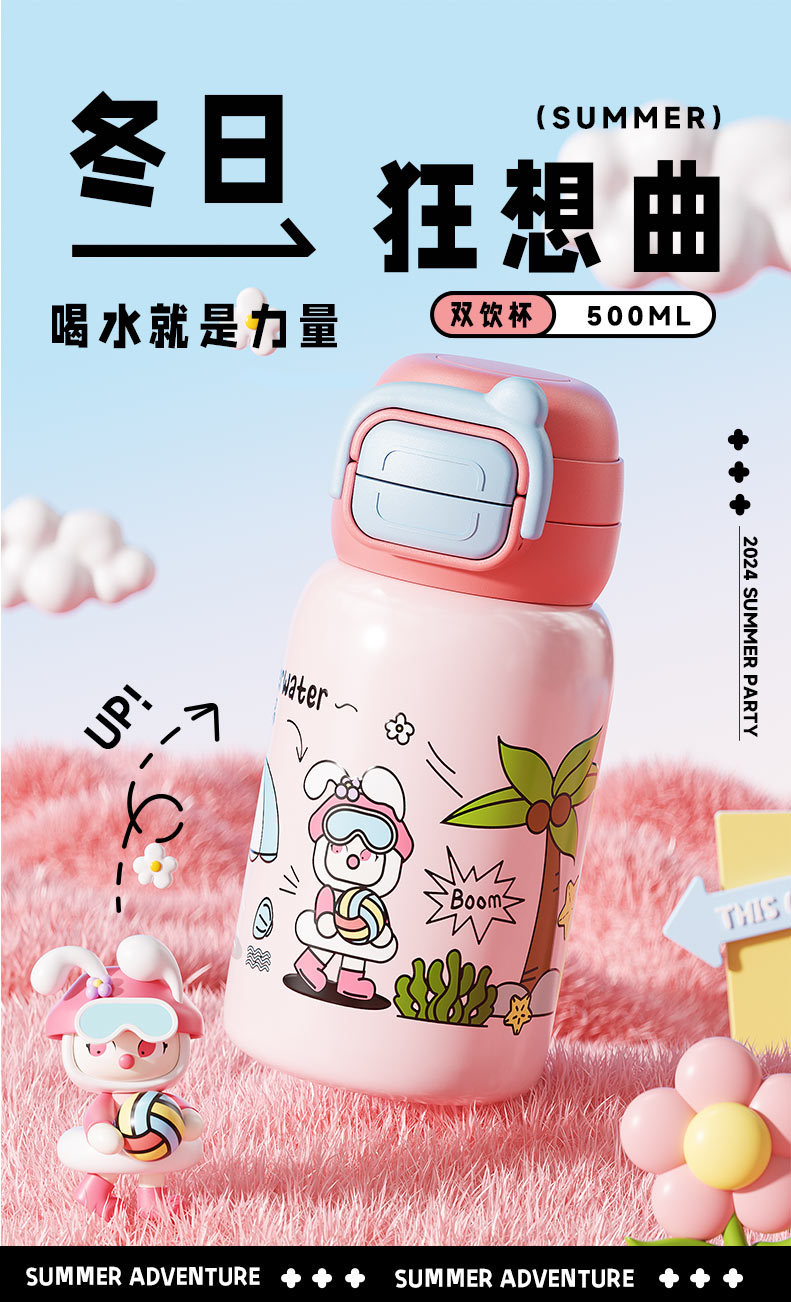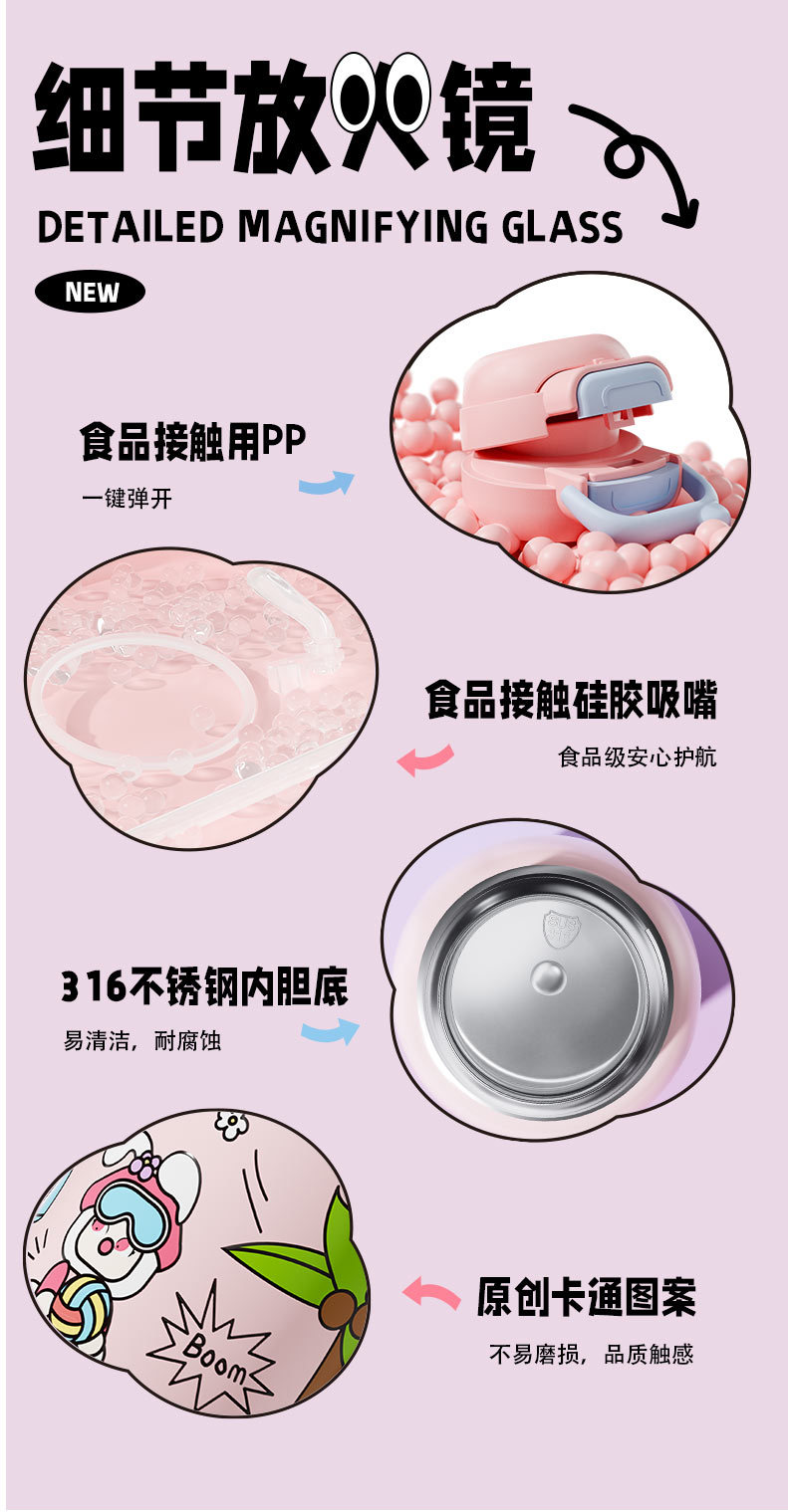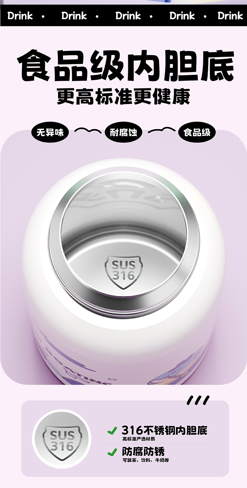 【儿童保温杯316】儿童水杯高颜值 便携大容量双饮杯 小学生吸管杯可拆卸杯套