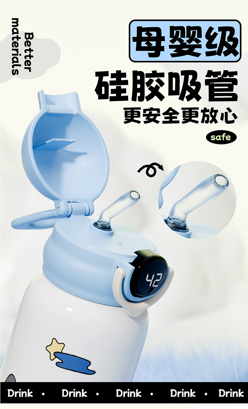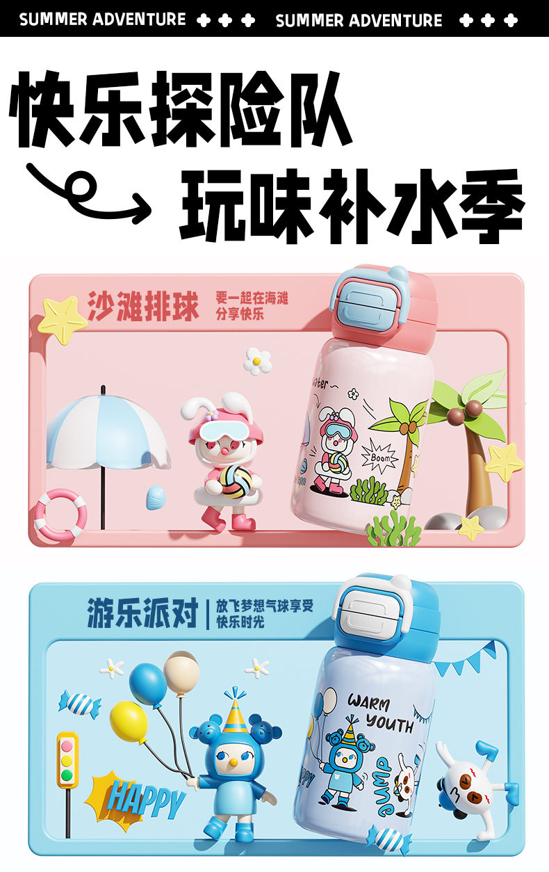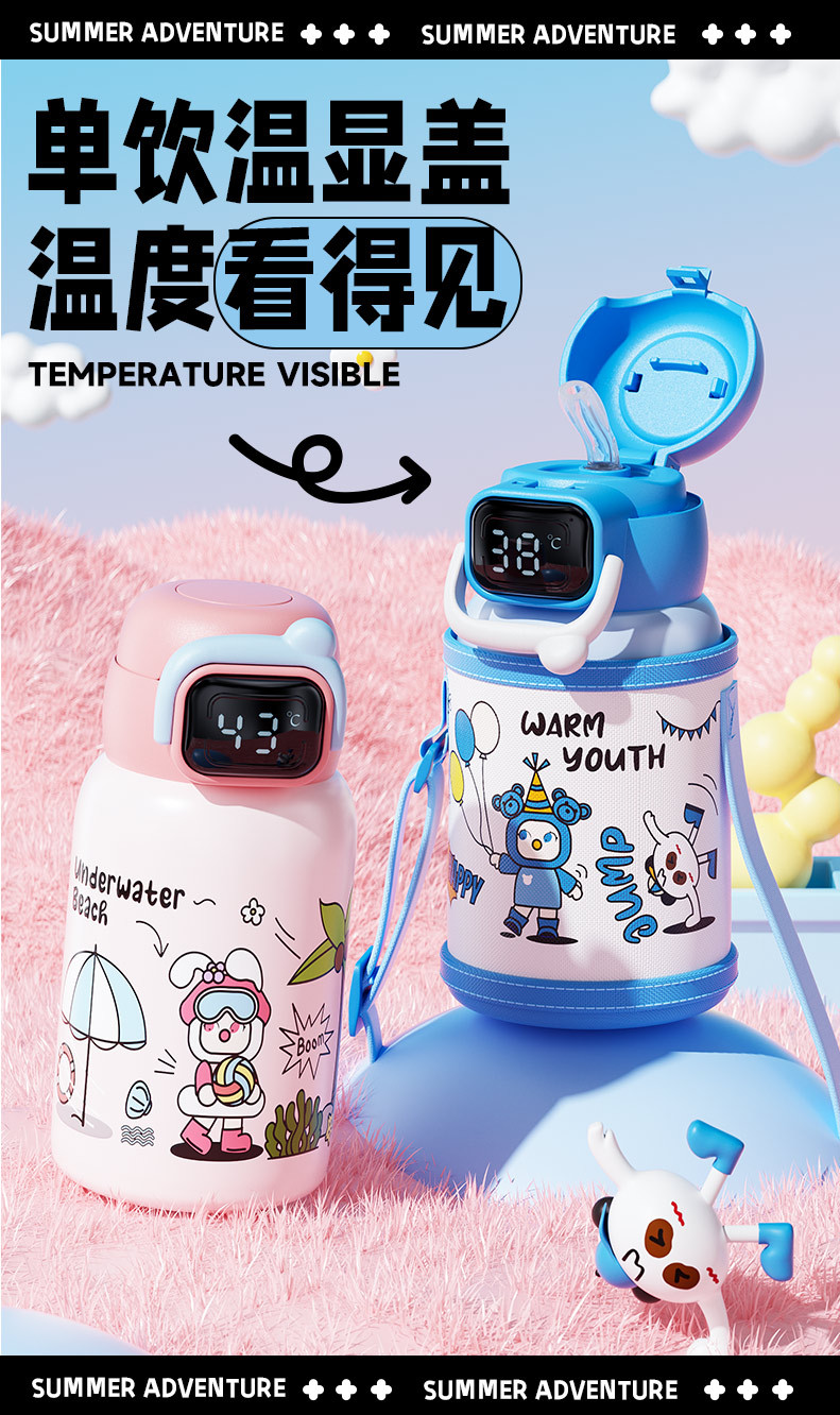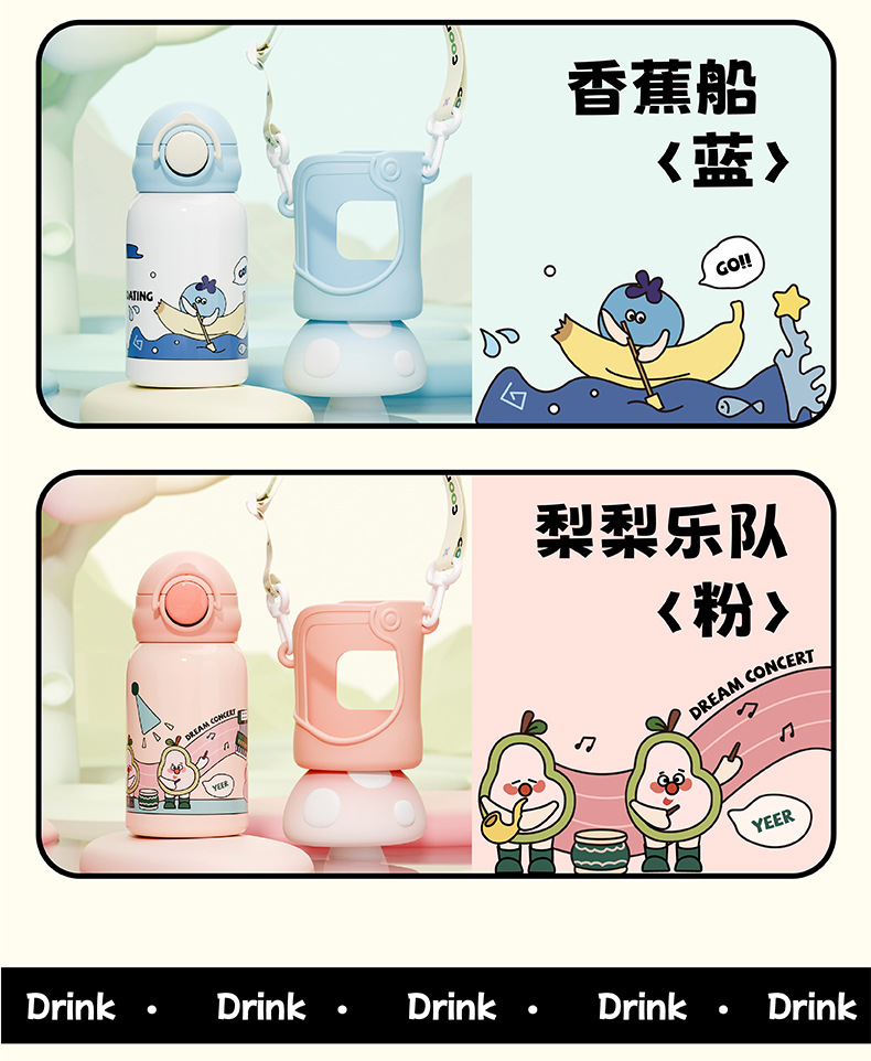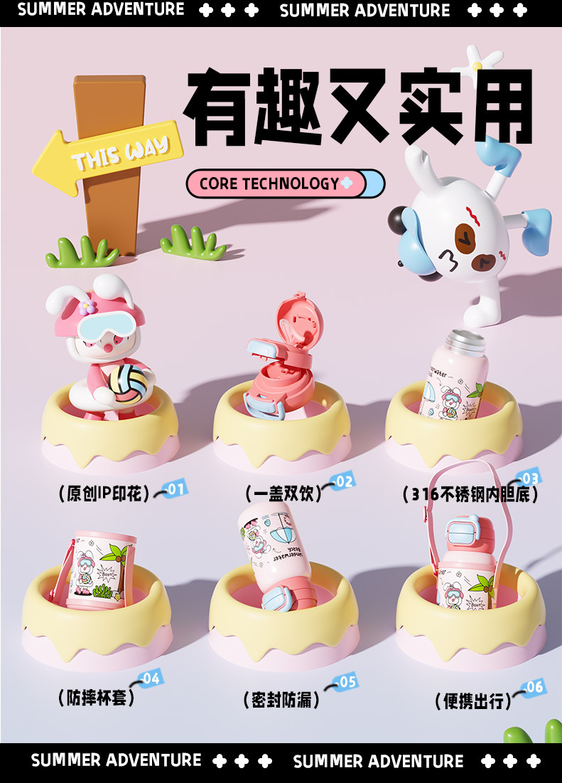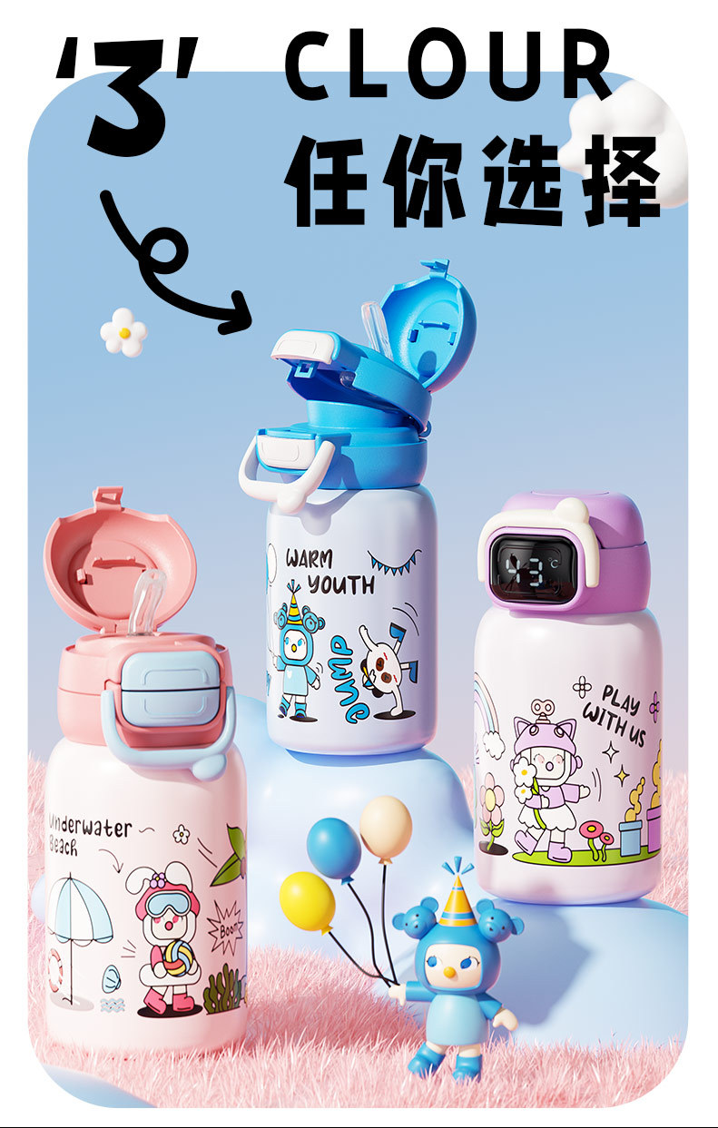 【儿童保温杯316】儿童水杯高颜值 便携大容量双饮杯 小学生吸管杯可拆卸杯套