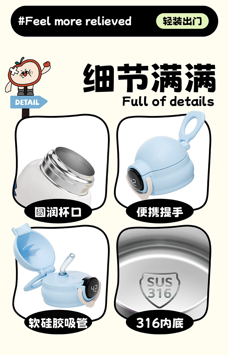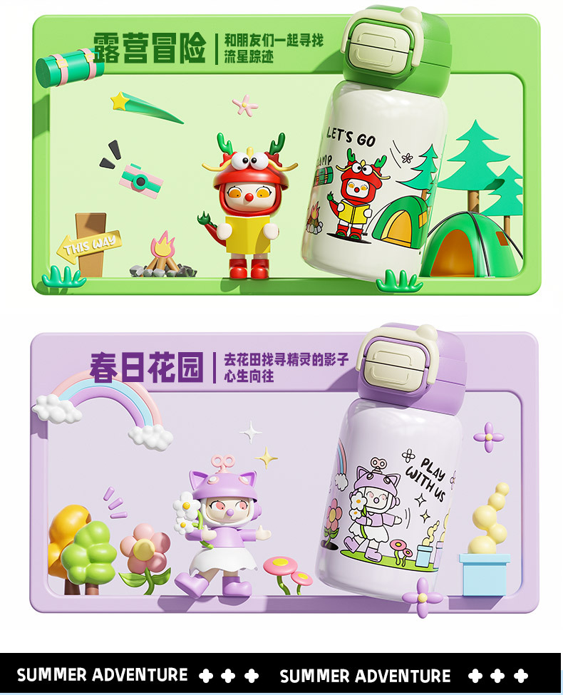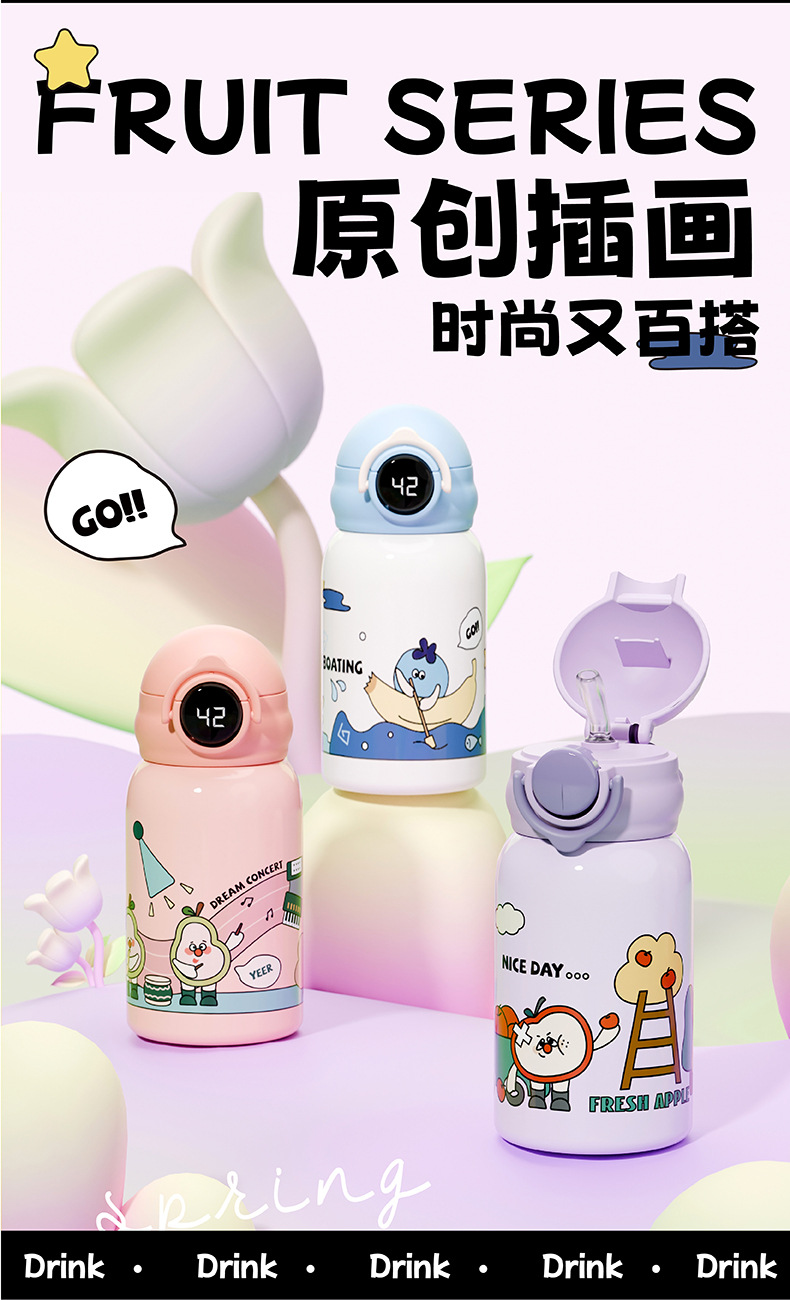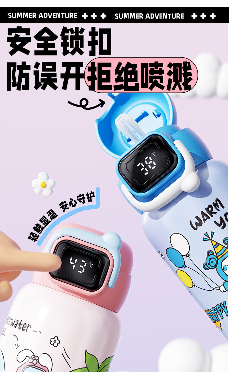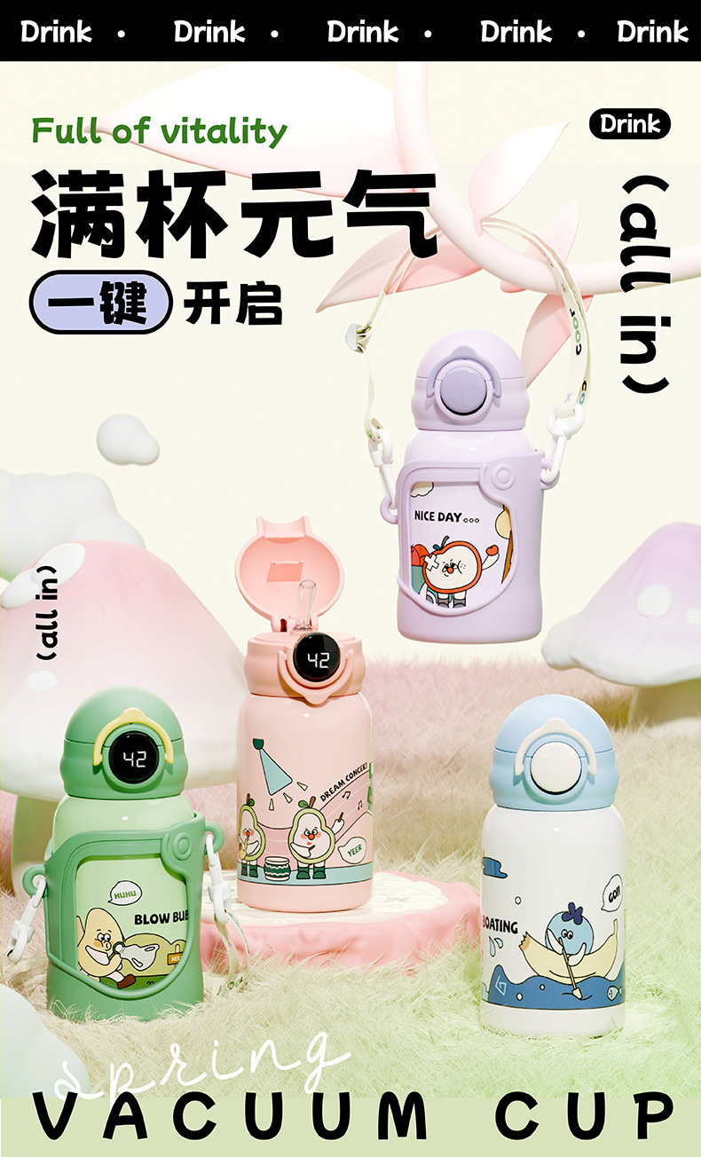 【儿童保温杯316】儿童水杯高颜值 便携大容量双饮杯 小学生吸管杯可拆卸杯套