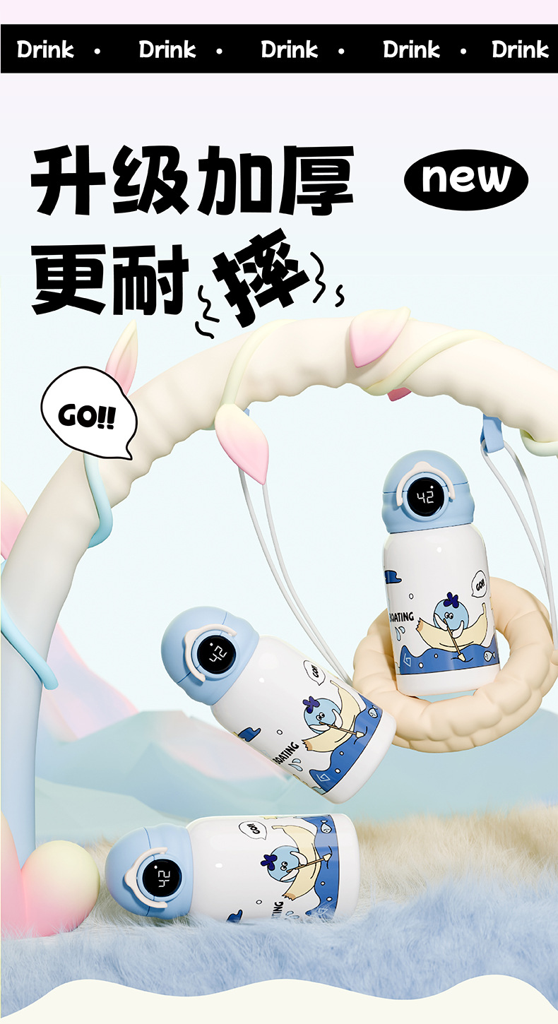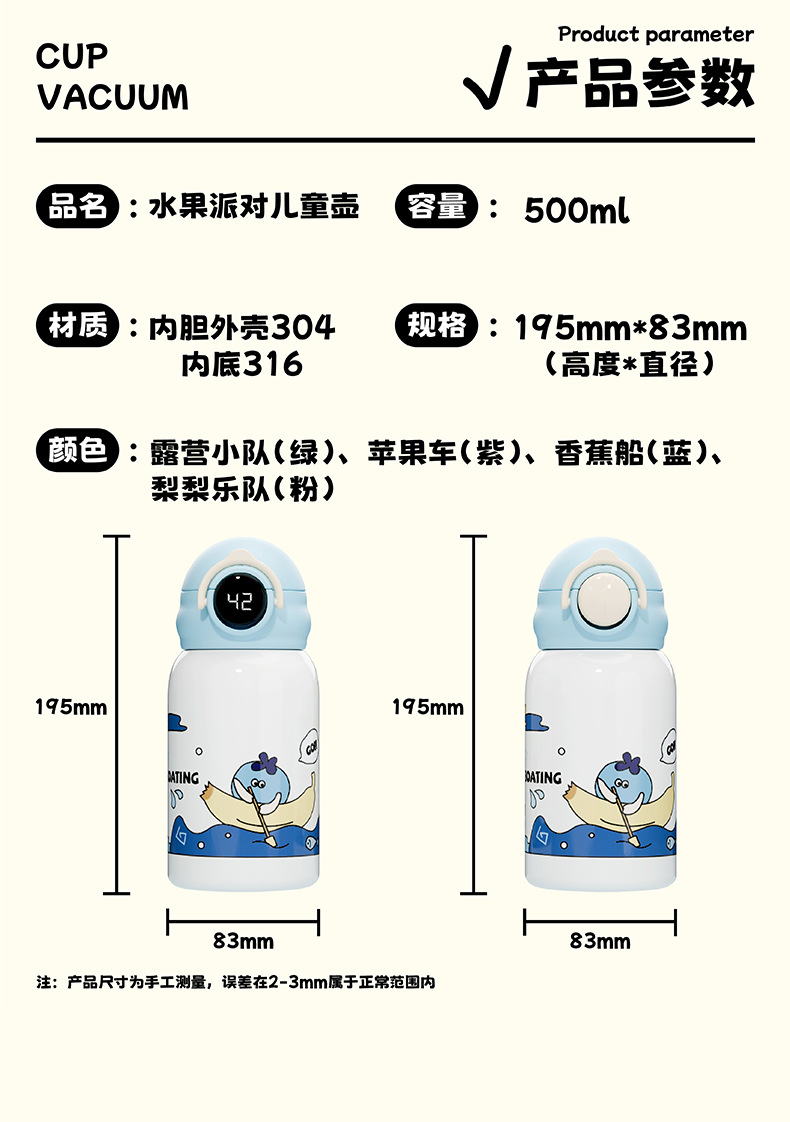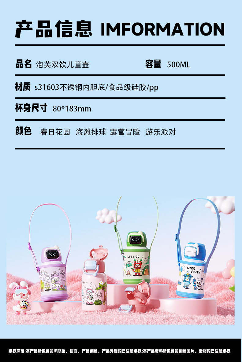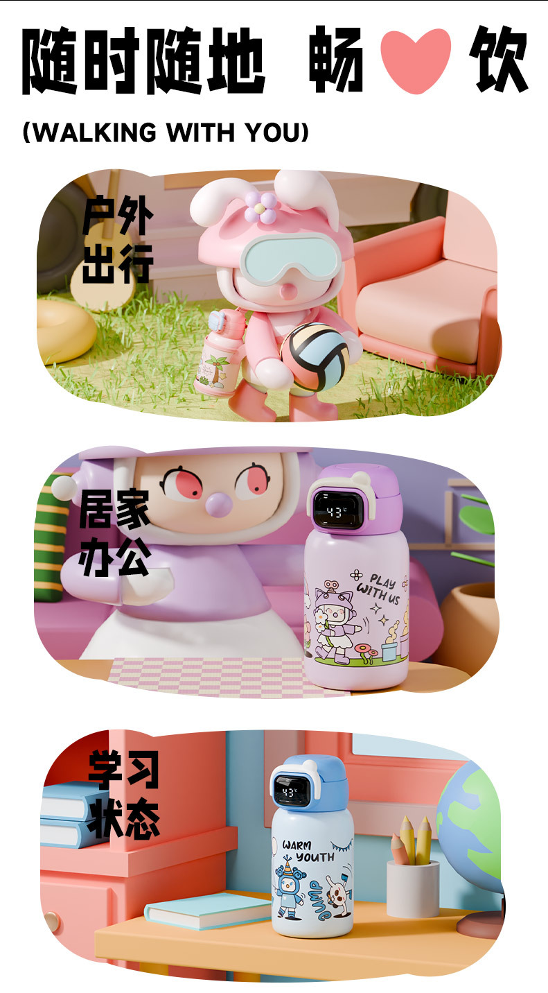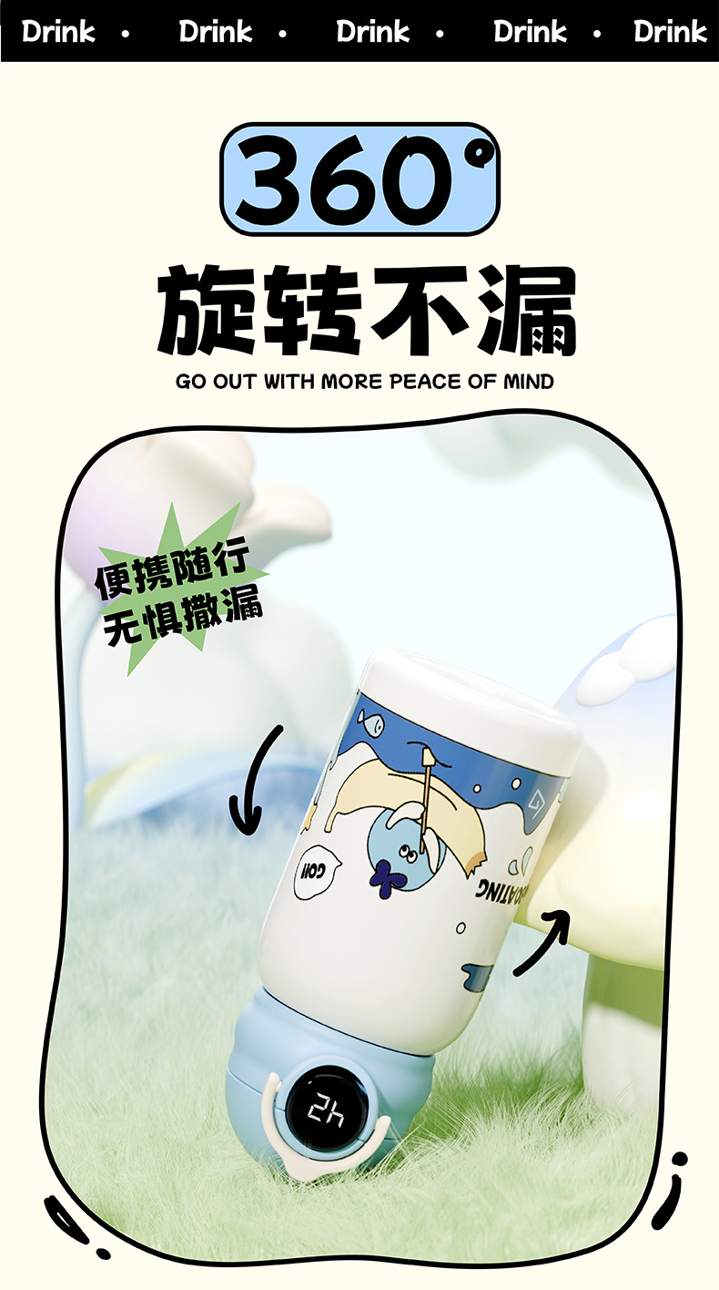 【儿童保温杯316】儿童水杯高颜值 便携大容量双饮杯 小学生吸管杯可拆卸杯套