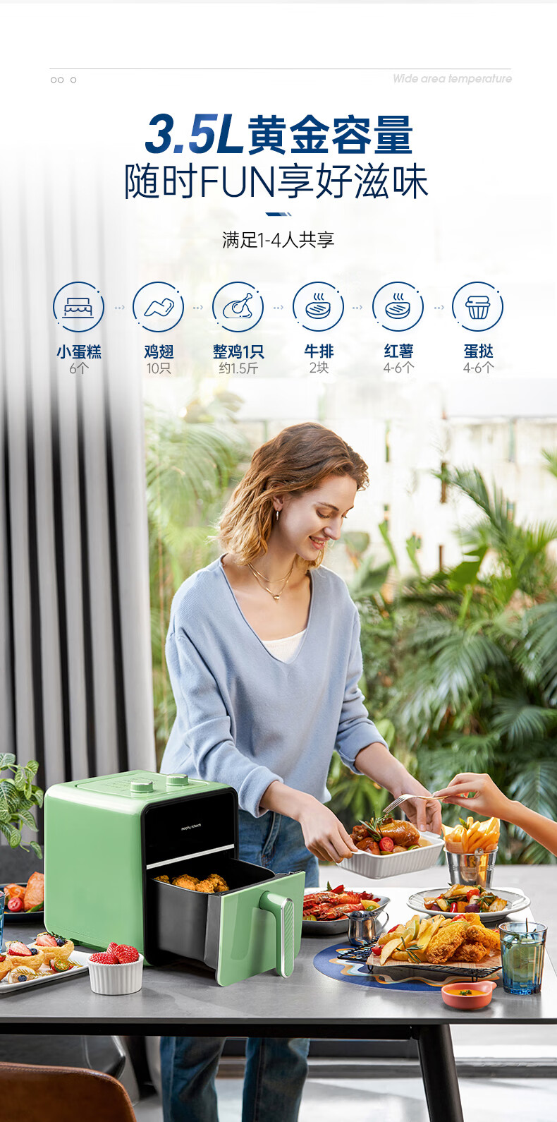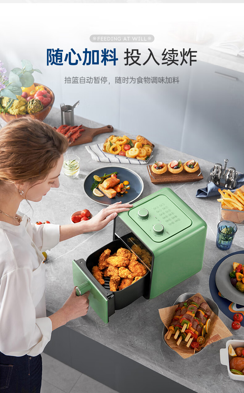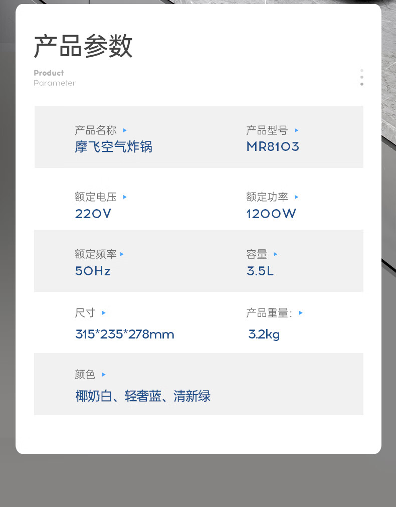 摩飞可视空气炸锅3.5L(蓝色)