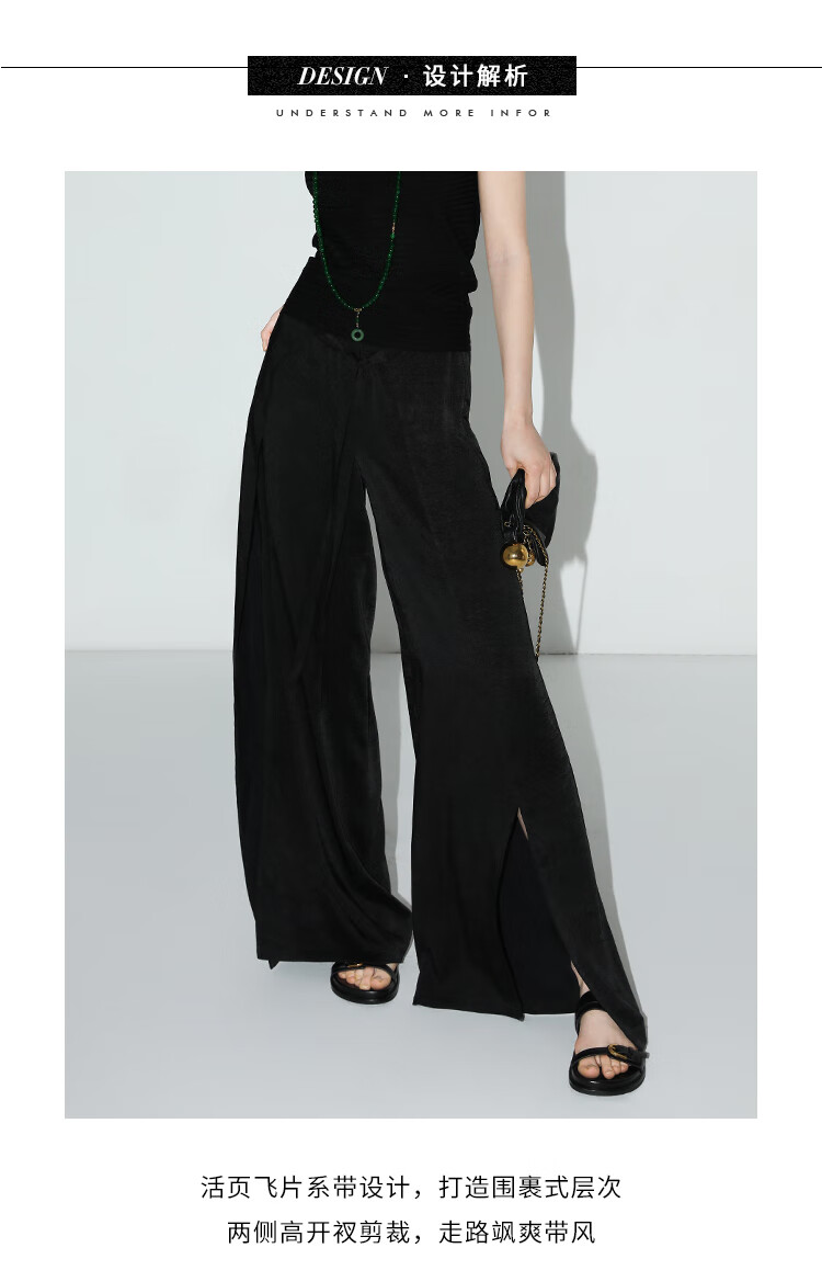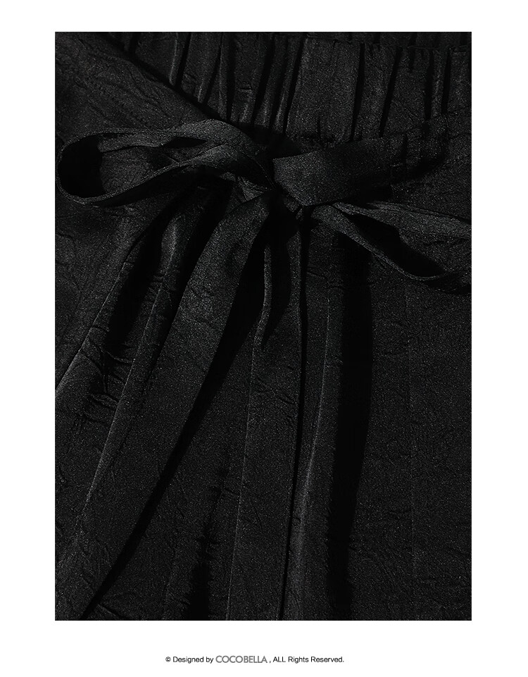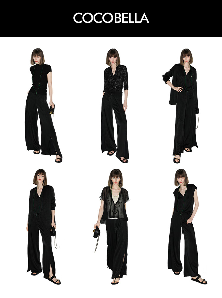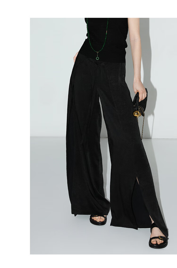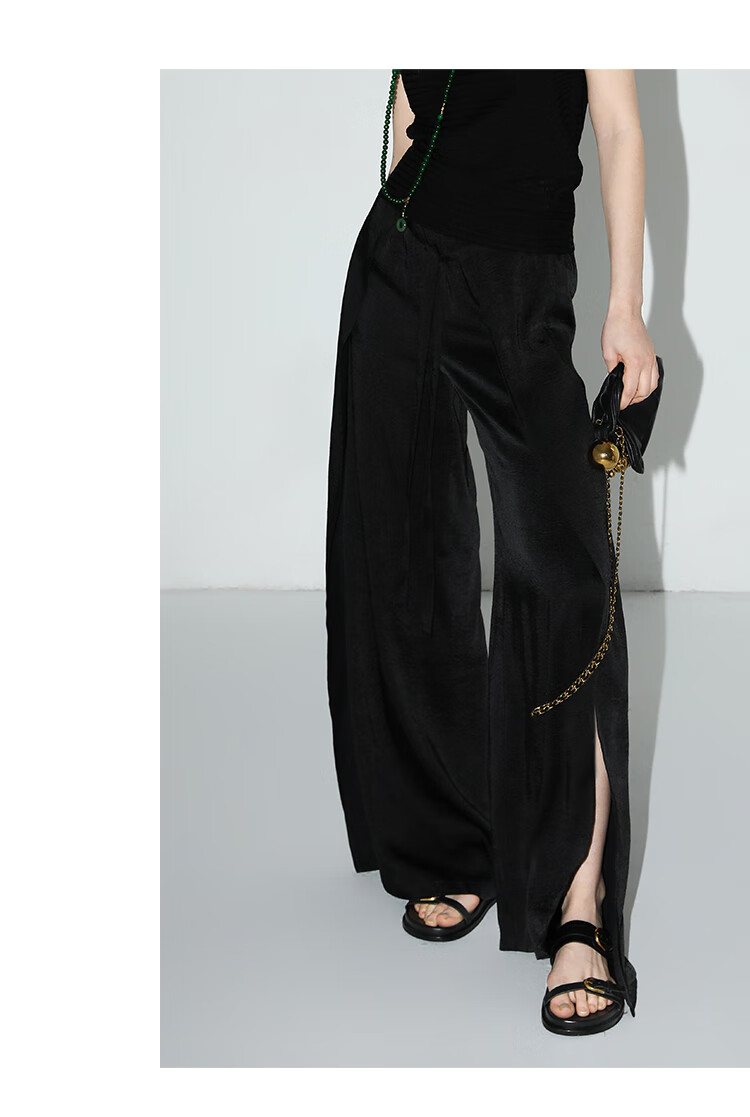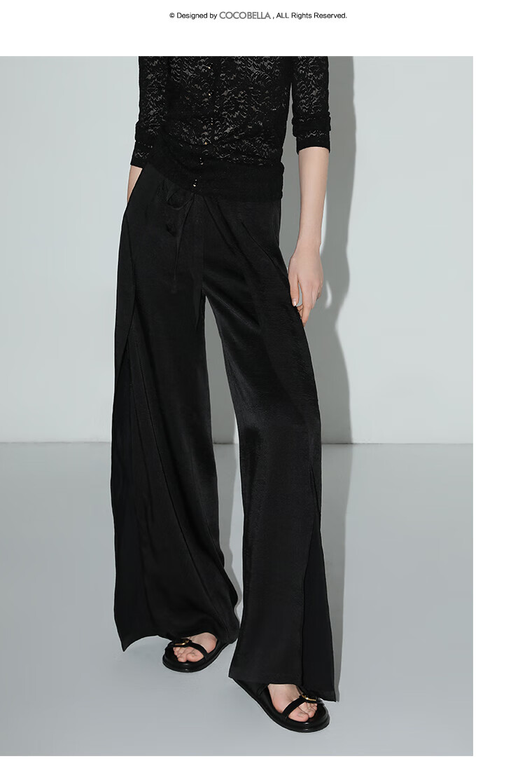 COCOBELLA静奢风肌理缎面飞片开叉阔腿裤垂坠直筒裤PA0013-2