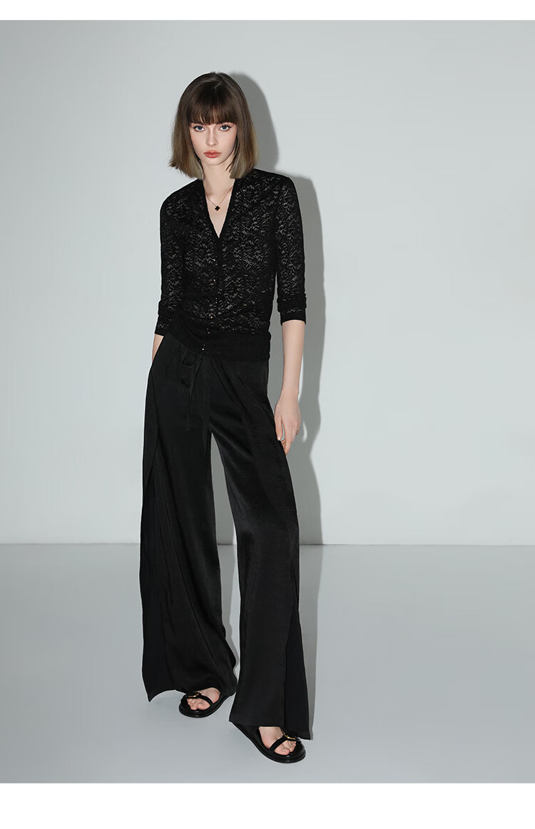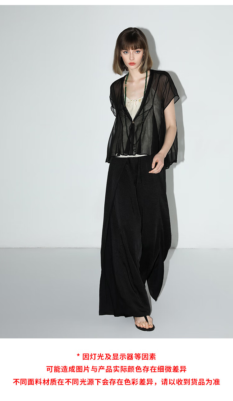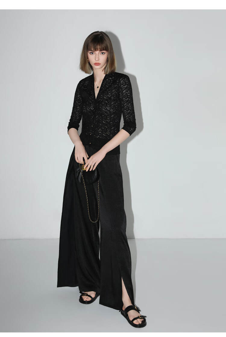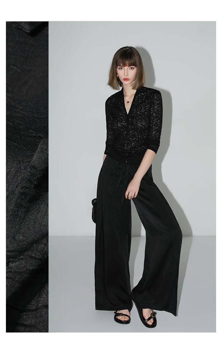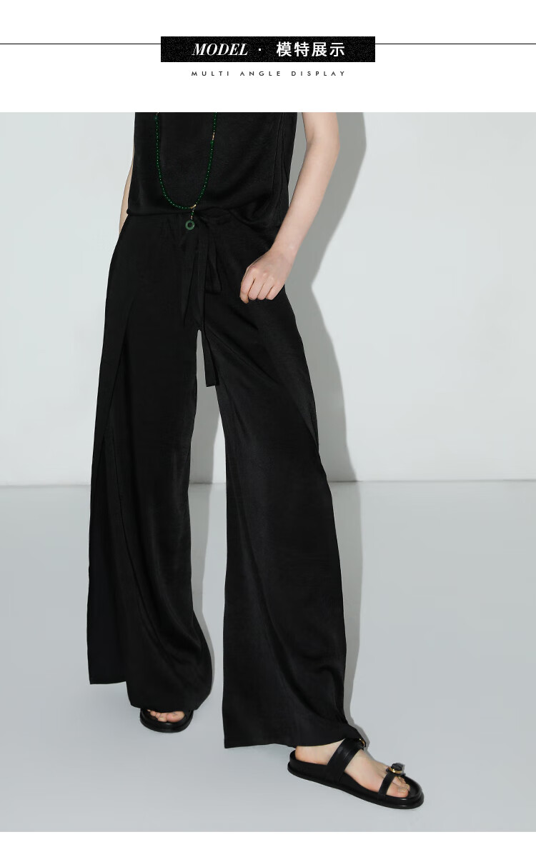 COCOBELLA静奢风肌理缎面飞片开叉阔腿裤垂坠直筒裤PA0013-2