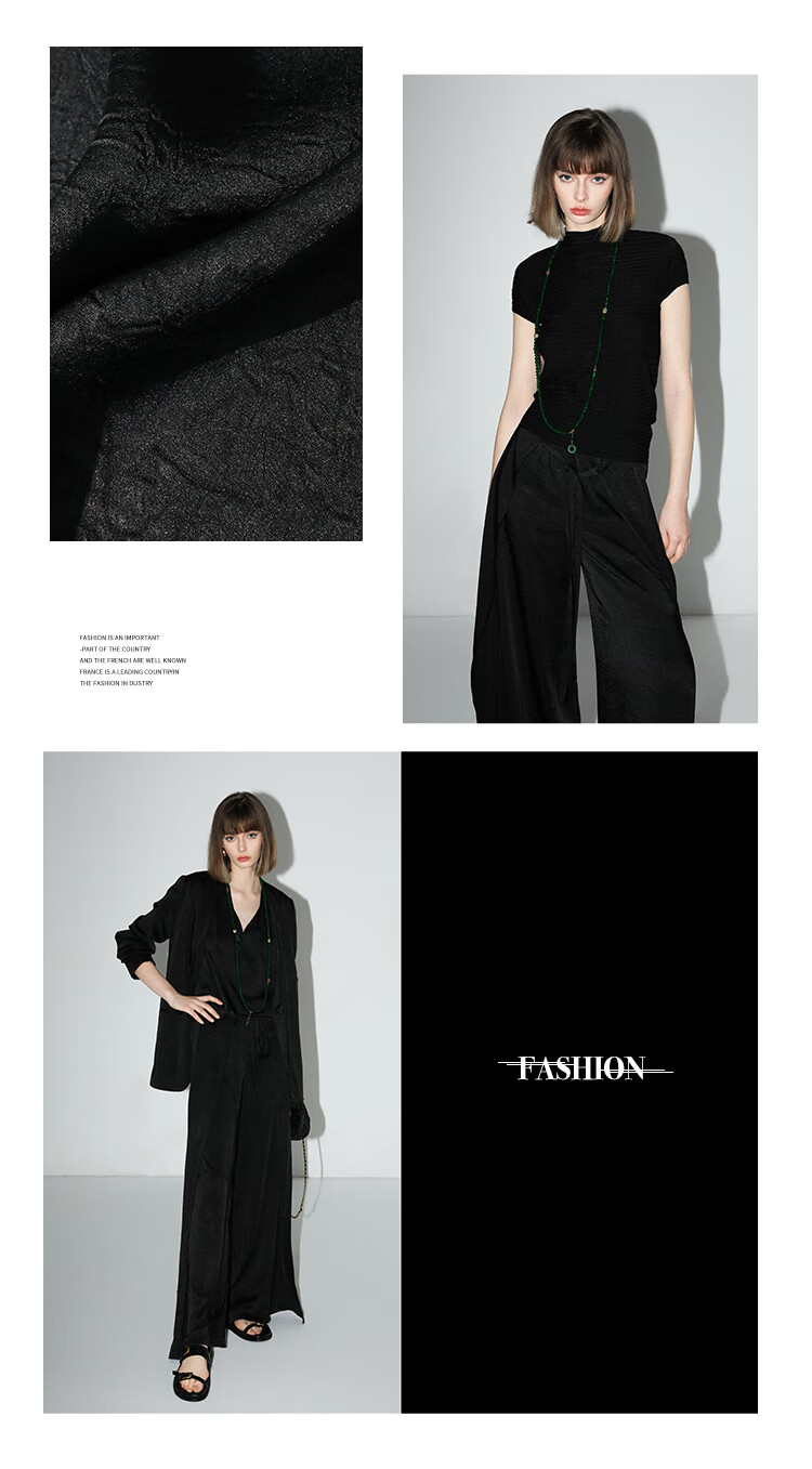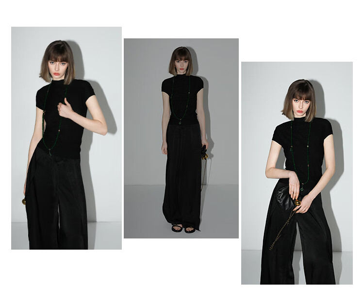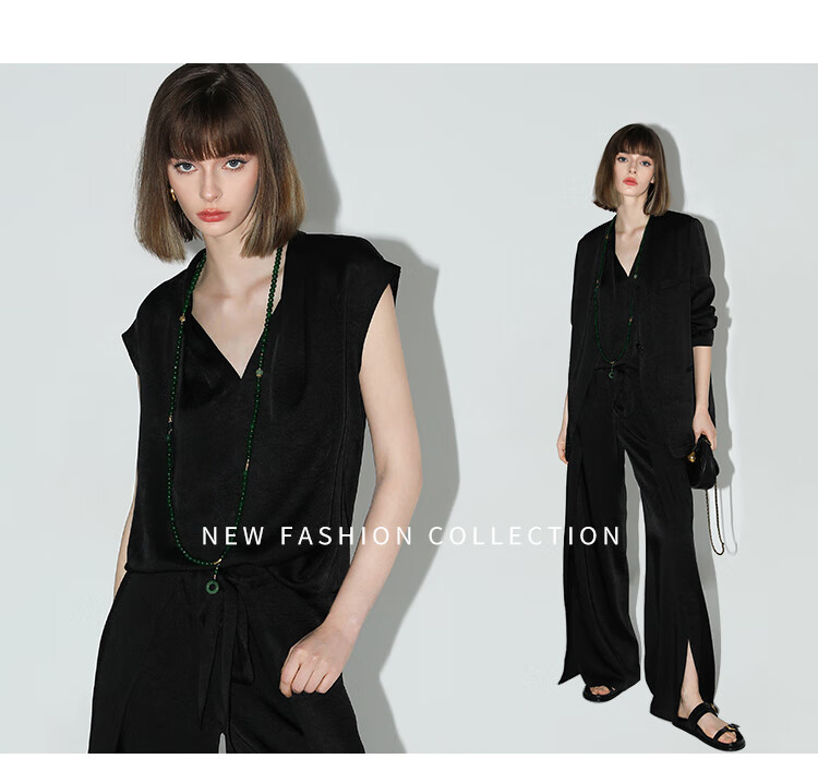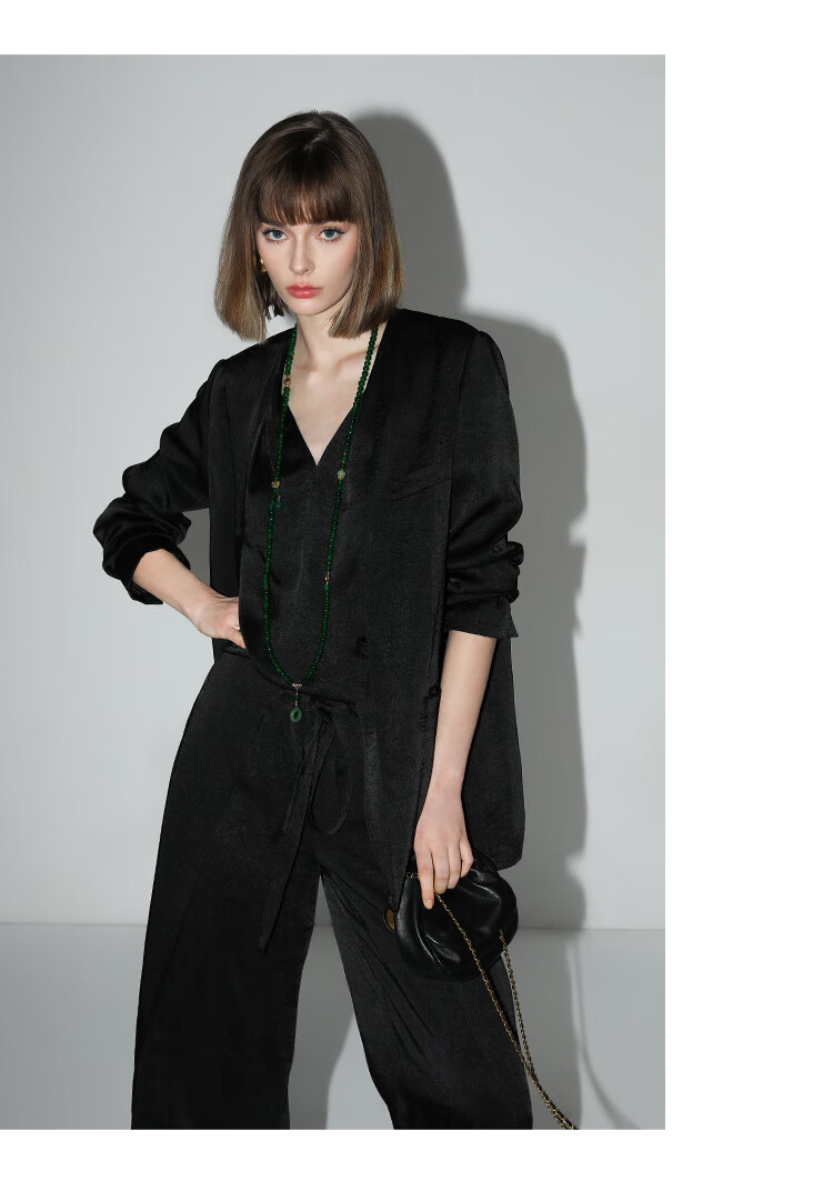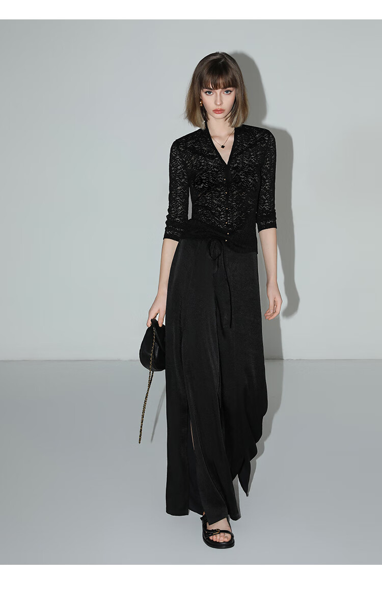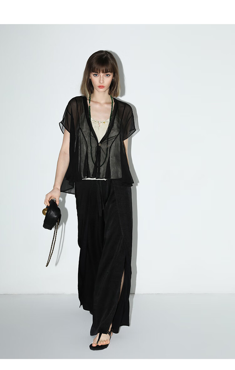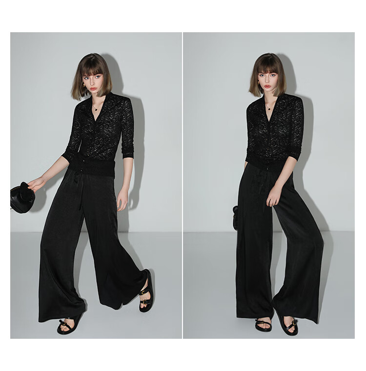 COCOBELLA静奢风肌理缎面飞片开叉阔腿裤垂坠直筒裤PA0013-2
