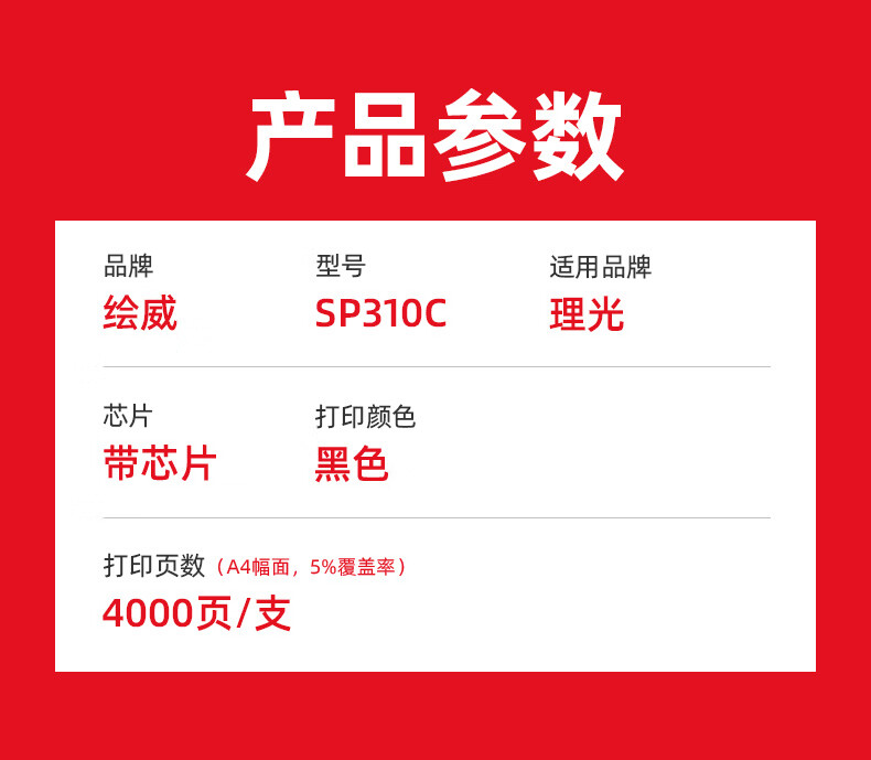 绘威SP310C硒鼓 适用理光Ricoh SP 310C/DN/SFN/DNW 312DNW/SFNW 320SN/DN/SFN 325DN/SNW/FNW打印机墨粉盒