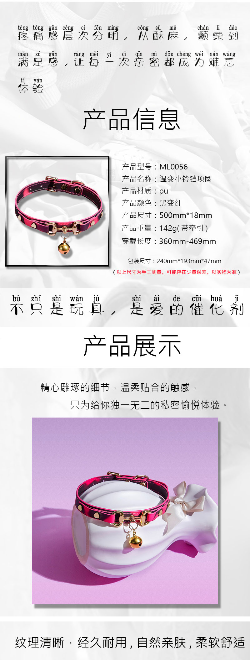 魅灵温变 金色铃铛黑变红狗狗牌项圈 项圈+牵引